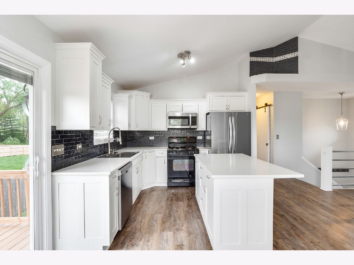 So many fresh upgrades and updates in this spacious home! BEAUTIFUL, OPEN FLOOR PLAN. Living Room with VAULTED CEILINGS creates a sense of airy volume and flows seamlessly into the inviting, remodeled Kitchen. SPARKLING QUARTZ countertops and abundant white AMISH CABINETRY graced with custom crown molding. The fridge is only 3 months old! Gorgeous, LUXURY FLOORING throughout. Glass doors lead to a NEW DECK. Integral blinds offer privacy, but you may never want to close off the view! Start your day with a full dose of tranquility on the deck by enjoying your coffee as the sun rises over the adjacent horse farm. Wait until you see it! Surprisingly private location. Lush greenery, a buffer of mature trees and sharp, clean landscaping. Notice that the neighborhood houses have no windows that face this home. The main bedroom has a DOUBLE CLOSET WITH ORGANIZER (the closet doors have been removed and are not included in the sale) and a private bath. The lower level is a whole other realm of possibilities! The original garage has been turned into a large IN-LAW SUITE complete with KITCHENETTE and loads of STORAGE. 2nd stove is included and there is space for a refrigerator. Private entrance makes this flex space perfect for home school or home office! Need a GARAGE? Seller says the price to convert the inlaw suite back to a two car garage is as low as $5,000. THE LAUNDRY ROOM IS HUGE! After all, don't we spend more time in this room than we think? This is also a great space for hobbies or projects. The lower level is finished off with a 4th bedroom (no closet), 3rd bathroom and storage. Other amenities include *Barn Door in hallway for added style and whimsey, *BRAND NEW SOFFITS AND LEAF GUARDS, *Newer Furnace, *Maintenance Free Vinyl Siding. Shed and Water Softener (it has not been used by this owner) AS-IS.