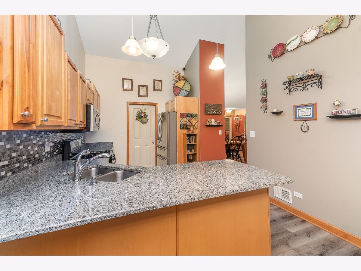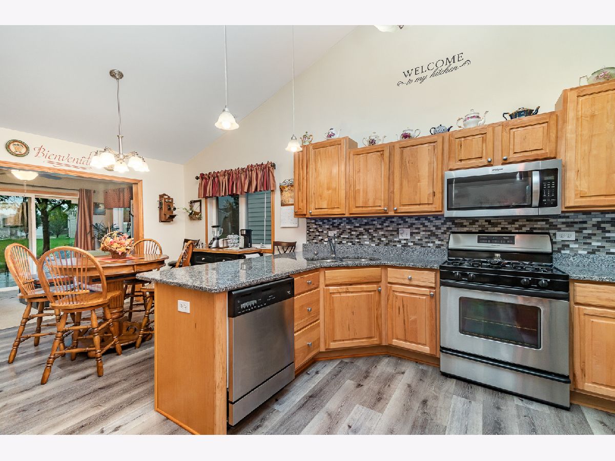 Barrington Ridge Beauty offering Almost 2200 Sq' Split Bdrm on 1 level with 2 car Attached Finished Garage & All Seasons Room Built in 2003! Front covered entry leads to the foyer area open to the dining / great room with cathedral ceilings, great kitchen / breakfast area with cathedral ceilings - new laminate flooring - granite counters - stainless steel appliances and doors to the all seasons room with lots of windows and sliders to patio, laundry room offers a laundry tub cabinet + additional cabinets for storage and door to the finished garage with pull down stairs and epoxy flooring, spacious main bedroom with large walk-in closet and private full bath with double sinks featuring quartz counters, 2 additional bedrooms and full bath with quartz counters, central air, new roof and low HOA fees to cover your lawn and snow removal!