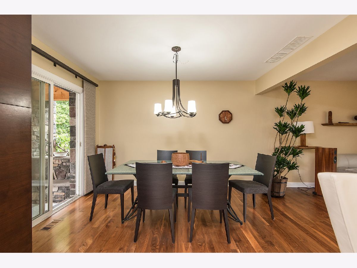 You will love this delightful split-level. This home features three bedrooms, two bathrooms, and a modern kitchen with plenty of natural lighting from the skylight. Walnut hardwood floors throughout. Dinning room patio door leads to a beautifully landscaped backyard with a variety of trees (Japanese maples, junipers, pines, metasequoia, golden rush), shrubs, and flowers. Enjoying the patio with fireplace feels and sounds like you are in the forest or on vacation year around. Sprinkler system installed in 2018, water heater 2019, garage heater 2019, epoxy floor coating and brand new unique garage door. All newer window treatments are Hunter Douglas and Lafayette. James Hardie siding 2009, roof/gutters/ soffits 2008. The list goes on... All of this situated in a convenient, friendly neighborhood with a great school district and only minutes away from the express way. A MUST SEE!