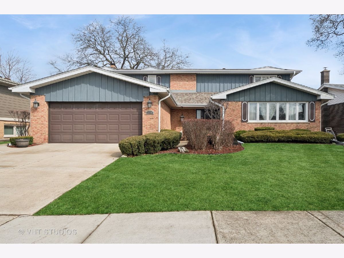Elegant 2 story Morton Grove home featuring over 2900 square feet. Highlights include a large entry with curved staircase, sunken living room, formal dining room, eat-in kitchen and first floor family room with fireplace. Other conveniences include an attached 2 car garage and main level laundry room. There are 4 spacious bedrooms and 2 full baths on the second floor with each bedroom having oak floors (some under carpet) and abundant closet space. The basement includes a carpeted recreation room and craft room plus a separate utility / storage room. The long term owners have taken exceptional care of the home. Move-in and enjoy a mid-century vibe or update as wanted. New roof, gutters and downspouts in 2023. Furnace and A/C new in 2021. Long term owners prefers an as/is sale.