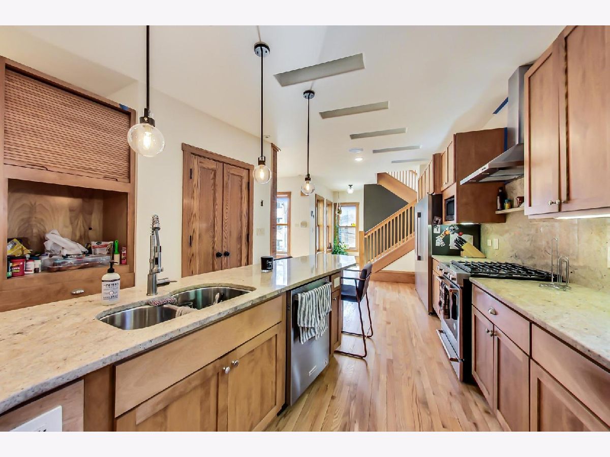 Come and see for yourself! 3 large condo quality units, where tenants pay their own heat, gas and electric. Be blown away with the large owners unit, 2nd and 3rd floors combined to bring you over 4000 sq. ft. of luxury living. The owners suite features 3 bedrooms, plus a library that has a closet and could be a 4th bedroom. The unit has 3.5 bathrooms, 2 of which are ensuites, 2 wood burning fireplaces, gleaming hardwood floors throughout (they were just refinished in 2022), the unit is wired with built in surround sound in every room, has heated floors in almost every room and is wired with ethernet network. The updates to the owners suite, do not stop there! It boasts beautiful woodwork, an atrium with 16 ft ceilings, skylights, soaking tub and an oversized shower with multiple shower heads. The kitchen has an oversized double door fridge, granite countertops and all of the major appliances were just replaced in 2021/2022. The owners suite has a staircase leading to the roof, that is just waiting for someone to come along and put in the finishing touches. The rest of the building is just as nice! When you walk in the front door of the building, you will notice beautiful stained glass that was salvaged from a Frank Lloyd Wright home. Head down the stairs to the right, and you will enter the huge garden unit. Over 1800 sq. ft. of living in this huge 1-bedroom unit. The unit features beautiful hardwood floors that were just refinished, tons of closets, a wet bar in the living room, wood burning fireplace, radiant heated floors, stainless steel appliances and condo quality finishes. The 1st floor unit features 3 bedrooms and 2 full bathrooms. It features hardwood floors, wood burning fireplace, lots of closets, beautiful built-ins and new tile flooring in the kitchen and bathrooms. A little information about the building. The building has an attached 3 car garage with shelving and a roof top deck. The garage deck was just redone in 2022 with Tigerwood (30+ year lifespan) decking, newly built raised garden beds, a natural gas line, new exterior spigots/hose and an all weather speaker system. The building has a Blink security system around the exterior and in the common areas. There is a front intercom system and buzzer to each unit at the front gate. There is a dedicated utility room at the garden level that is a true work of art. Each unit has their own boiler, air conditioning and electrical panel. The roof was resealed with silver coating in 2021. The tuckpointing and full roof replacement were done in last 5 to 8 years. This building has been meticulously maintained and is just awaiting a new owner to come along and live in the luxury owners suite and and have the other 2 unit pay a bulk of the mortgage. This could be a great place for the savvy owner to run an air bnb as the location is about to blocks to the Lakefront. And is in between Loyola and Northwestern Universities. Just a few blocks to the train station where you can catch the Red or Purple line trains.