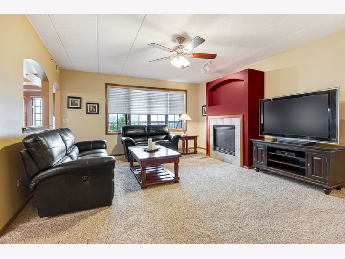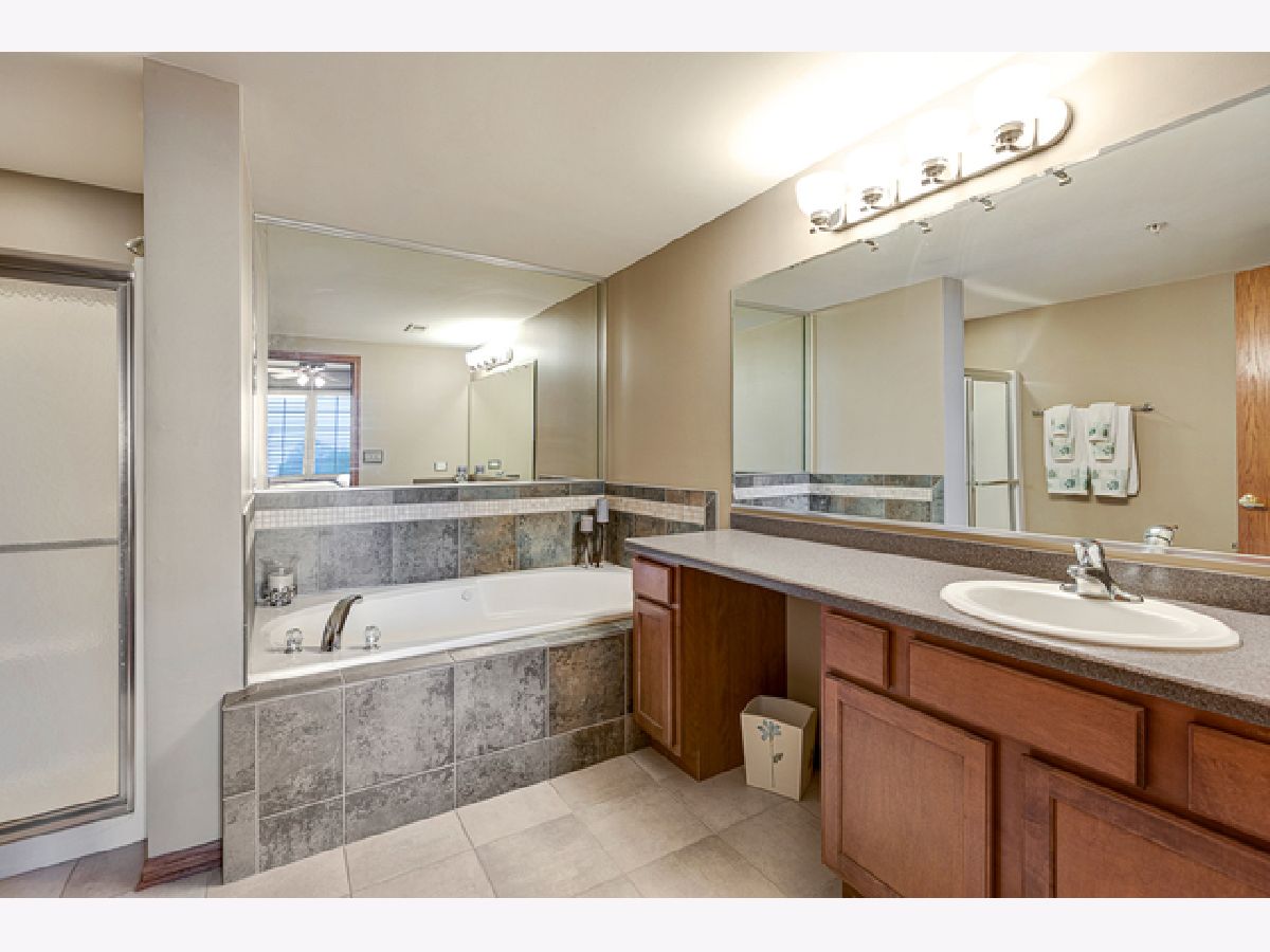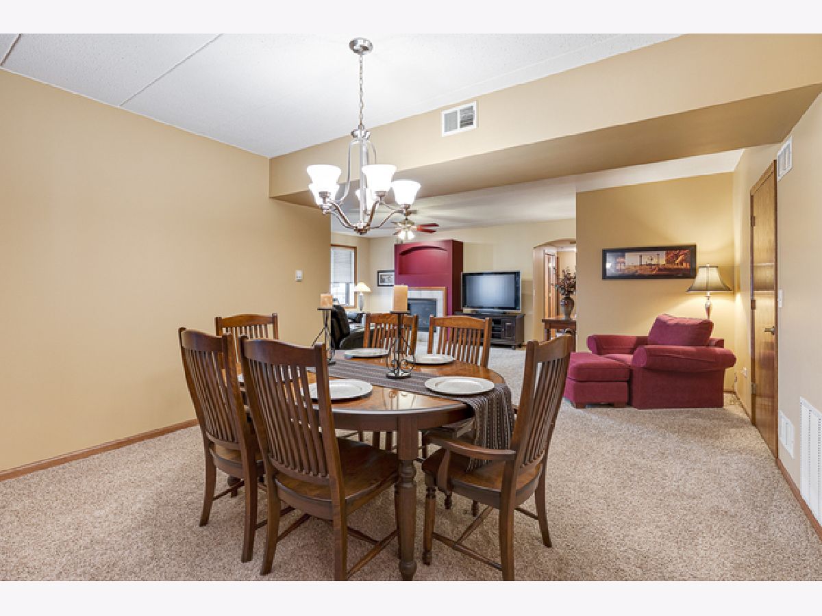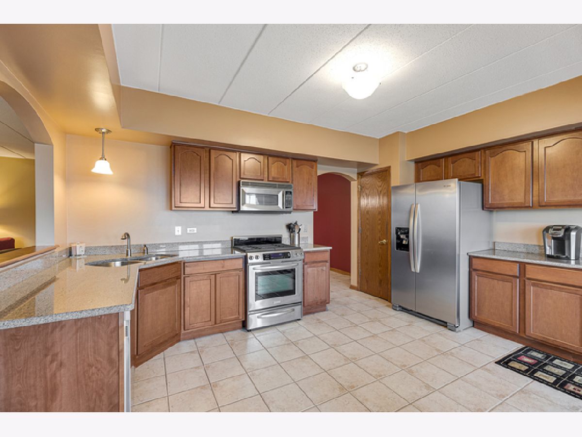 Hard to find 2 bedroom 2 bath elevator building luxury condo in excellent Tinley Park location. Features include huge kitchen with tons of maple cabinets, granite counters, stainless steel appliances, drop in double stainless sink, dry bar with wine rack closet pantry and bayed eating area! Spacious family room with heatilator fireplace, 4 panel window and ceiling fan! Master bedroom with walk in closet, ceiling fan and plantation shutters! Master bath suite includes whirlpool and separate shower! Bedroom 2 has walk in closet, plantation shutters and ceiling fan! Formal but open concept dining room! Walk in entry closet! In unit laundry with sink! Fantastic balcony overlooking the pond, gardens and walking trail! Heated under building garage system with storage area! Lake Michigan water! Flexicore ceiling and floors! Close to shopping, transportation and expressways! Do not miss this one!