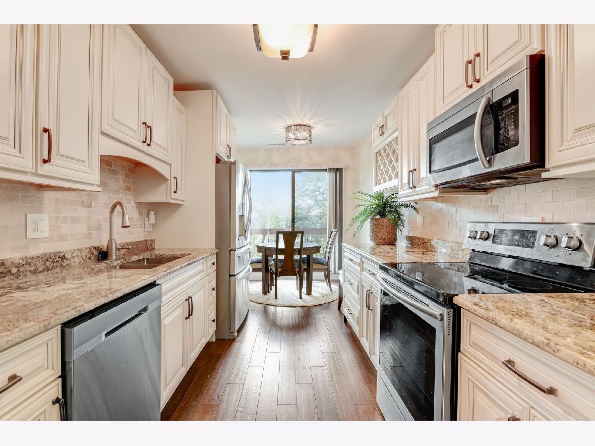 Accepting back-up offers! Prepare to be impressed! Move in ready, remodeled unit in a secure, elevator building. This oversized penthouse has 2 bedrooms and 2 full bathrooms. It features gorgeous flooring, Eat-in kitchen with beautiful cabinets, granite counter-tops and stainless steel appliances. There's a separate dining area and an open living room which leads to the spacious balcony. The primary bedroom has a large walk-in closet and en-suite. In-unit, full size washer and dryer and 1 indoor parking space add extra value to this beauty! Well run, self managed association. Ideal location with public transportation, I294, shopping and restaurants near. Welcome Home! Sorry, no pets or rentals.