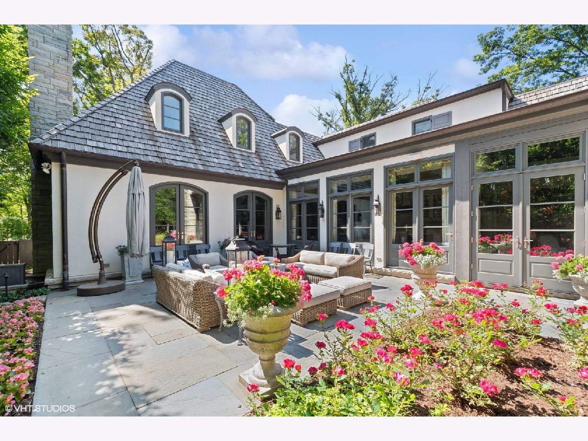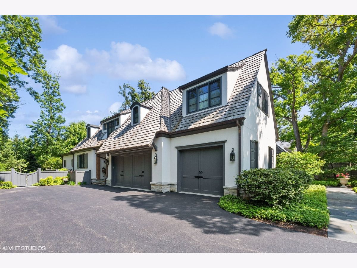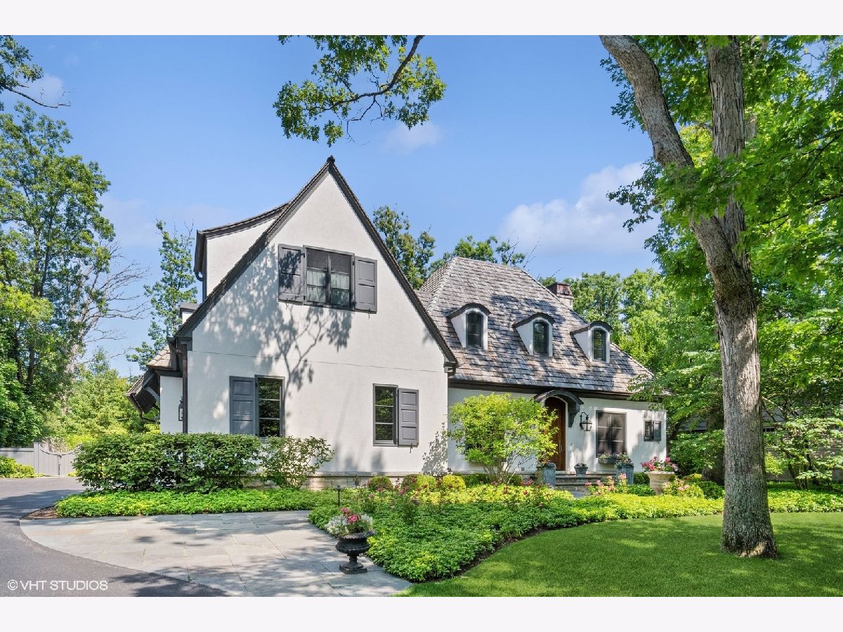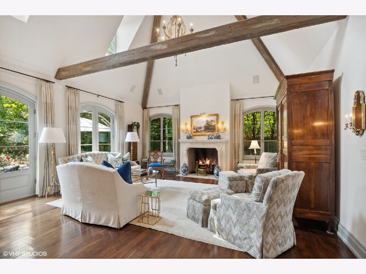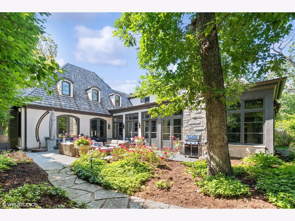 Constructed in 2013, this exquisitely designed French Provincial-style residence showcases meticulous craftsmanship evident in its selection of materials and intricate details. The main floor boasts a grand living room distinguished by a soaring vaulted and beamed ceiling, complemented by a stone surround fireplace, rich Walnut flooring, and gracefully arched French doors that lead to a private bluestone patio. Further enhancing the first floor is a bespoke home office complete with custom built-ins, a kitchen featuring top-tier custom cabinetry and high-end appliances, including a La Cornue range. The kitchen opens to a cozy sunroom/sitting area with a fireplace and stone flooring and overlooks the delightful backyard. The first-floor primary suite also features an impressive vaulted and beamed ceiling and boasts a stunning ensuite bathroom with both a stand-alone tub and a walk-in shower. Ascending to the second level, two private suites await, each characterized by vaulted ceilings and luxurious en-suite bathrooms. The basement level is equally compelling, with high ceilings, a large family room with a gas fireplace, space for recreational activities, a fitness room, a fourth bedroom accompanied by a full bathroom, and ample storage capacity. Facilitating a seamless transition between indoor and outdoor living, the numerous French doors on the main level allow the interior spaces to gracefully spill out into the professionally landscaped yard, a tranquil haven of serenity. The outdoor setting is complemented by a bluestone patio, creating an idyllic setting for both entertaining and family relaxation. Other noteworthy conveniences include the first-floor laundry room and the three-car heated garage, and elevator ready. This residence is the embodiment of true splendor and an opportunity not to be missed!
