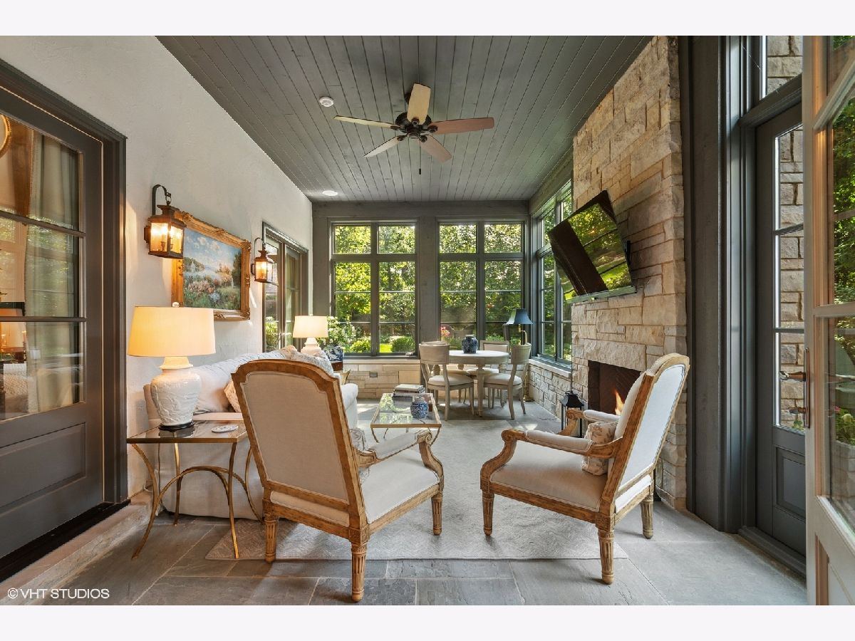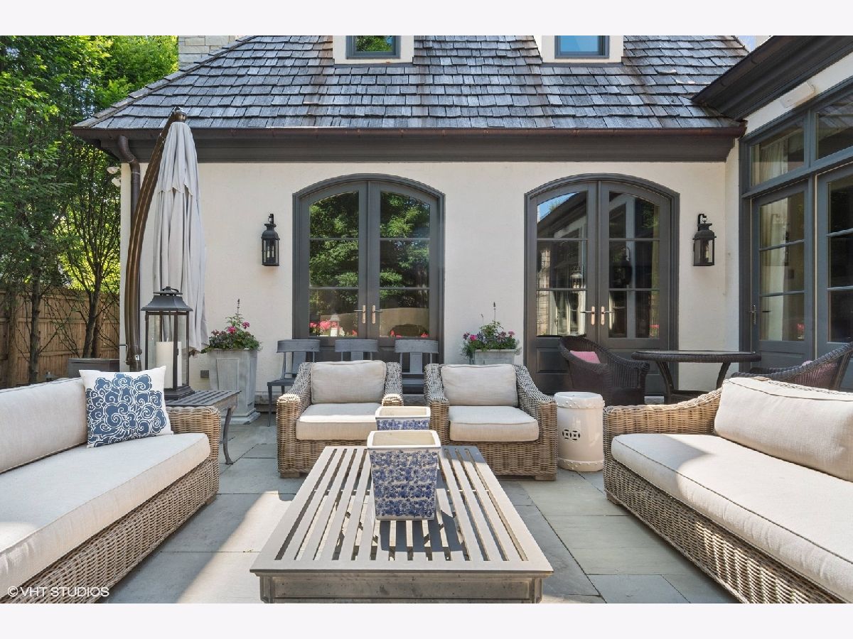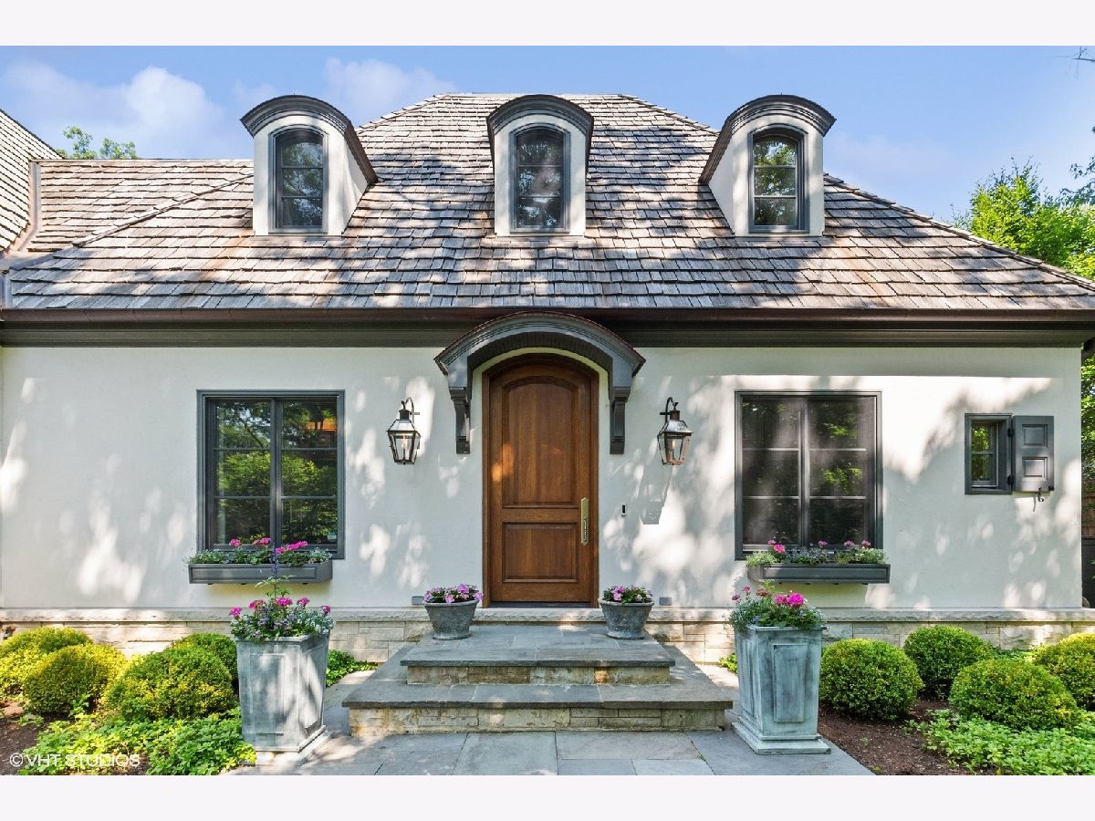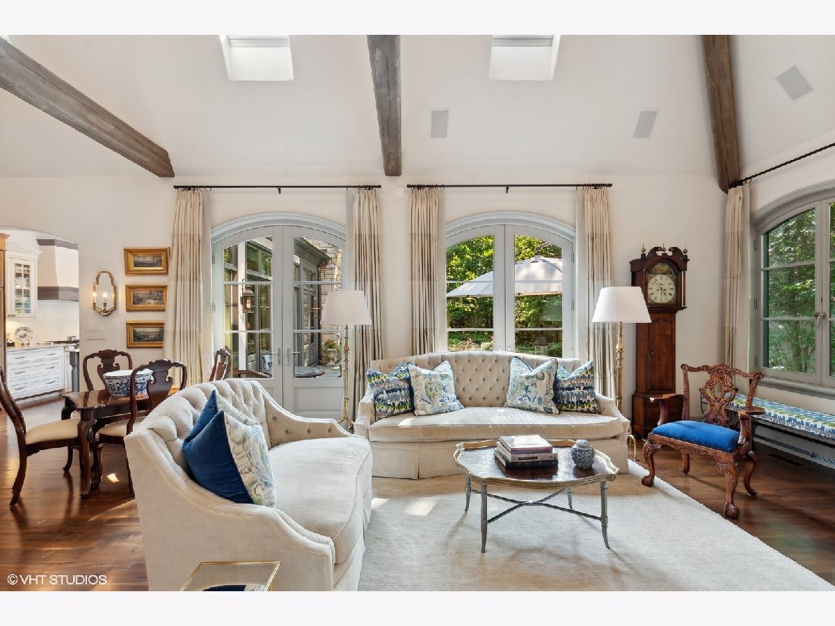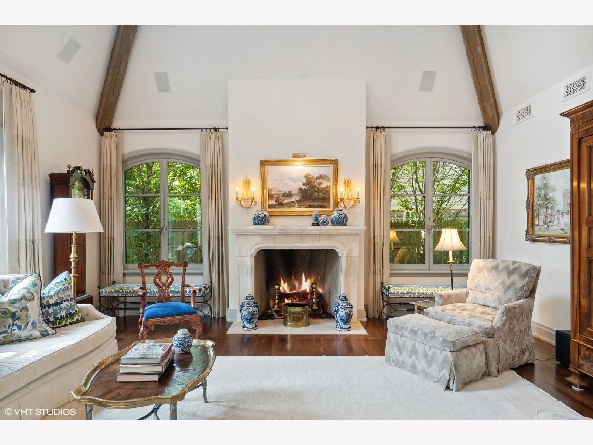 Constructed in 2013, this exquisitely designed French Provincial-style residence showcases meticulous craftsmanship evident in its selection of materials and intricate details. The main floor boasts a grand living room distinguished by a soaring vaulted and beamed ceiling, complemented by a stone surround fireplace, rich Walnut flooring, and gracefully arched French doors that lead to a private bluestone patio. Further enhancing the first floor is a bespoke home office complete with custom built-ins, a kitchen featuring top-tier custom cabinetry and high-end appliances, including a La Cornue range. The kitchen opens to a cozy sunroom/sitting area with a fireplace and stone flooring and overlooks the delightful backyard. The first-floor primary suite also features an impressive vaulted and beamed ceiling and boasts a stunning ensuite bathroom with both a stand-alone tub and a walk-in shower. Ascending to the second level, two private suites await, each characterized by vaulted ceilings and luxurious en-suite bathrooms. The basement level is equally compelling, with high ceilings, a large family room with a gas fireplace, space for recreational activities, a fitness room, a fourth bedroom accompanied by a full bathroom, and ample storage capacity. Facilitating a seamless transition between indoor and outdoor living, the numerous French doors on the main level allow the interior spaces to gracefully spill out into the professionally landscaped yard, a tranquil haven of serenity. The outdoor setting is complemented by a bluestone patio, creating an idyllic setting for both entertaining and family relaxation. Other noteworthy conveniences include the first-floor laundry room and the three-car heated garage, and elevator ready. This residence is the embodiment of true splendor and an opportunity not to be missed!