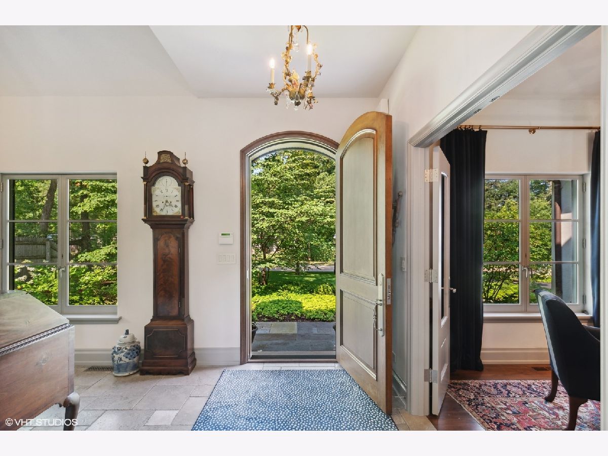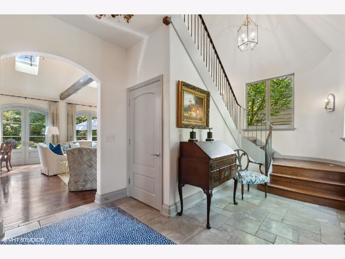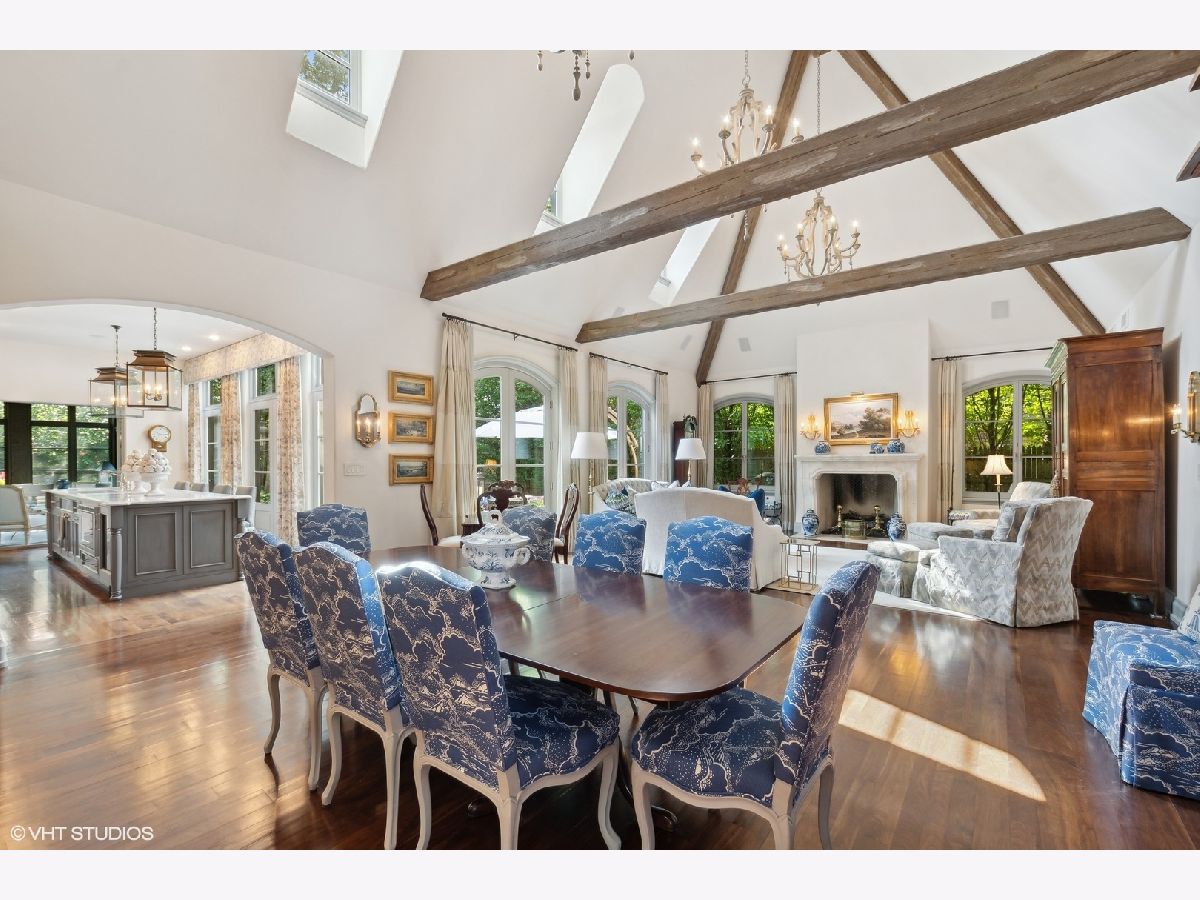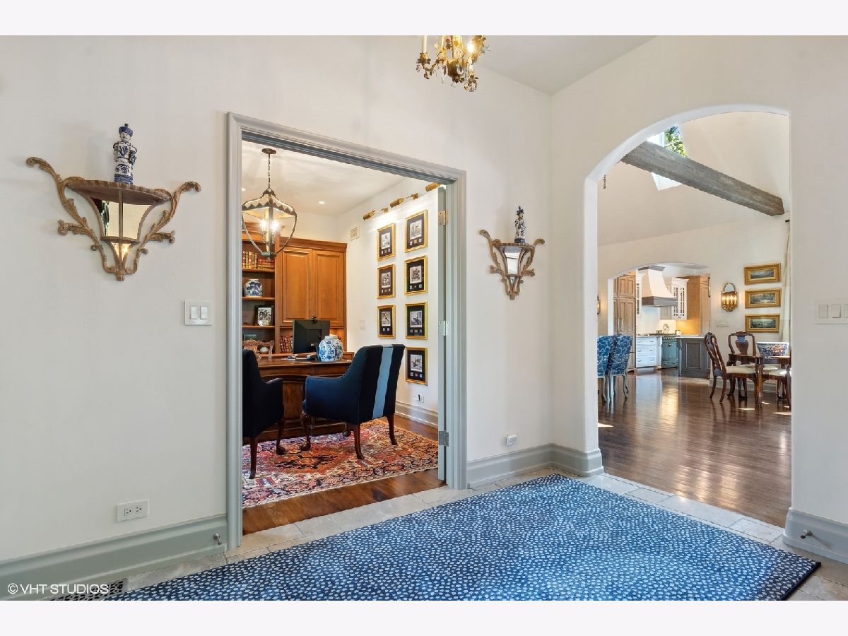 Constructed in 2013, this exquisitely designed French Provincial-style residence showcases meticulous craftsmanship evident in its selection of materials and intricate details. The main floor boasts a grand living room distinguished by a soaring vaulted and beamed ceiling, complemented by a stone surround fireplace, rich Walnut flooring, and gracefully arched French doors that lead to a private bluestone patio. Further enhancing the first floor is a bespoke home office complete with custom built-ins, a kitchen featuring top-tier custom cabinetry and high-end appliances, including a La Cornue range. The kitchen opens to a cozy sunroom/sitting area with a fireplace and stone flooring and overlooks the delightful backyard. The first-floor primary suite also features an impressive vaulted and beamed ceiling and boasts a stunning ensuite bathroom with both a stand-alone tub and a walk-in shower. Ascending to the second level, two private suites await, each characterized by vaulted ceilings and luxurious en-suite bathrooms. The basement level is equally compelling, with high ceilings, a large family room with a gas fireplace, space for recreational activities, a fitness room, a fourth bedroom accompanied by a full bathroom, and ample storage capacity. Facilitating a seamless transition between indoor and outdoor living, the numerous French doors on the main level allow the interior spaces to gracefully spill out into the professionally landscaped yard, a tranquil haven of serenity. The outdoor setting is complemented by a bluestone patio, creating an idyllic setting for both entertaining and family relaxation. Other noteworthy conveniences include the first-floor laundry room and the three-car heated garage, and elevator ready. This residence is the embodiment of true splendor and an opportunity not to be missed!