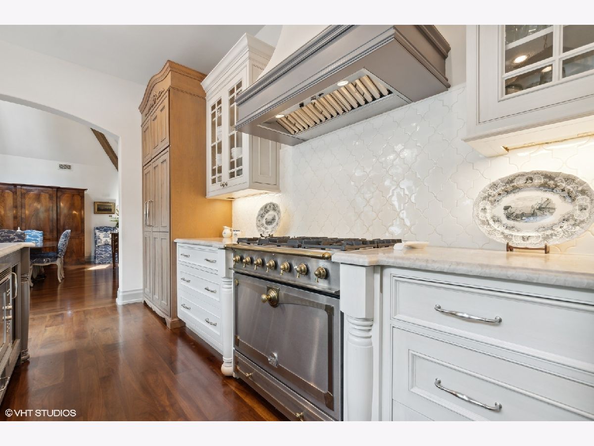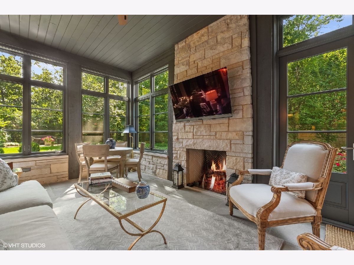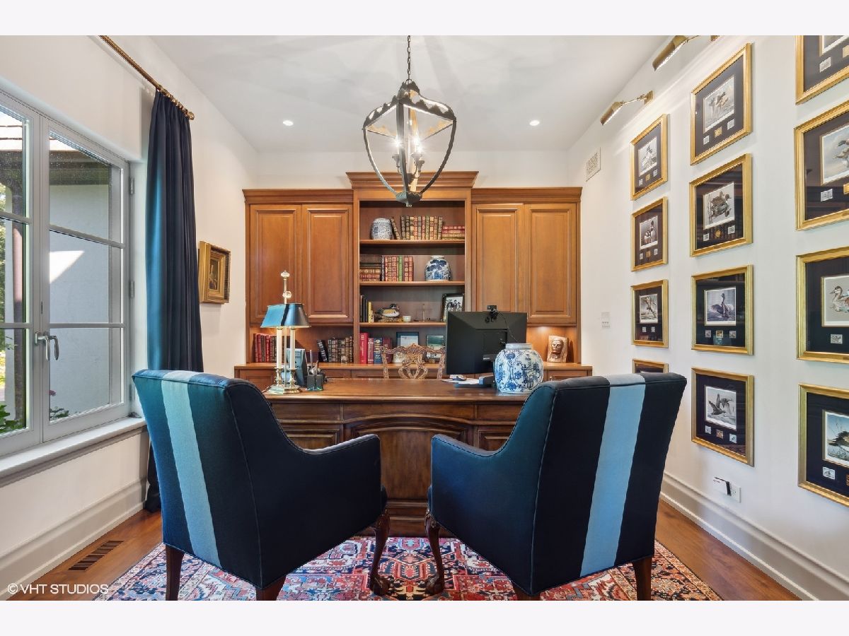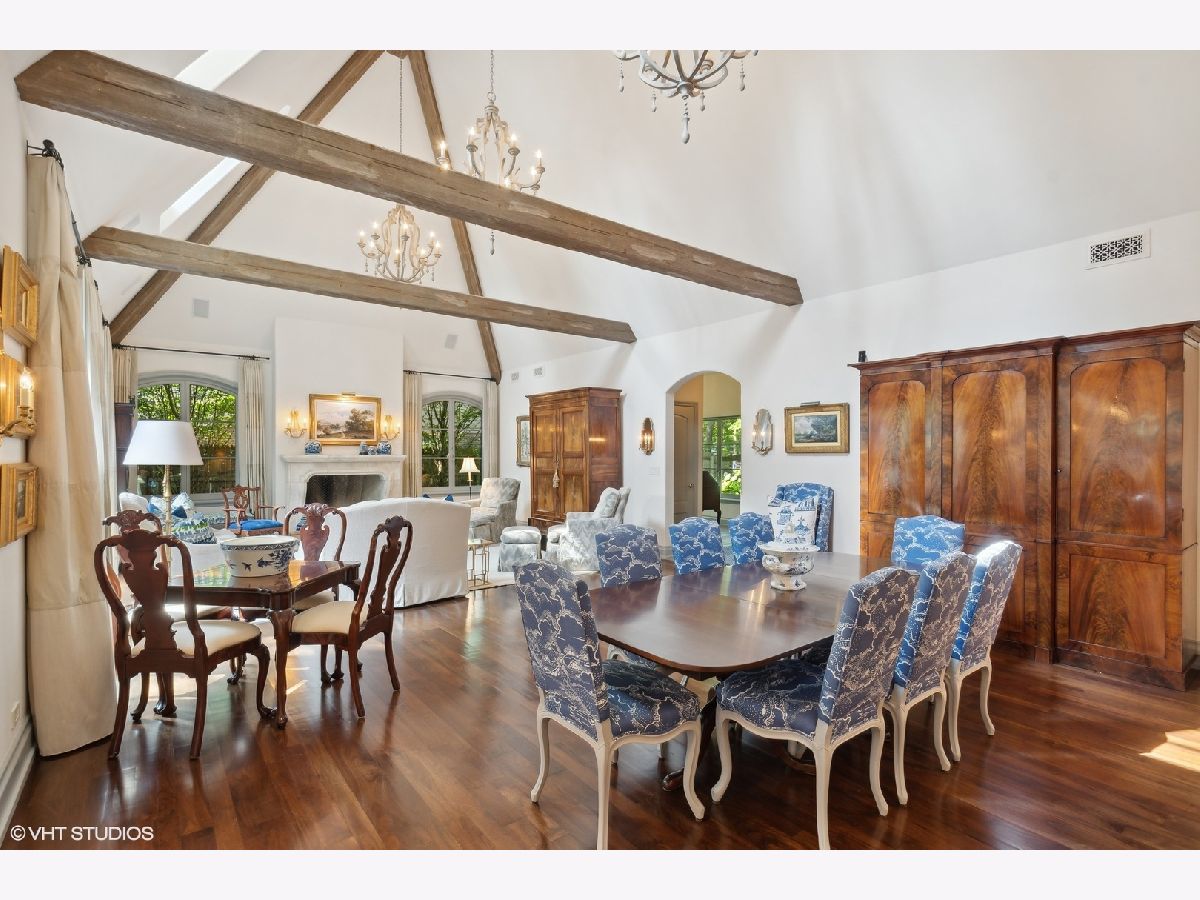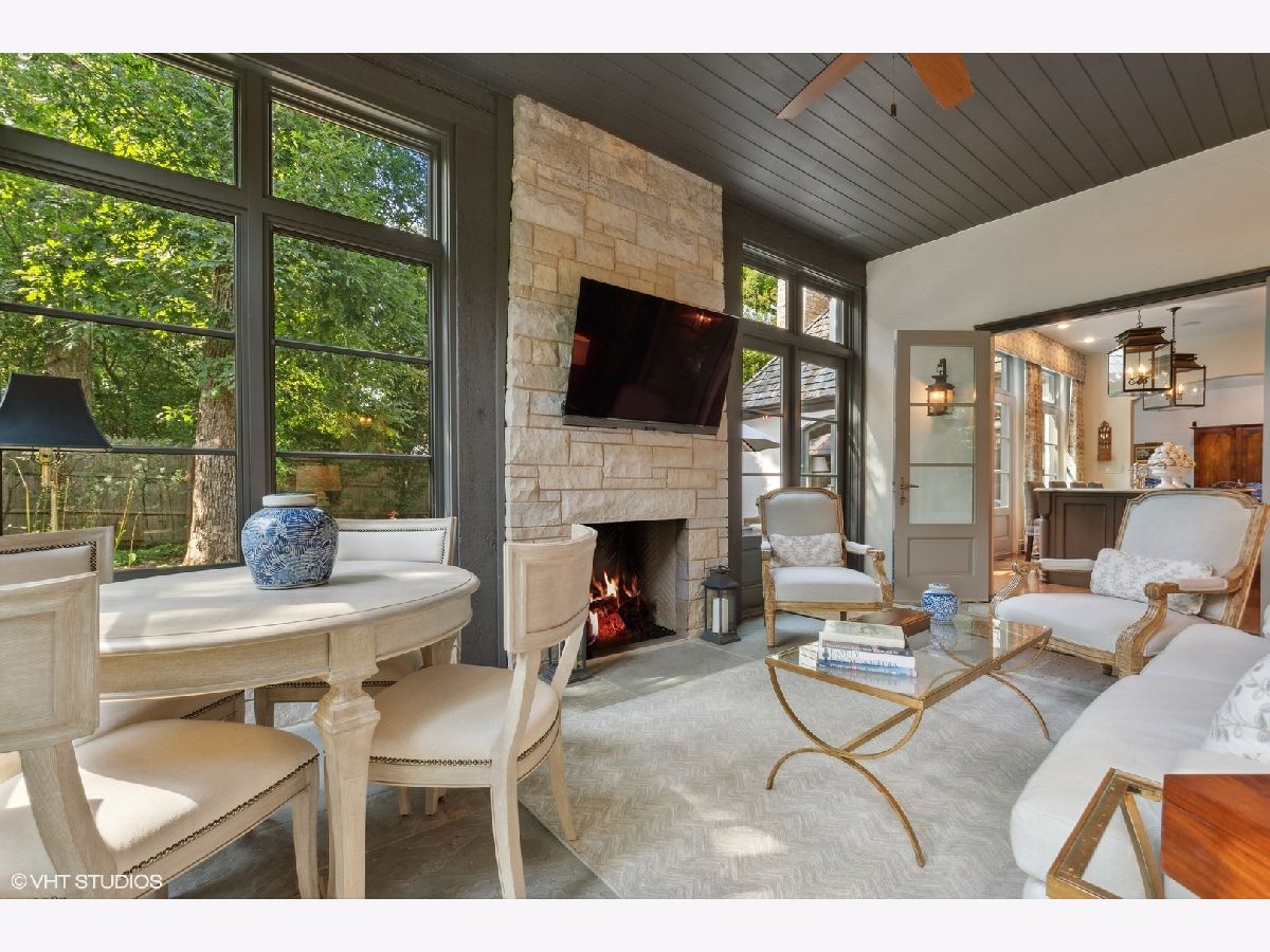 Constructed in 2013, this exquisitely designed French Provincial-style residence showcases meticulous craftsmanship evident in its selection of materials and intricate details. The main floor boasts a grand living room distinguished by a soaring vaulted and beamed ceiling, complemented by a stone surround fireplace, rich Walnut flooring, and gracefully arched French doors that lead to a private bluestone patio. Further enhancing the first floor is a bespoke home office complete with custom built-ins, a kitchen featuring top-tier custom cabinetry and high-end appliances, including a La Cornue range. The kitchen opens to a cozy sunroom/sitting area with a fireplace and stone flooring and overlooks the delightful backyard. The first-floor primary suite also features an impressive vaulted and beamed ceiling and boasts a stunning ensuite bathroom with both a stand-alone tub and a walk-in shower. Ascending to the second level, two private suites await, each characterized by vaulted ceilings and luxurious en-suite bathrooms. The basement level is equally compelling, with high ceilings, a large family room with a gas fireplace, space for recreational activities, a fitness room, a fourth bedroom accompanied by a full bathroom, and ample storage capacity. Facilitating a seamless transition between indoor and outdoor living, the numerous French doors on the main level allow the interior spaces to gracefully spill out into the professionally landscaped yard, a tranquil haven of serenity. The outdoor setting is complemented by a bluestone patio, creating an idyllic setting for both entertaining and family relaxation. Other noteworthy conveniences include the first-floor laundry room and the three-car heated garage, and elevator ready. This residence is the embodiment of true splendor and an opportunity not to be missed!