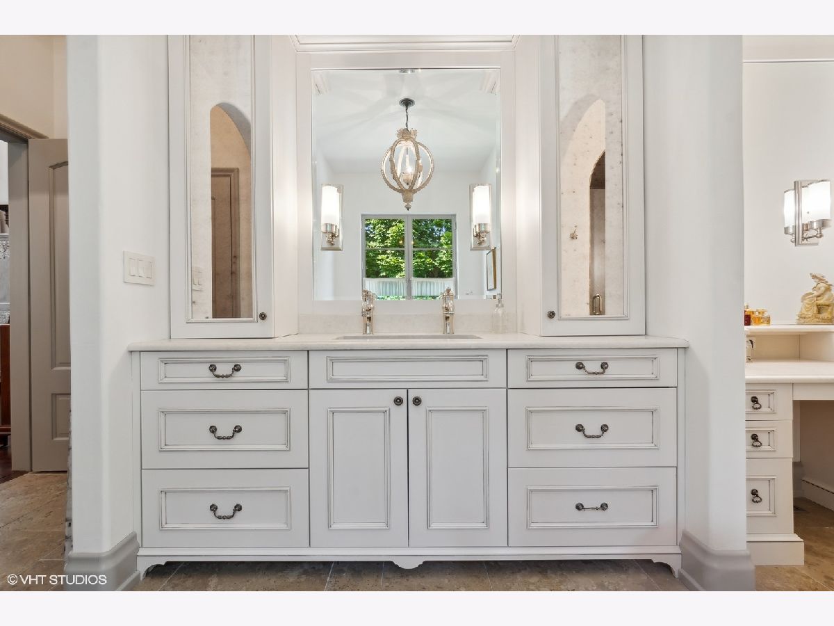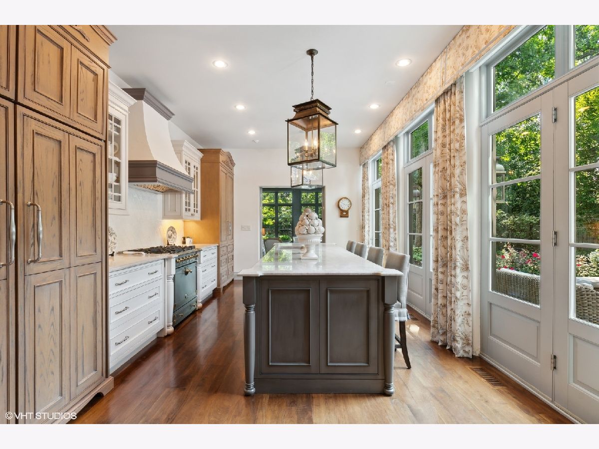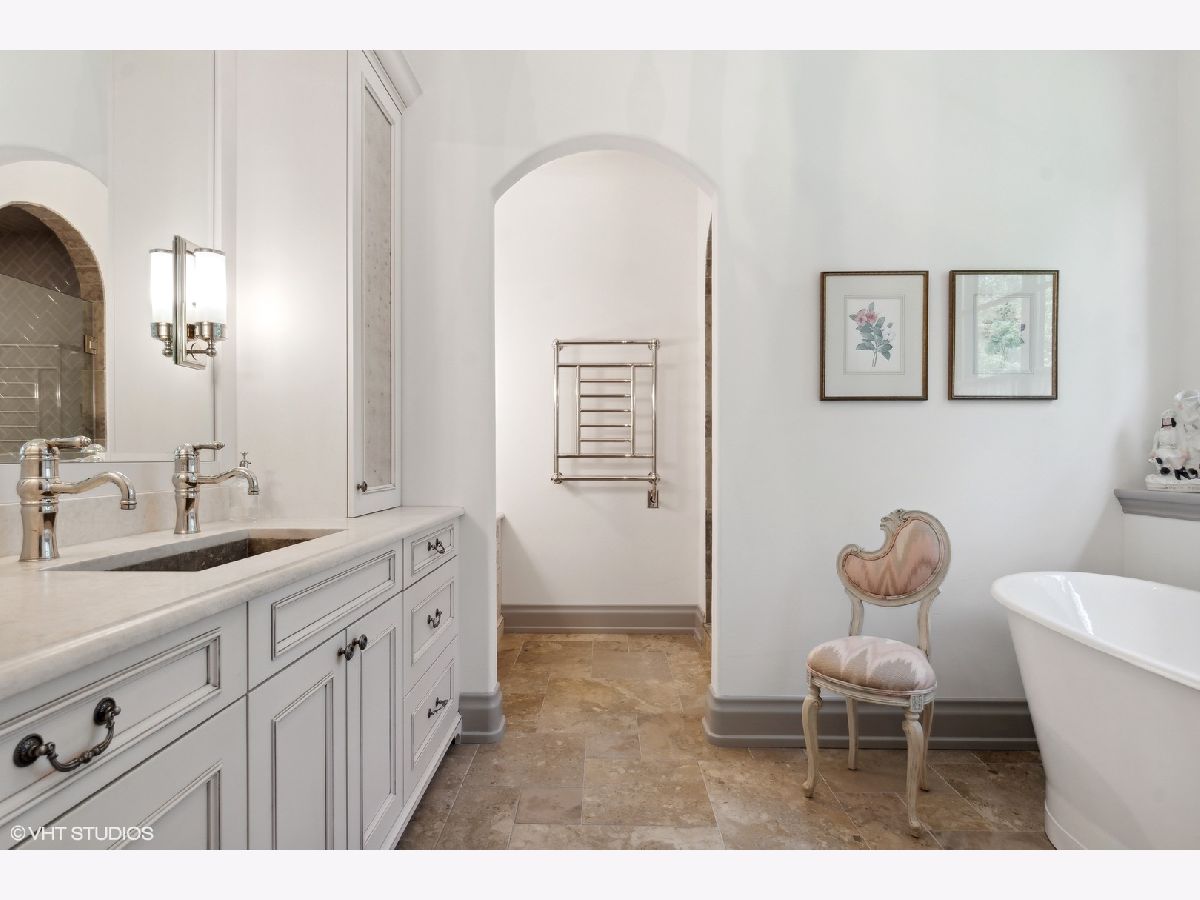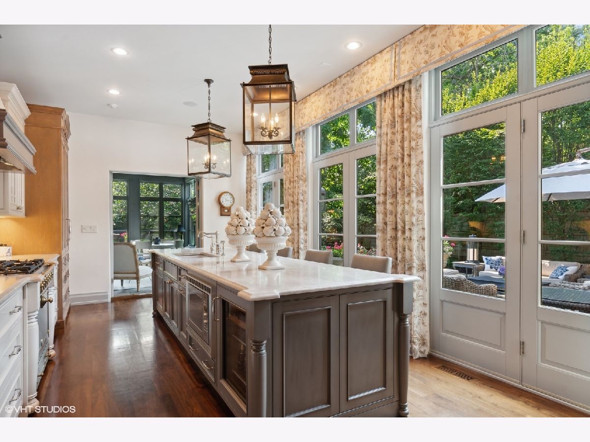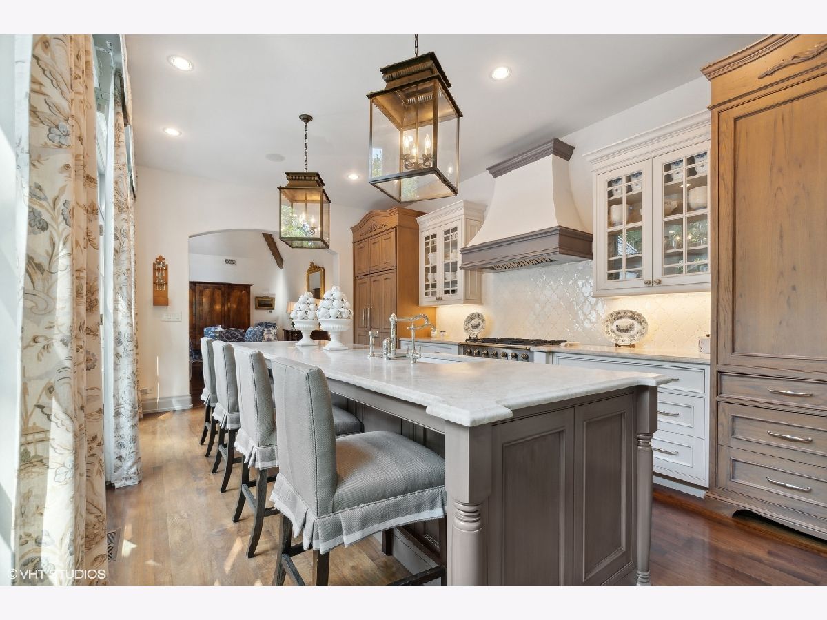 Constructed in 2013, this exquisitely designed French Provincial-style residence showcases meticulous craftsmanship evident in its selection of materials and intricate details. The main floor boasts a grand living room distinguished by a soaring vaulted and beamed ceiling, complemented by a stone surround fireplace, rich Walnut flooring, and gracefully arched French doors that lead to a private bluestone patio. Further enhancing the first floor is a bespoke home office complete with custom built-ins, a kitchen featuring top-tier custom cabinetry and high-end appliances, including a La Cornue range. The kitchen opens to a cozy sunroom/sitting area with a fireplace and stone flooring and overlooks the delightful backyard. The first-floor primary suite also features an impressive vaulted and beamed ceiling and boasts a stunning ensuite bathroom with both a stand-alone tub and a walk-in shower. Ascending to the second level, two private suites await, each characterized by vaulted ceilings and luxurious en-suite bathrooms. The basement level is equally compelling, with high ceilings, a large family room with a gas fireplace, space for recreational activities, a fitness room, a fourth bedroom accompanied by a full bathroom, and ample storage capacity. Facilitating a seamless transition between indoor and outdoor living, the numerous French doors on the main level allow the interior spaces to gracefully spill out into the professionally landscaped yard, a tranquil haven of serenity. The outdoor setting is complemented by a bluestone patio, creating an idyllic setting for both entertaining and family relaxation. Other noteworthy conveniences include the first-floor laundry room and the three-car heated garage, and elevator ready. This residence is the embodiment of true splendor and an opportunity not to be missed!