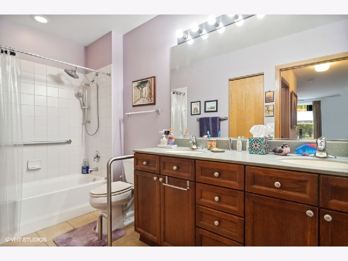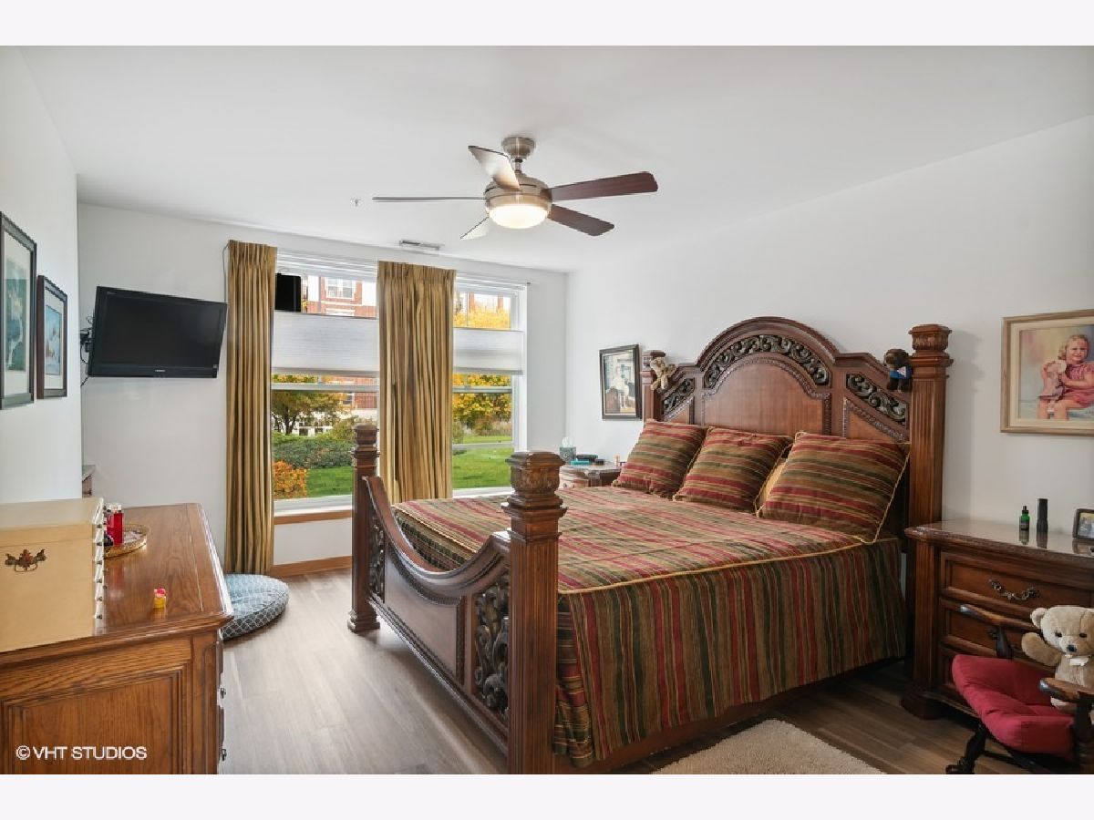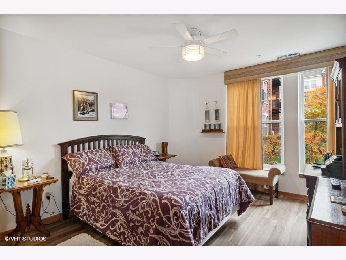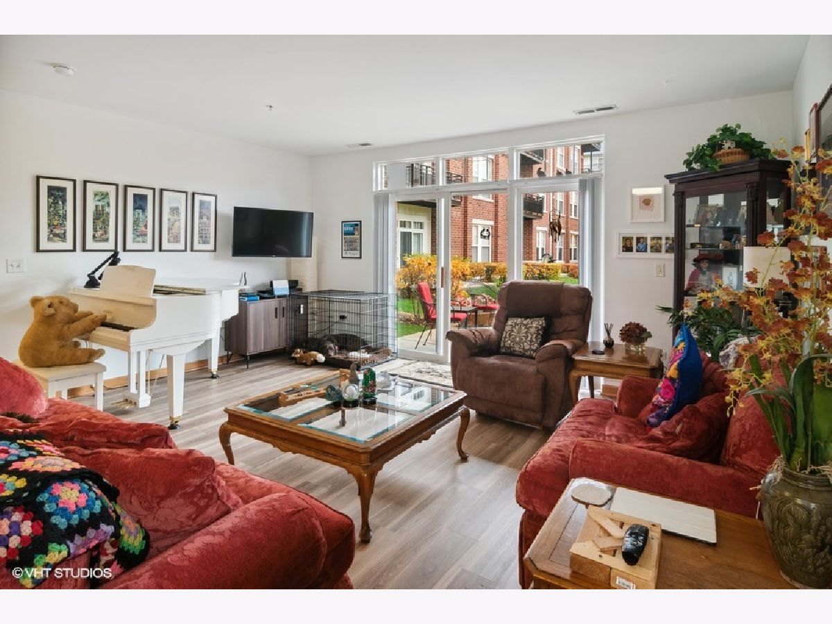 It's hard to get one of these fabulous WALK OUT PATIOS at the Grove. Just open the sliding glass door and it feels like you have your own back yard with beautiful views of the lush landscaping.This split bedroom floor plan is coveted. Each bedroom has its own bath. The granite kitchen with 42" cabinets has a new backsplash, new refrigerator and new microwave. It opens to the living area which is great for entertaining. There are many upgrades to this unit since the owner purchased in 2020. New engineered hardwood flooring in the living room and bedrooms. New vertical blinds in the living room. New windows and window treatments in both bedrooms. A primary bedroom nook was installed. There are handheld shower heads in both bathrooms. New white cabinets in the laundry room and a new pan was installed under the washer. An Aprilaire humidifier was added to the furnace. The entire unit was painted in 2020. There's an exercise room, party room and dog walking path. You're one block from the Blue Line and walking distance to downtown Forest Park. One heated handicapped garage space (96) - close to the elevator. Storage locker is on the second floor around the corner from the unit. #2. Investors - unit can be rented.