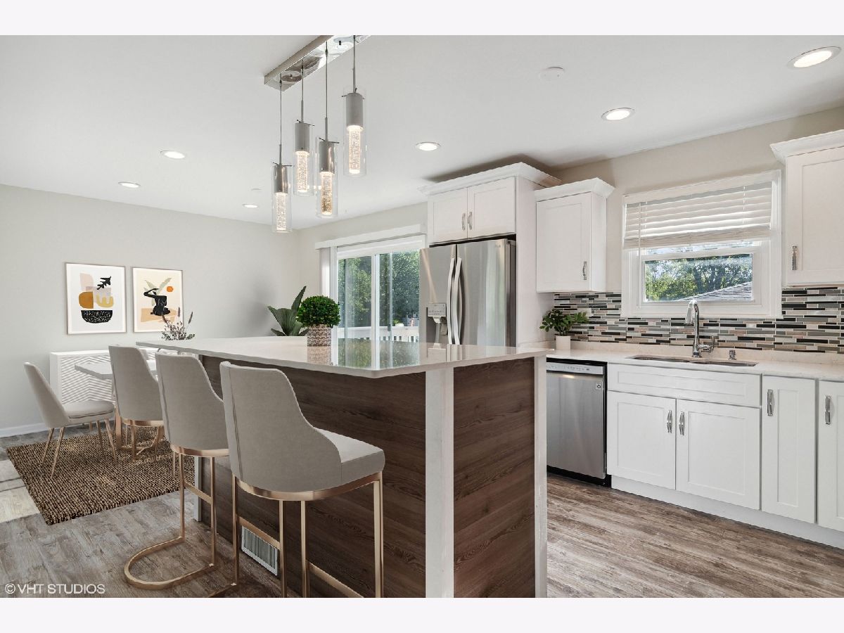 Stunning raised ranch home in desirable Woodridge; offering 4 bedrooms, 2.1 baths with a gorgeous renovation in 2019. Neutral decor, open floor plan, sleek finishes and commercial grade luxury vinyl plank flooring throughout the home. Dreamy open floor plan with kitchen, dining room and living room being the center of attention. Sparkling white kitchen boasts Italian Quartz countertops, white shaker style cabinets with trim accents, LG stainless steel appliances, tile backsplash, center-island with seating and pendant lighting. All bathrooms feature plank tile flooring, subway tile accents, tile surround showers, new lighting and vanities. Luxurious primary suite highlights it's own beautifully updated private bath with subway tile, new vanity, lighting, etc. New ceiling fans with lights in all 4 bedrooms. Huge lower-level family room provides so many possibilities and also features a half bath and laundry area. Laundry room offers Maytag HE front load washer/dryer (2020). Heated and cooled 2.5 car garage with LED lights and tons of space to store! Additional updates: high efficiency HVAC (2020), central humidifier (2020) and Smart thermostat (2020). 10+ for location - easy access to schools, Cypress Cove Pool and Family Aquatic Park, shopping, tennis courts, bike trails, restaurants and major highways. Welcome home! ***Multiple offers received. Highest and best due Sunday, Aug. 6, 12 p.m.