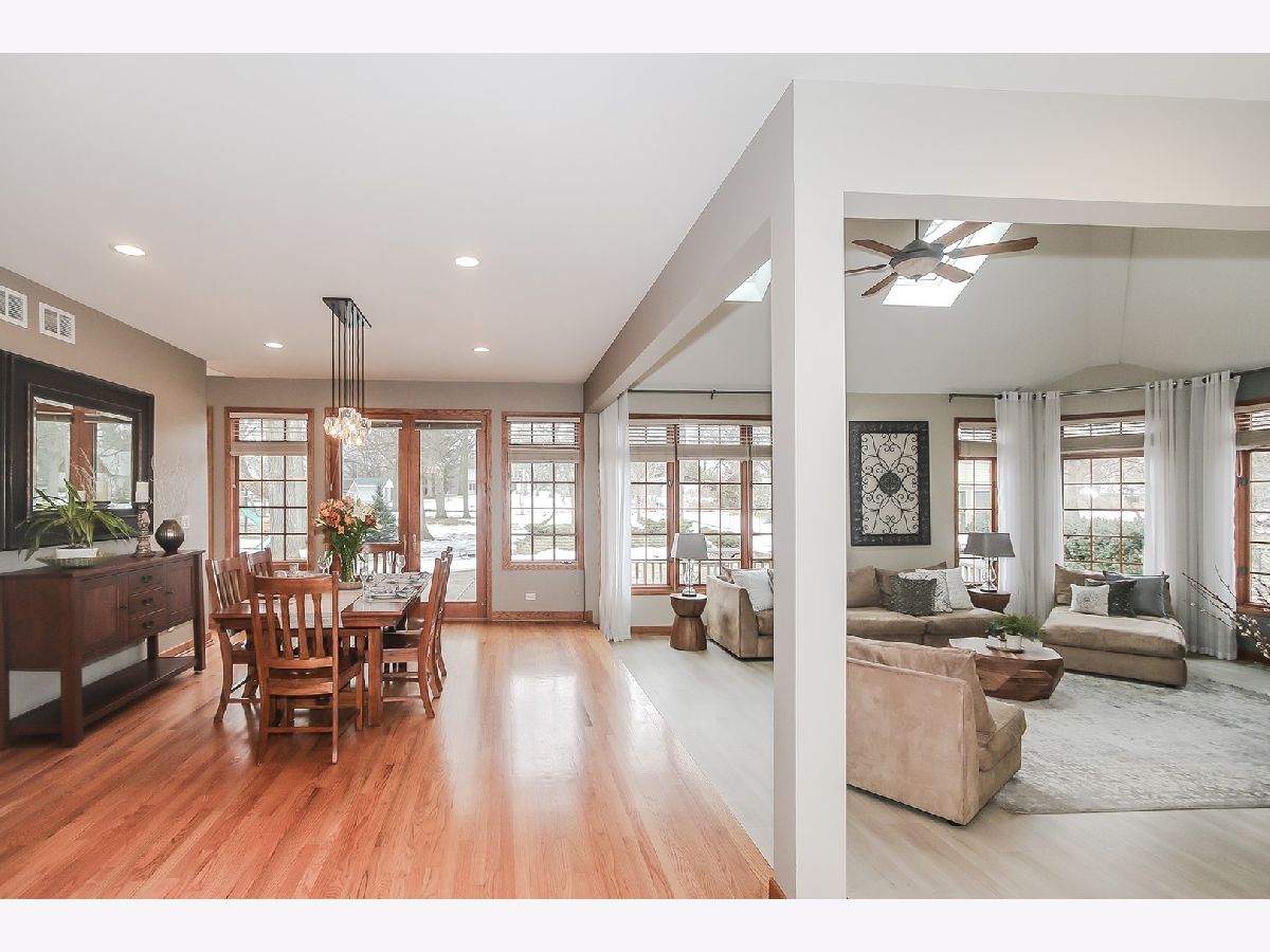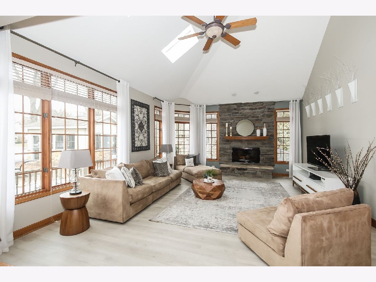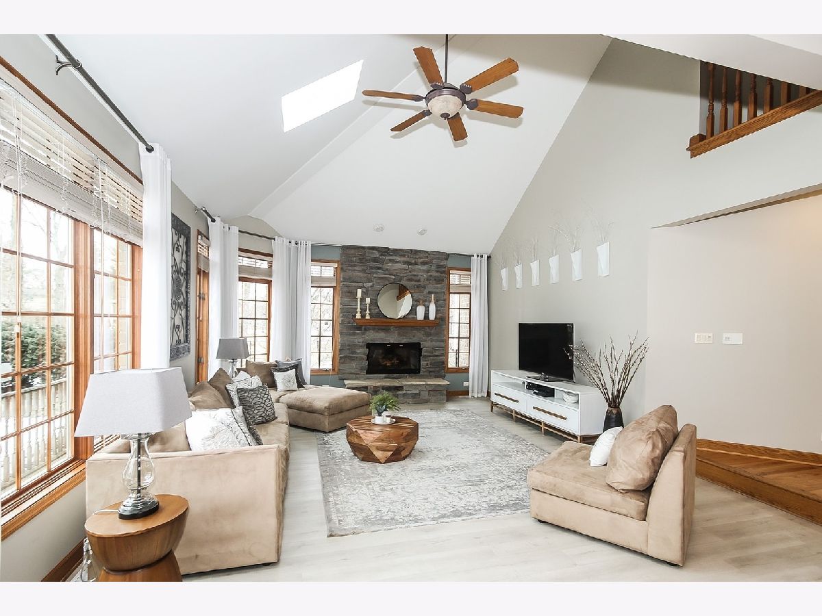 You're search is over! This quality built custom home located on 1.2 wooded acres is your wish come true! The minute you pull in the drive you will be impressed. Inside, a gallery foyer welcomes you, with soaring ceiling and dramatic staircase. The open and inviting floor plan features an expansive great room with volume ceilings and fabulous fireplace with windows galore overlooking your fabulous backyard with towering oak trees and a lovely outdoor space with super adorable 4-season room is heated, wired for cable and ready for fun! The patios, gardens, shed and nearly new play-set is an outdoor heaven. The fabulous, spacious kitchen features cabinets and counters galore, sets the stage for every day living with family and entertaining your friends. Finishing out the main level are two nice sized bedrooms, a full bathroom, and a generous sized laundry room. Upstairs, the master suite is your private retreat with its lovely master bath, generous closets and additional room for a cozy sitting area. Work from home? No problem here, a second floor office gives you the privacy and quiet you need to run your business or finish out your days work after dinner. You may think that's all, but wait, we have more! A full, finished walkout basement is the cherry on the cake...a full service wet bar, heated floors, expansive recreation room, bathroom and bonus room, now used as a play area, provides you with so much spreading out room you simply won't want for more. Any way you look at it, the value of this home is top notch and simply one you won't want to pass up! Walk to train too! New furnace (2019), A/C (2019), Roof (2016), Refrigerator (2019), Carpet (2020), 4 season room with barn wood (2016) and new gutters/skylights.