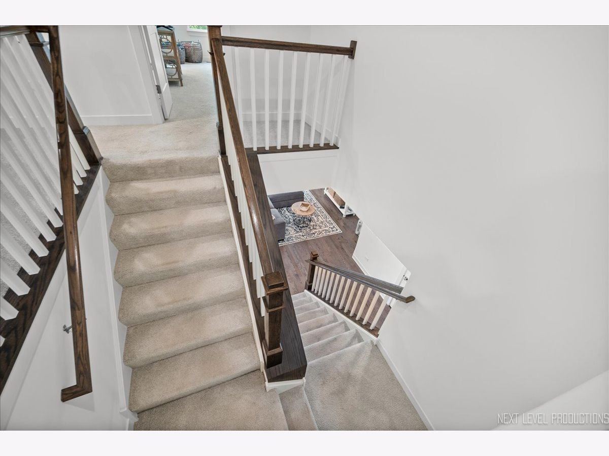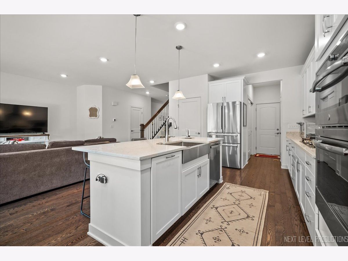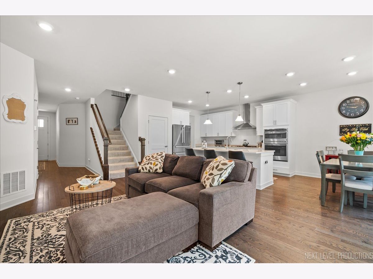 Beautifully appointed 3 year old barely lived in 2 story townhome strikes the perfect balance between elegance, comfort and quality craftsmanship. Its location is a few minutes away from the Metro, stunning downtown Geneva, the Fox river with all of its biking and walking trails, and the Fabyan Forest Preserve. This elegant home features solid hardwood floors throughout the first floor with a chef's dream gourmet kitchen complete with top of the line stainless steel GE Profile kitchen appliances, quartz countertops, 42 inch cabinets with crown molding, 36 inch cooktop with chimney hood, huge center island with seating area, soft closed drawers and a large walk-in pantry. This open airy concept continues into the dining area and family room benefiting from the 9 foot first floor ceiling and abundance of natural light coming from the many windows that allow the sunshine to pour into this home. The sliding glass door from this dining area will lead to the private deck perfect for enjoying back yard BBQ's during those warm summer months with family and friends. Back inside flowing from the dining room to the spacious family room you will notice the elegant granite surround fireplace with a painted wood mantle to help keep you warm during those long cold winter months. Moving on to the upstairs you will find the open concept continues with generous bedroom sizes including a large master suite with a luxury private bath complete with separate walk-in shower, upgraded tile backsplash and flooring, separate double vanities, stand alone tub, adult height white painted cabinets with Corian countertops. You will be excited to see the super convenient spacious second floor laundry complete with washer and dryer right down the hallway from your master suite. The remaining 2 bedrooms are also very good size with both having walk-in closets. Bedroom 2 has direct access to the hall bath that has also been upgraded with elegant tile floors and backsplash and a double sink. As you venture down to the basement you will notice the deep pour high ceilings with 833 square feet waiting for your finishing touches. This area would make a wonderful recreation room, workout space, or any other personal needs space that would blend both functional living space and added value. This home will give the appearance of new construction due to the care, infrequent use due to a travel schedule, and upgraded features such as trim, doors, railings, brushed nickel finishes, and LED lighting upgrades installed by the builder. The newer Riverbank Crossing Townhome subdivision is 3 years young, is tucked tastefully back away from any noise, has a smaller number of total units making it more desirable. It also has low association fees and backs to single family homes of established neighborhoods. There is more. Across the street, you will enjoy the Fabyan Forest Preserve along the Fox River with all of its activities including bike trails and walking paths and Japanese gardens. You are just a few minutes away from the Metro Train station, quaint historic downtown Geneva with all of its many unique shops and charming restaurants and many festivals including Swedish Days. Probably one of the most charming downtown areas in the midwest if not the country. Don't miss this opportunity for easy hassle-free living.