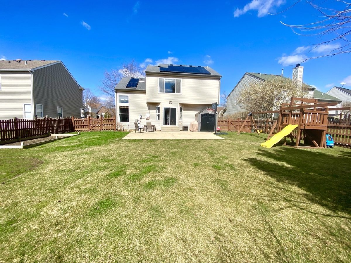 Gorgeous 2-story living with Full-Finished Basement in the sought-after Ravinia Woods. 4 large Bedrooms with 3.5 Baths, the 3rd Full Bath in the Basement is perfect for family / guests. Grand 2-story Foyer with Vaulted Ceilings and Luxury Vinyl Plank Hardwood Floors in the Living and Dining areas with lots of natural light throughout. Eat-in Kitchen with Stainless Steel appliances, Oak Cabinets, Breakfast Bar overlooking the large Family Room also with LVT Hardwood Floors, leading to the perfect fully Fenced-in Backyard with garden, storage shed, and Playset included. Expansive Finished Basement with 3rd Full Bath and room for Storage and Recreation. High Efficiency Laundry Units. Furnace is 5 years new; Roof, A/C, and Water Heater new in 2011. Home includes solar panel system for huge potential cost savings, lease must transfer with the home (ask for more details). Close to Schools, Parks, Shopping, Restaurants, Groceries, and Six Flags Great America.