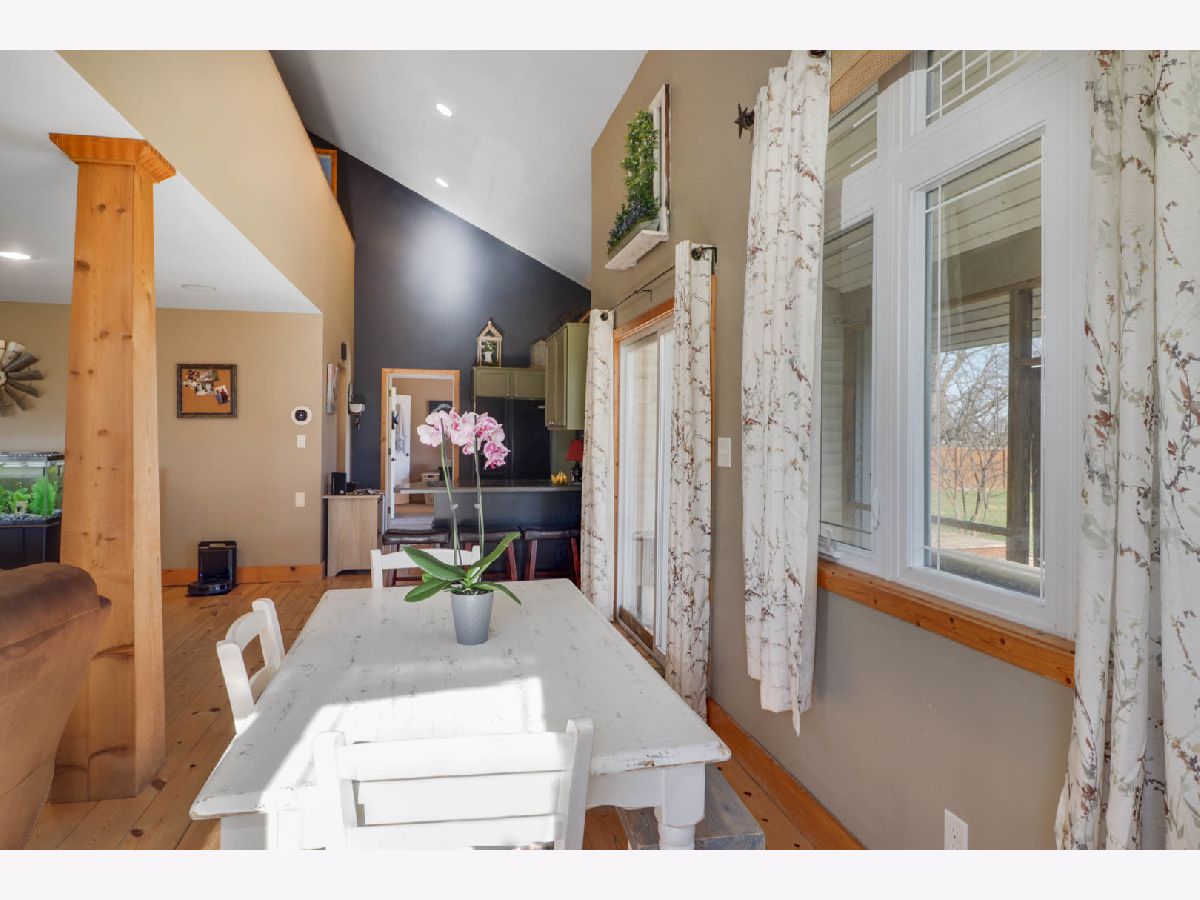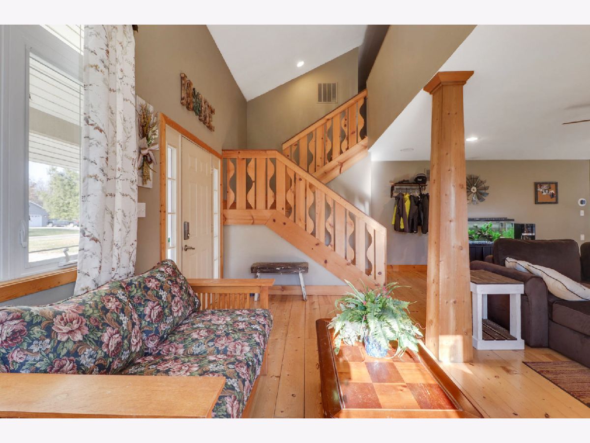 Charming 3 bedroom 2 and a half bath contemporary home with rustic elements. The home is open and lofty with beautiful pine wood floors, wood trim and pillars, natural lighting throughout, vaulted ceilings and sky lights. The master bedroom is located on the first floor and includes vaulted ceilings, attached full bathroom with double sink, walk-in closet, and your own private walk-out to the back deck. The upstairs offers an additional living space, full bath, and two bedrooms. Spend your nights out in the screened patio, on the large back deck, out in the .66 acres with fenced yard, or by the fire-pit with custom seating area. There is an additional detached garage for storage. The HVAC system was replaced in 2019 and includes a 10 year warranty. Close to Clinton lake, parks, and boat launch. Schedule your private tour today!