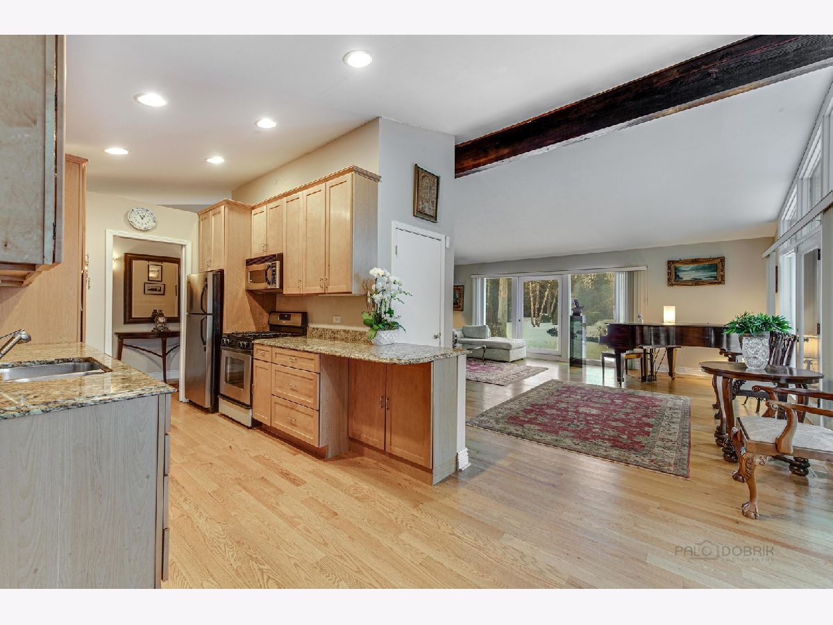 Charming 3BR/2BA ranch with expansive living areas, vaulted/beamed ceilings, and newer kitchen and baths. Impressive walls of windows and doors provide gorgeous seasonal views of the 1+ acre lot with deep and private rear yard. In recent years, $60K was spent on specimen trees and landscaping. The great room has an elegant wood burning fireplace and oak hardwood floors. The kitchen features granite countertops, maple cabinetry, stainless steel appliances and oak hardwood floors. New furnace 1/2022. Crawl space, no basement. The oversized 2.5 car garage offers a large storage area in addition to the two car bays. This much loved property is being sold "as is".