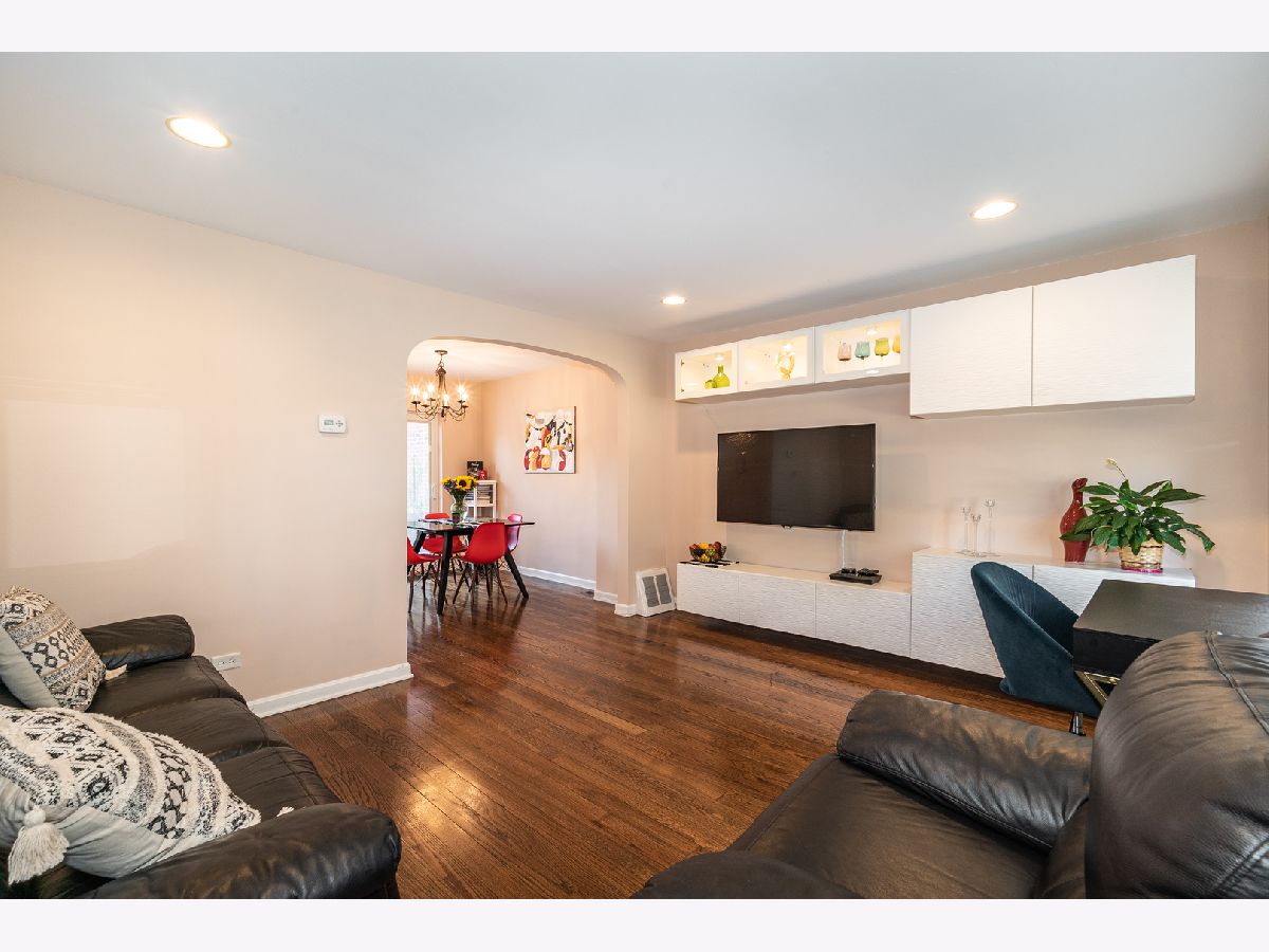 Desired Oriole Park 2 beds/2 bath with nicely finished basement that could be a 3rd bedroom, office or rec room. Harwood floors on both levels. Kitchen has white cabinets, glass and natural stone backsplash and granite countertops, it is equipped with filtered water fountain. Newer dishwasher and microwave with oven functions for convenience. Living room has wall mounted modern cabinets that can stay or go. Furnace, A/C and water heater are approx 6rs old. Come see this pleasant home with amazing outside rest area! Custom oversized deck and appreciate big private backyard. Enjoy what Oriole Park has to offer: bike and walk paths, library, tennis courts, 3 playgrounds or sport fields. Beautifully located in the quiet neighborhood with easy access to expressways, shopping and CTA.