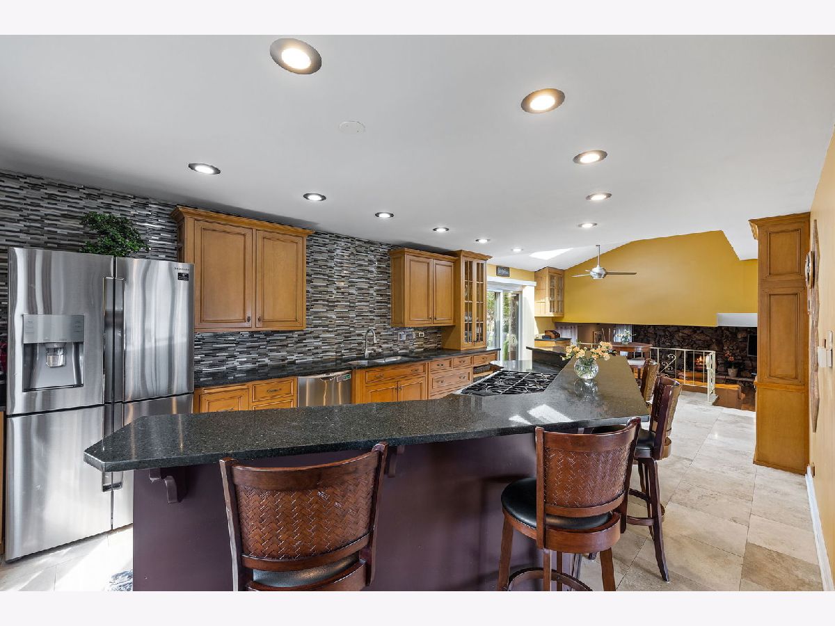 This incredible all brick oversized quad level will exceed your expectations. Foyer boasts vaulted ceilings allowing an abundance of natural light. The masterful chef's kitchen was completely remodeled in 2017 including a removed wall for an open concept and features high-end appliances, custom cabinets, backsplash, granite countertops and two skylights over the dinette area. New flooring was installed throughout the main floor and LL. Upstairs you will find hardwood floors, 4 generous sized bedrooms and the primary suite features a completely remodeled private bathroom. Lower level family room & entertaining area are absolutely enormous featuring a gas fireplace and 12' wet bar. A luxury bathroom and laundry room both beautifully remodeled to wrap up the lower level. Other characteristics include; sub basement, 2.5 car garage, paver patio and large driveway. Situated in a prime cul-de-sac lot with a massive backyard in a well established neighborhood with an excellent school district.