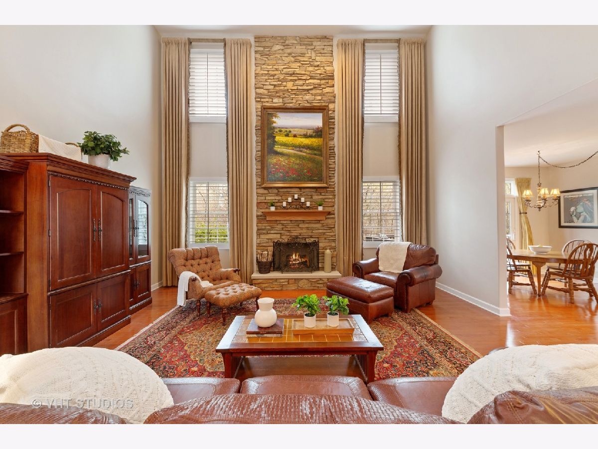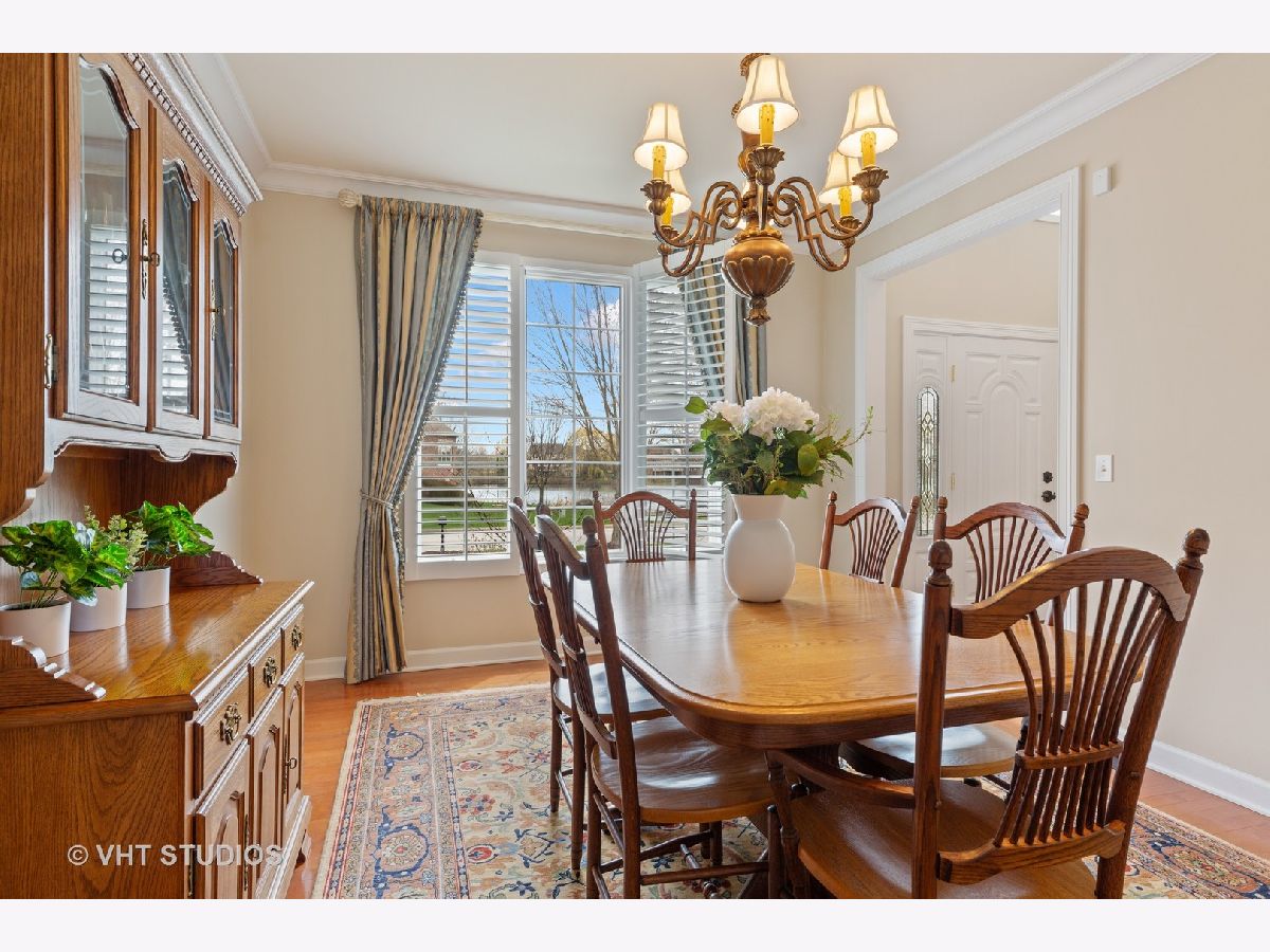 It is hard to know where to begin on this pristine, impeccably maintained home with 3488 sq. feet of custom living. Stunning from the minute you step inside! Custom kitchen with high end stainless steel appliances (Wolf range), cherry 42" cabinets, huge (80" x 81") quartz center island with seating and opens to the family room. The first floor study/office can also be used as a 5th bedroom as there is a full bath next door. The two story stone fireplace is the focal point of this amazing home and offers warmth and openness for your entertaining. The formal dining area gives you light, views of the lake across the street, custom molding and plantation shutters and is conveniently located dry bar between the kitchen and dining area. The split staircase takes you up to the master suite where you will find a spacious master suite with custom window treatments, plantation shutters tray ceiling, wonderful walk-in closet, spacious and bright master bath with a separate shower. The bedrooms are all large with great closet and storage space. First floor laundry/mud room is a great size with tub, storage and storage closet with access out to your finished THREE car garage. This home offers you a full basement, with tons of storage, plumbed for a full bath. NEW ROOF IN 2019, NEW HVAC IN 2018, IRRIGATION SYSTEM IN THE FRONT AND BACK AND LANDSCAPING BEDS. The private back yard backs to wet lands with a 18 x 16 deck and great landscaping. Walk to the Crystal lake and parks, three golf courses are minutes away and conveniently located shopping. This truly is a turn key home in a wonderful sought after neighborhood with great schools and location.