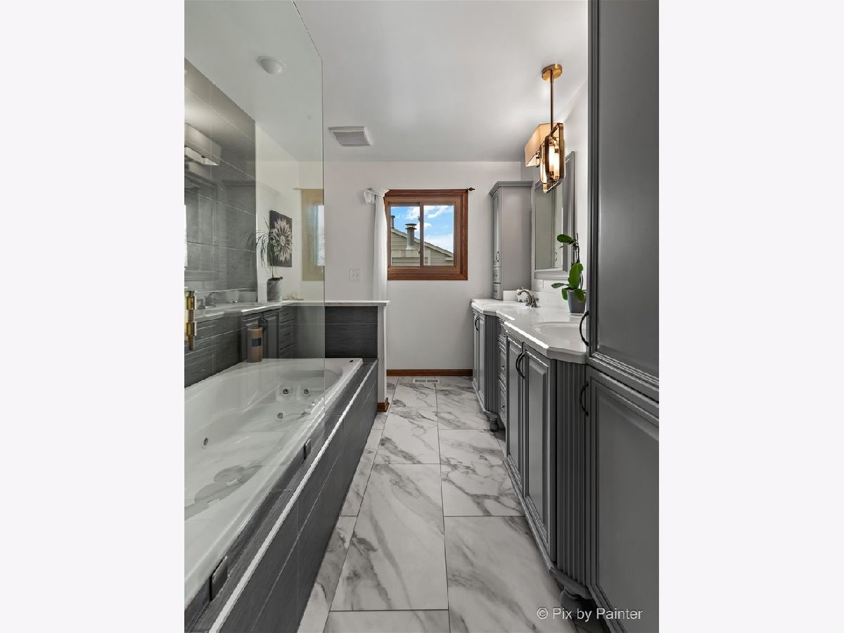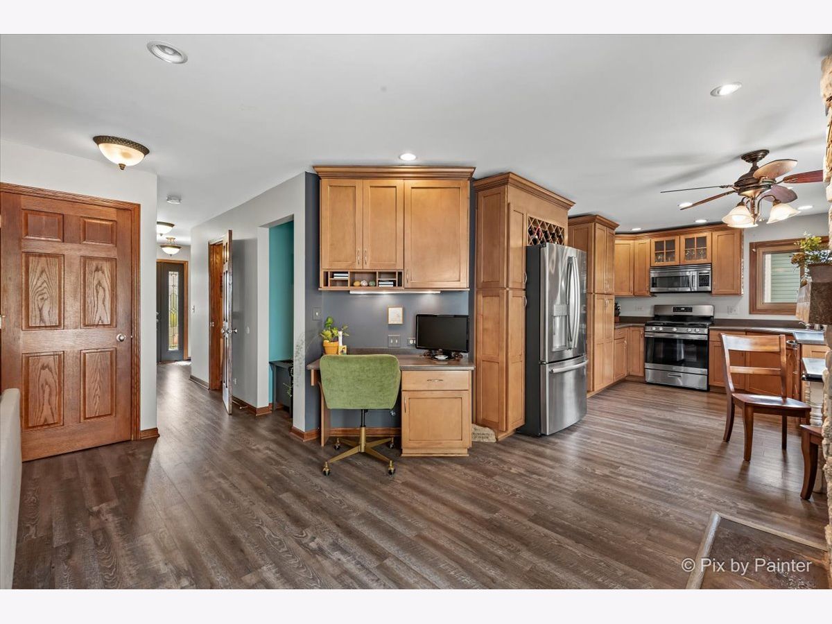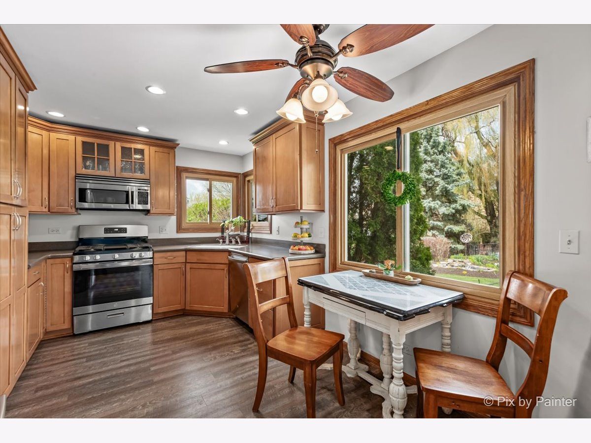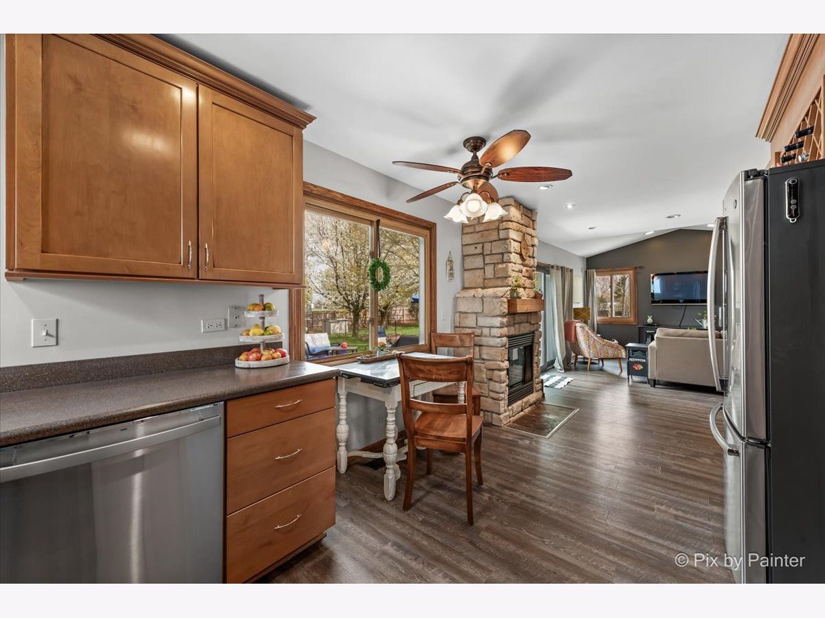 Welcome to your new dream home in the desirable neighborhood of Cimmaron! This Ashwood Model home is sure to impress and won't last long on the market. This lovely 3 bedroom, 2.1 bathroom home has been updated with all the bells and whistles you could want. First floor has new flooring installed in 2022, arched hallways, an updated kitchen with 42 inch cabinets, corian countertops, stainless steel appliances & a desk. The kitchen opens up to the family room with a vaulted ceiling & stone fireplace. There is a nice nook for coats, a small office or for 1st floor laundry. Upstairs features a primer suite with a freshly remodeled primary bath with a soaking tub, double vanity with Marble countertops. Two more generously sized bedrooms are upstairs along with another freshly remodeled hall bathroom. The lower level has more living space, along with a copper top bar and more storage. Updates include: Flooring (22), Master Bathroom (22), Furnace (18), AC (18), Windows (05), Hot Water Heater (22), Hall Bath (23) Dishwasher & Stove (23), Ejector Pit (22), 210 Amp Service (05). Fenced yard with a brick paver patio, flagstone fire pit, water feature and a pool round out the outdoor space. Convenient location close to the Metra, New Splash Pad, Walking Trails & Hoffman Dog Park.