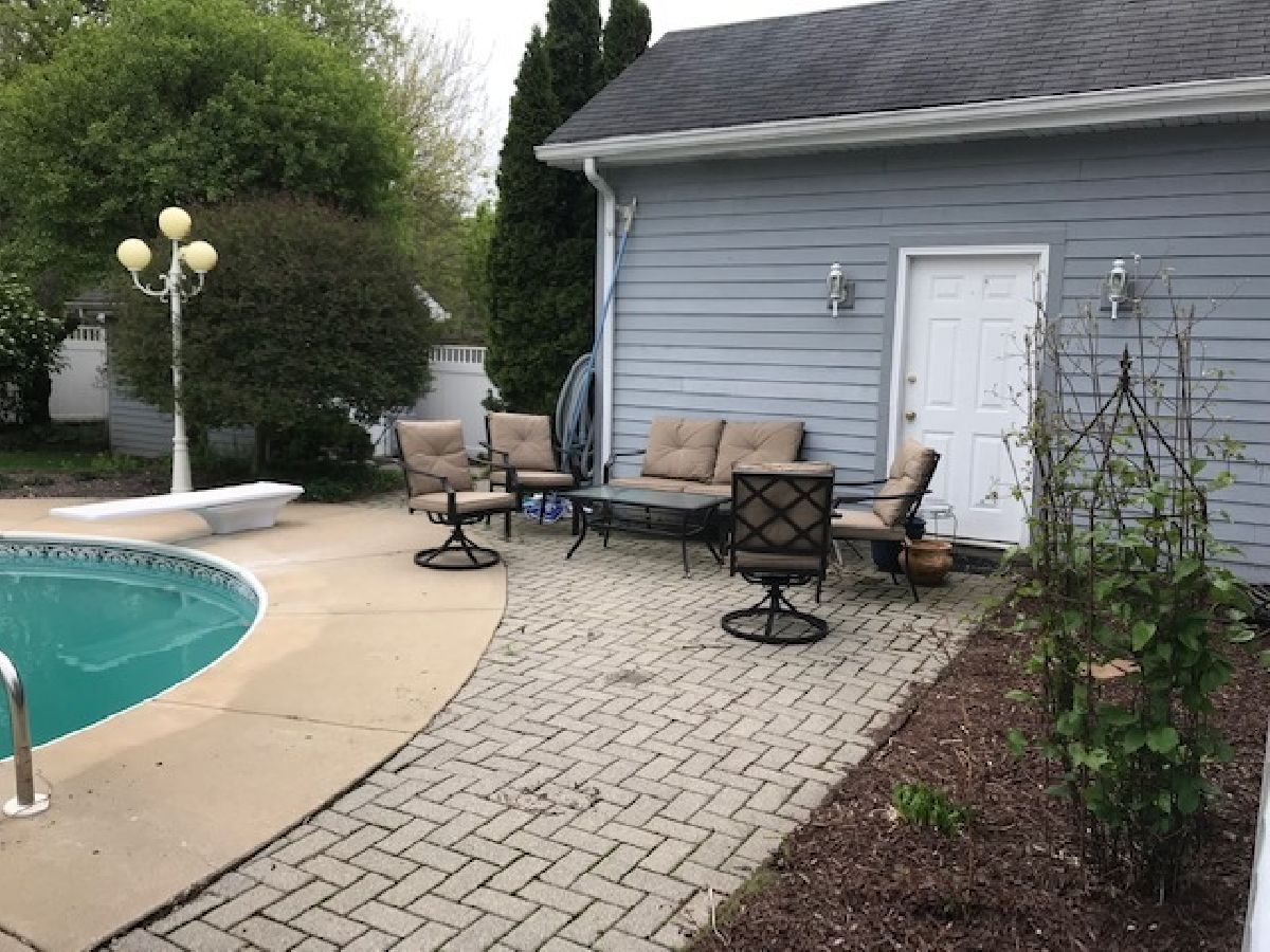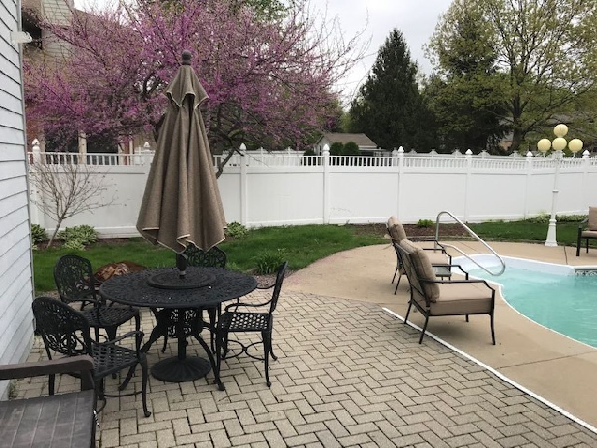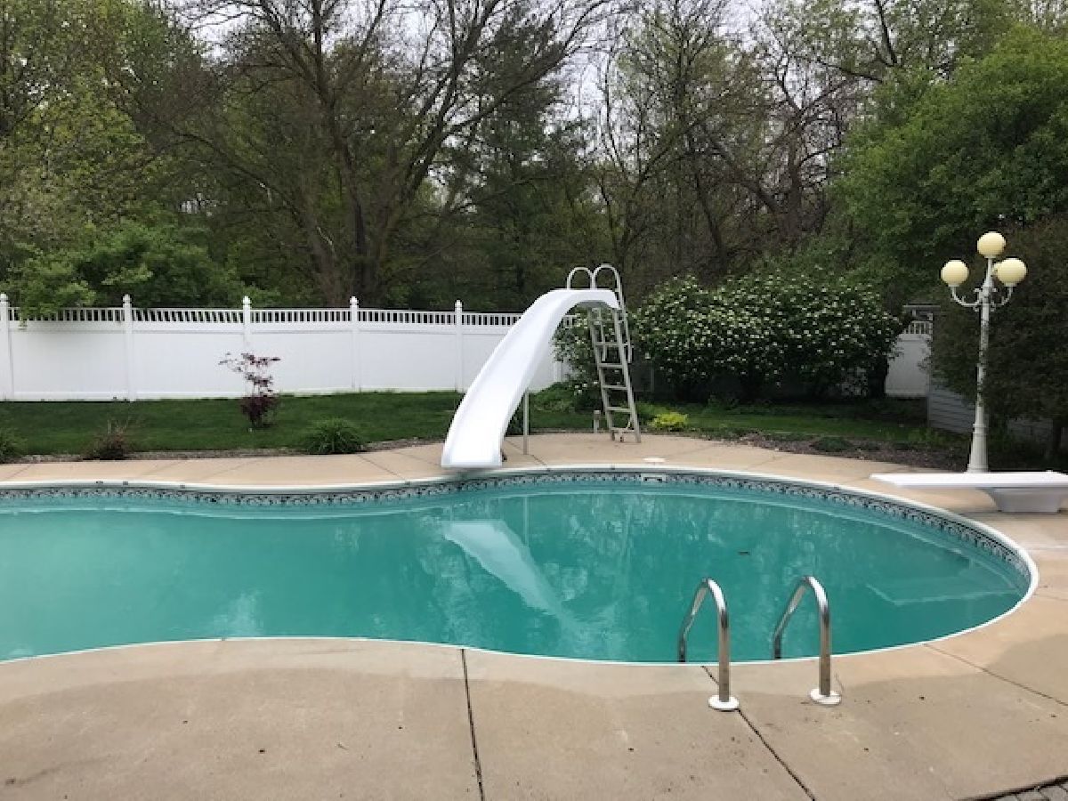 Wrap around front porch welcomes you to this large 2 story in immaculate condition. Great open floor plan, perfect for entertaining. 22x16 master suite with cathedral ceilings, master bath with tub and separate shower. Beautiful entry features open staircase and access to living room, dining room and kitchen. 24X12 kitchen offers plenty of windows overlooking backyard. Convenient second floor laundry. Backyard will take your breath away. Sparkling in ground pool with diving board and slide. Concrete and paver bricks surround pool and patio. Private fenced yard has access to 3rd car garage. Would make a great changing room, pool house. Full basement has plumbing for bath. 3 car, heated, tandem garage is perfect for workshop, pool house, activity room, home business or storage for extra vehicles. around Located at the end of block and surrounded by trees.