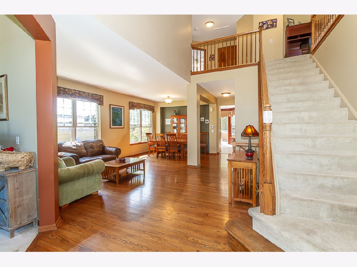 Moehling Farm Subdivision, Fieldcrest Model. 5 Bedrooms 3.5 bath, First level with Hardwood floors. Kitchen with abundant storage, 42" Maple Cabinets, Island, Stainless appliances & space for a table. Kitchen opens to the stunning family room with stone fireplace. Access from kitchen thru sliding doors to the large deck. 2nd Floor is carpeted with 4 Bedrooms w/ceiling fans and a Loft. Master suite includes separate shower, jacuzzi tub and private toilet closet. Full Finished basement with wood laminate flooring. Is perfect for In-law visits. Extra room can be used as a bedroom or workout room. Also, a wet bar, full bath, workshop with sink and abundant storage. Fully fenced yard opens to gorgeous prairie with mature trees. Pickle Ball courts and parks just steps away. Walking distance to Metra, elementary and middle schools.