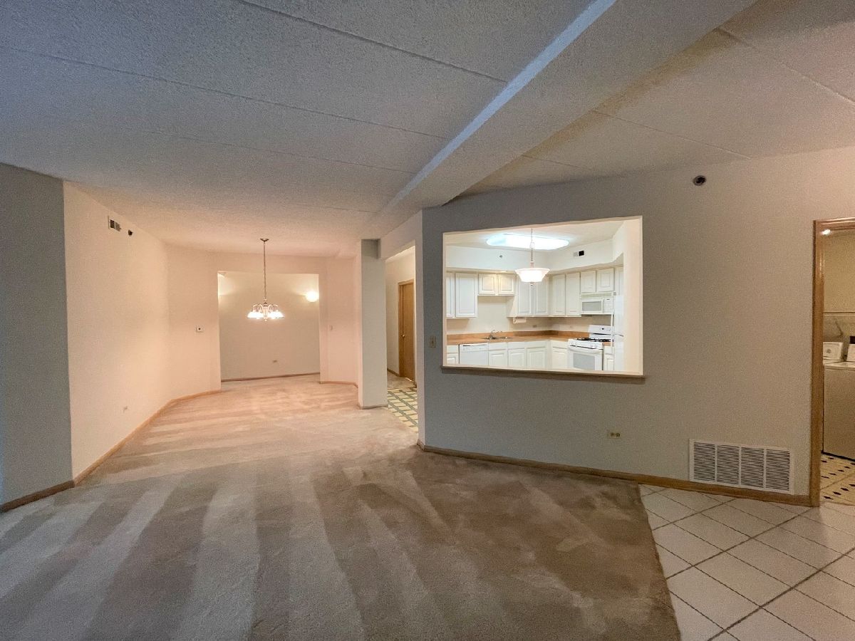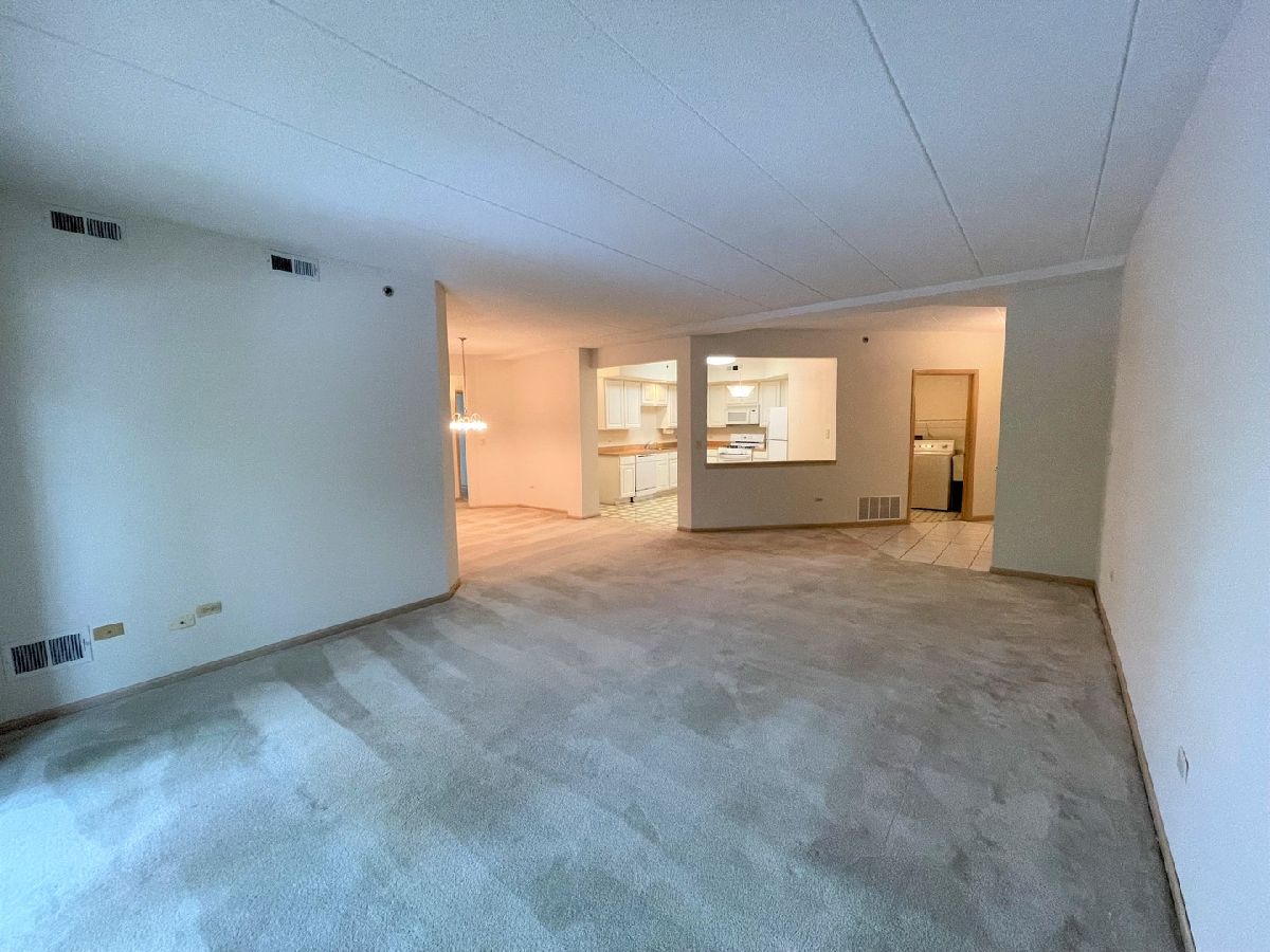 BEST PRICED 3 BEDROOM 2 BATH CONDOMINIUM WITH AN ELEVATOR IN ALL OF ORLAND PARK. UNIT IS SPACIOUS PLUS IT WAS JUST REFRESHED AND IS IN MOVE-IN CONDITION. THIS IS A ONE-OWNER END UNIT WITH 9' CEILINGS, EAT IN KITCHEN WITH WHITE CABINETS. IN UNIT LAUNDRY WITH FULL SIZE WASHER AND DRYER AND UTILITY SINK. AWESOME ENSUITE BEDROOM IS HUGE(23'X12'), WALK IN CLOSET, BAY WINDOW, TRAY CEILING, WHIRLPOOL TUB AND SEPARATE SHOWER. BALCONY OFF THE LIVING ROOM WITH VIEWS OF THE TREES. FIRE SPRINKLERED UNIT AND BUILDING. NEW FURNACE IN 2021. FLEXICORE CONSTRUCTION...THE BEST! ELEVATOR TO THE INDOOR HEATED GARAGE AND STORAGE CAGE. AWESOME LOCATION WITH ALL KINDS OF SHOPPING AND RESTAURANTS AND OTHER CONVENIENCES ALONG 159TH STREET. YOUR NEW CONDOMINIUM IS AWATING YOUR VISIT!