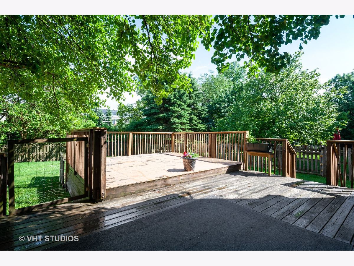 Nothing to do but move in and enjoy this lovely home in Ravinia Woods. Nestled into a yard with mature landscaping and a large multi level deck, you'll have plenty of living space both inside and out. Upon entry from the charming front porch, the living room features hardwood flooring, new window treatments, freshly painted, and a dramatic staircase leads to the upper level. The kitchen has been updated with stainless appliances, tile flooring, and designer inspired colors. Kitchen opens to the family room with fireplace. Upstairs you'll find 2 bedrooms in addition to the master suite with vaulted ceilings. Laundry is conveniently located upstairs! The lower level is finished, has a wet bar for entertaining, and plenty of storage options. This location is convenient to all that Gurnee has to offer including shopping and entertainment, restaurants and transportation.