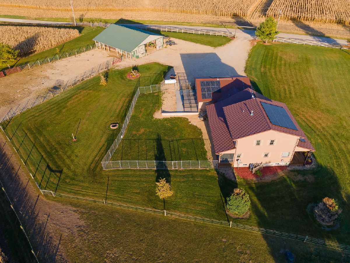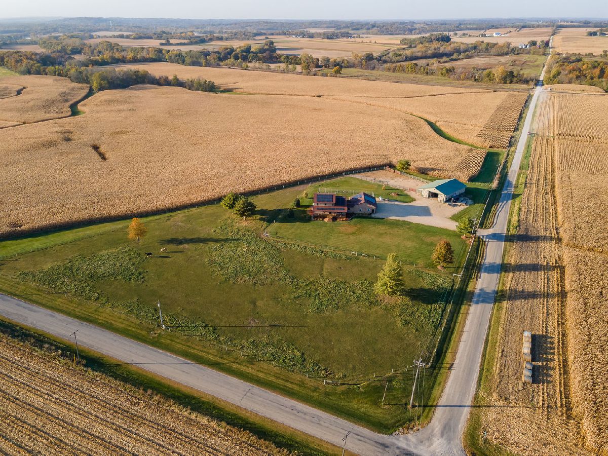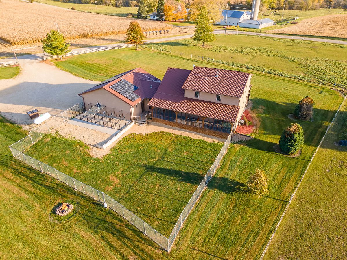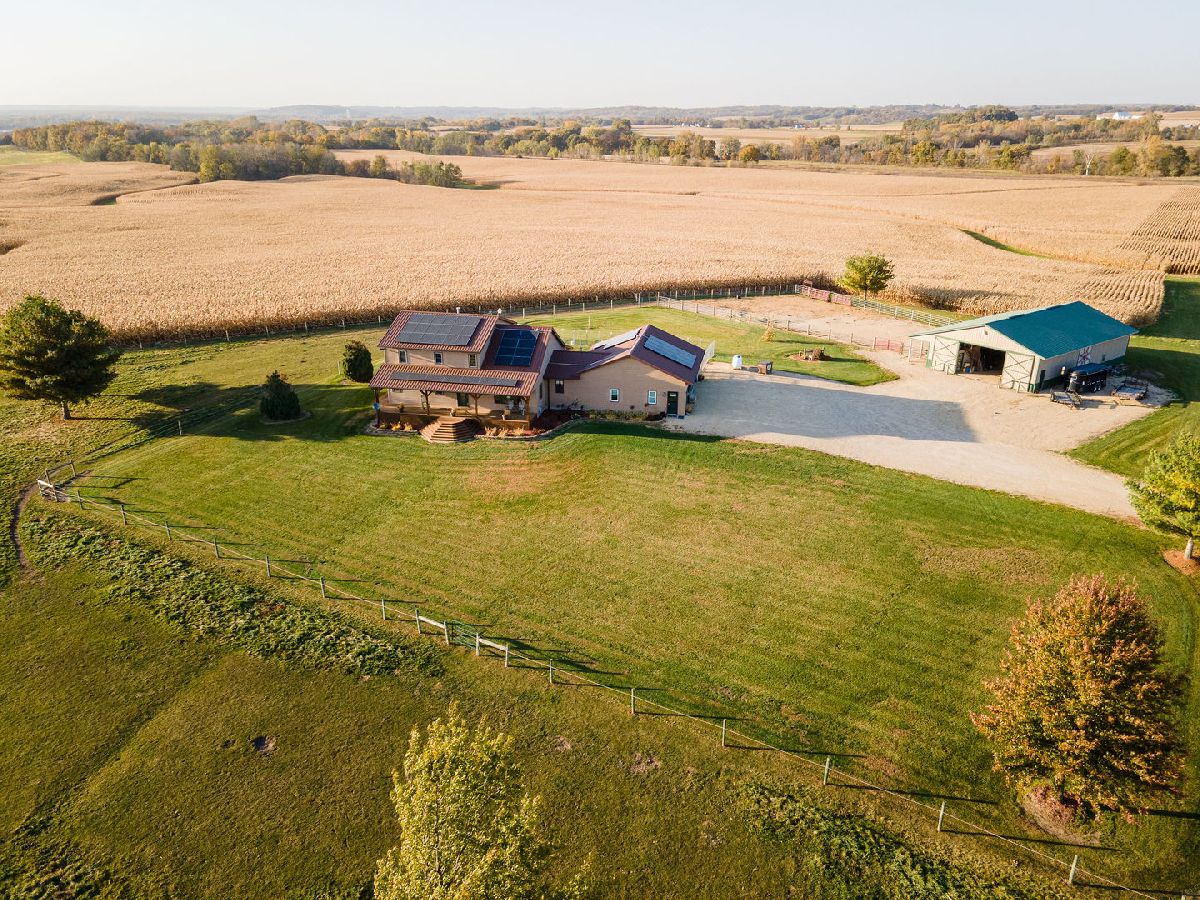 Hobby Farm Deluxe on 5.31 acres. Enjoy panoramic country views from the front or back full length porches this 3 bedroom3 bath custom home has. This is truly one of a kind property with so many features and updates to enjoy. Open concept living-dining room and kitchen area have vaulted ceilings with custom woodwork and a half bath. Kitchen has custom crafted hickory cabinets and walk-in pantry. Primary bedroom is on the main floor with 2 walk-in closets, slider to walkout screened back porch and private bath that has a double sink, whirlpool tub, and separate shower. 2nd floor has a lounge/rec area with built-in storage/tv stand and custom western mural wall along with 2 large bedrooms and a full bathroom that has a double sink vanity. The oversized 3 stall garage has radiant in-floor heating, multiple cabinets and counters for workshop space and storage, ventilation fan to outside, 6 inside kennels that each have outside private access and can be opened to the larger chain-link fenced yard. Garage has 2 exterior entry doors and 2 interior doors; one going to the basement and one to the main floor where the laundry room is conveniently located. Full partially finished basement has9ft ceilings, a family room, one large workshop/storage area and a second storage room with shelving. 40x60 Pole shed offers 2 insulated rooms, 2 box stalls, access to outside paddock, large sliding doors on both sides and multiple entry doors, loft area with stair access for easy access. 8' wide full length Lean-to off pole shed has an automatic waterer, large paddock that is great for an outdoor riding arena with continuous panel fencing. Most recent house updates include fresh paint throughout, most newer windows, metal roof in 2021. Leased solar panels keeps electric bill less than $200/month. Garage in-floor heat has it's own water heater and pressure tank.
