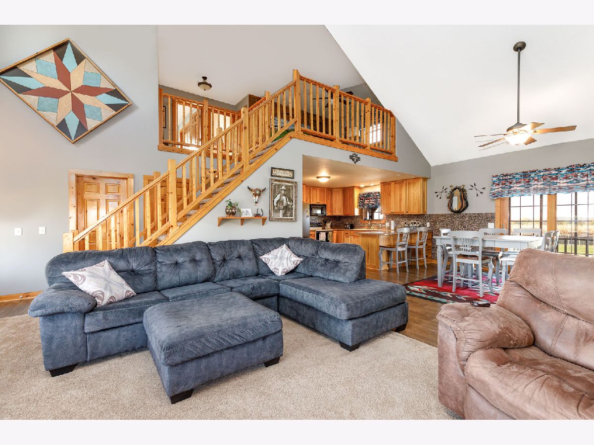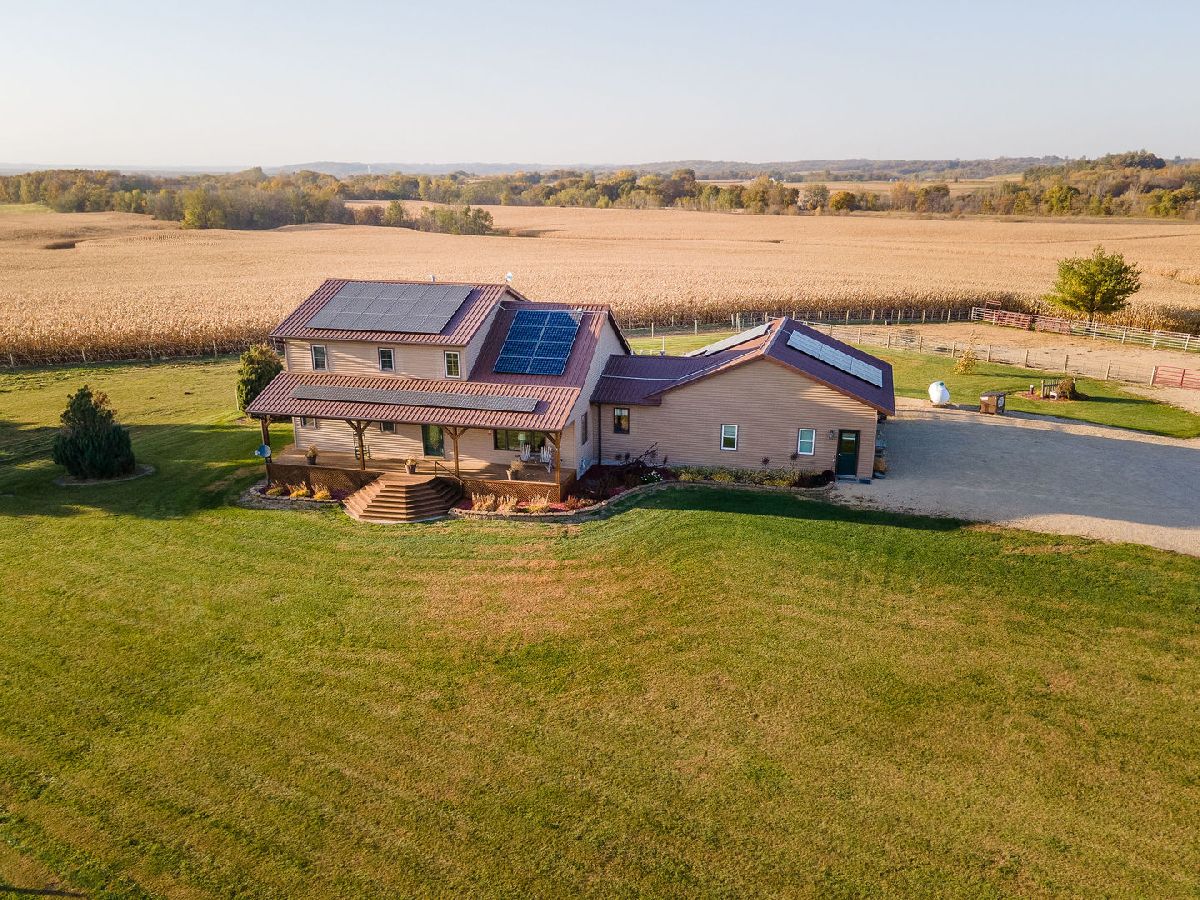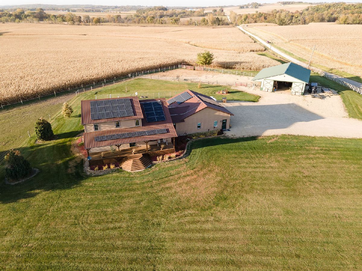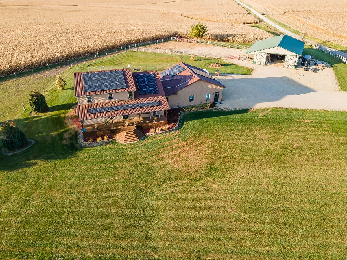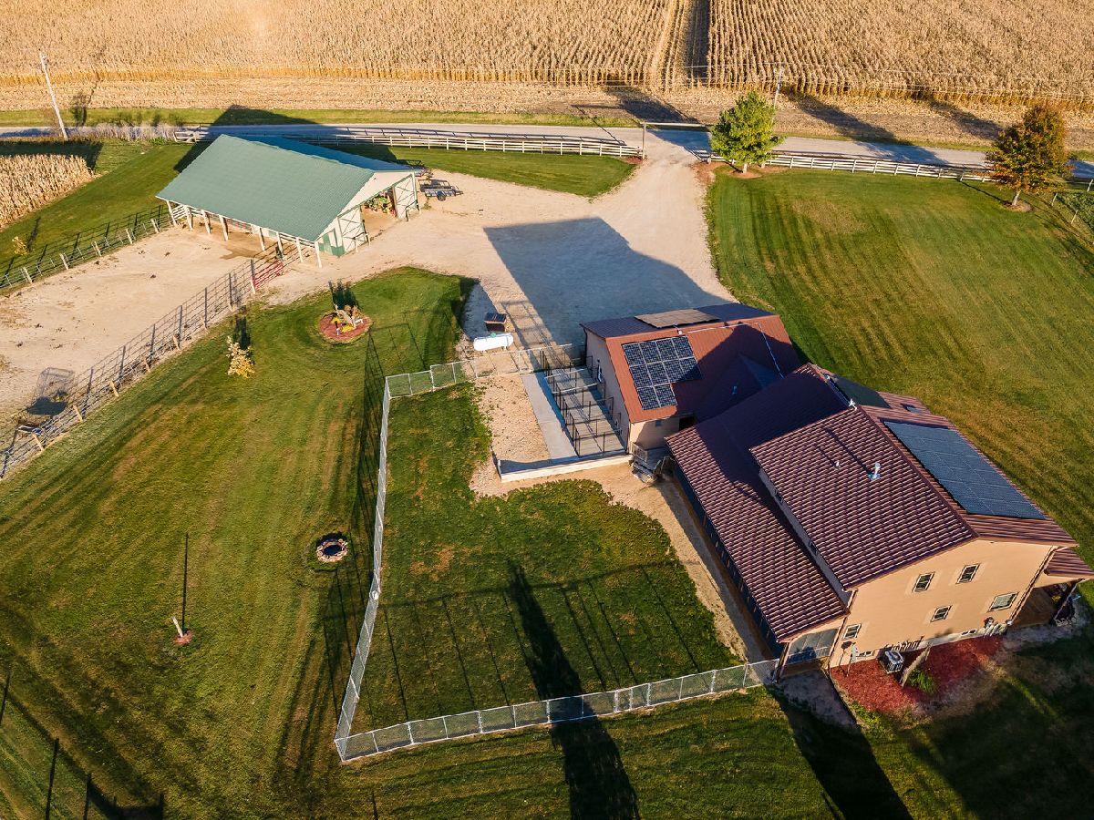 Hobby Farm Deluxe on 5.31 acres. Enjoy panoramic country views from the front or back full length porches this 3 bedroom3 bath custom home has. This is truly one of a kind property with so many features and updates to enjoy. Open concept living-dining room and kitchen area have vaulted ceilings with custom woodwork and a half bath. Kitchen has custom crafted hickory cabinets and walk-in pantry. Primary bedroom is on the main floor with 2 walk-in closets, slider to walkout screened back porch and private bath that has a double sink, whirlpool tub, and separate shower. 2nd floor has a lounge/rec area with built-in storage/tv stand and custom western mural wall along with 2 large bedrooms and a full bathroom that has a double sink vanity. The oversized 3 stall garage has radiant in-floor heating, multiple cabinets and counters for workshop space and storage, ventilation fan to outside, 6 inside kennels that each have outside private access and can be opened to the larger chain-link fenced yard. Garage has 2 exterior entry doors and 2 interior doors; one going to the basement and one to the main floor where the laundry room is conveniently located. Full partially finished basement has9ft ceilings, a family room, one large workshop/storage area and a second storage room with shelving. 40x60 Pole shed offers 2 insulated rooms, 2 box stalls, access to outside paddock, large sliding doors on both sides and multiple entry doors, loft area with stair access for easy access. 8' wide full length Lean-to off pole shed has an automatic waterer, large paddock that is great for an outdoor riding arena with continuous panel fencing. Most recent house updates include fresh paint throughout, most newer windows, metal roof in 2021. Leased solar panels keeps electric bill less than $200/month. Garage in-floor heat has it's own water heater and pressure tank.