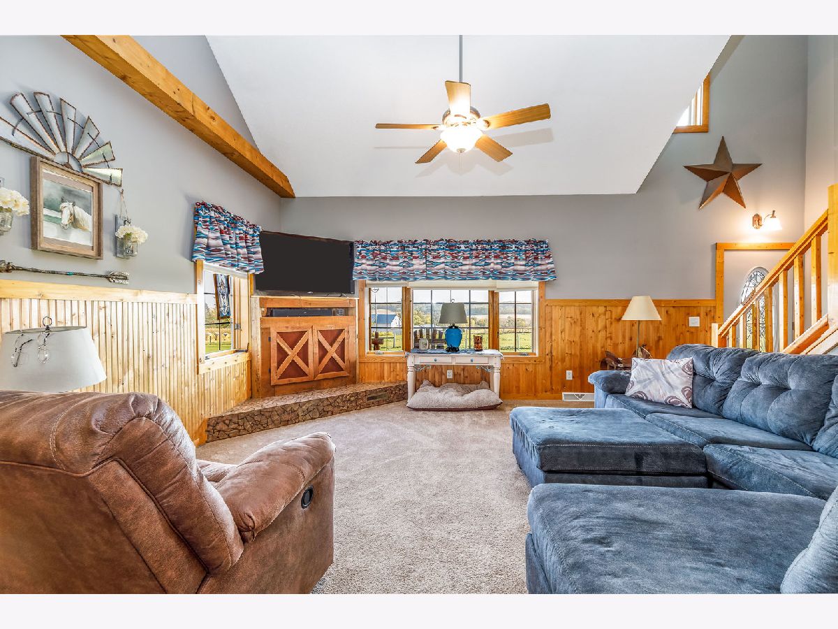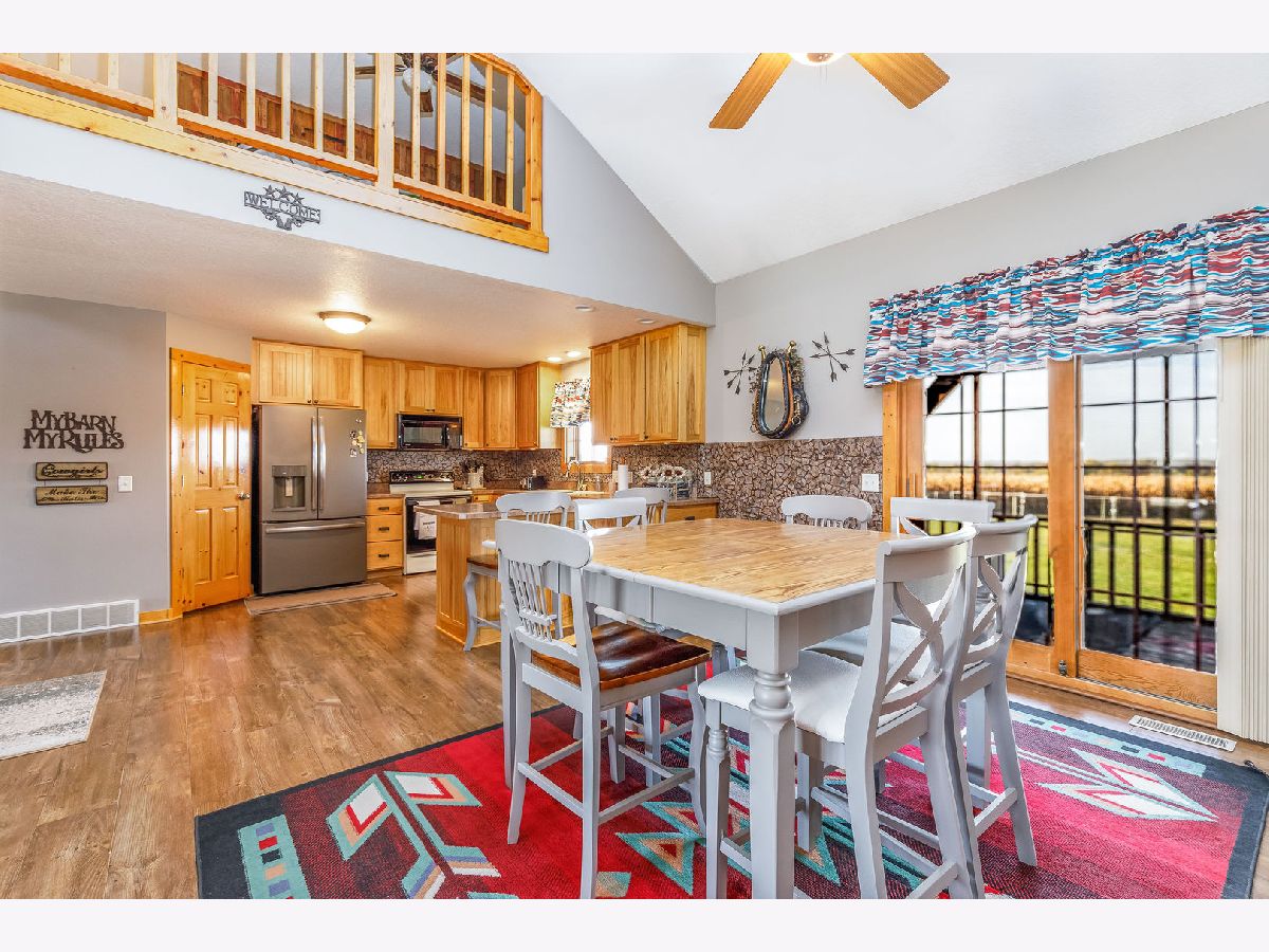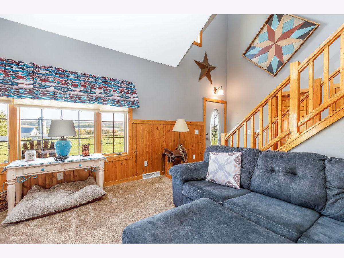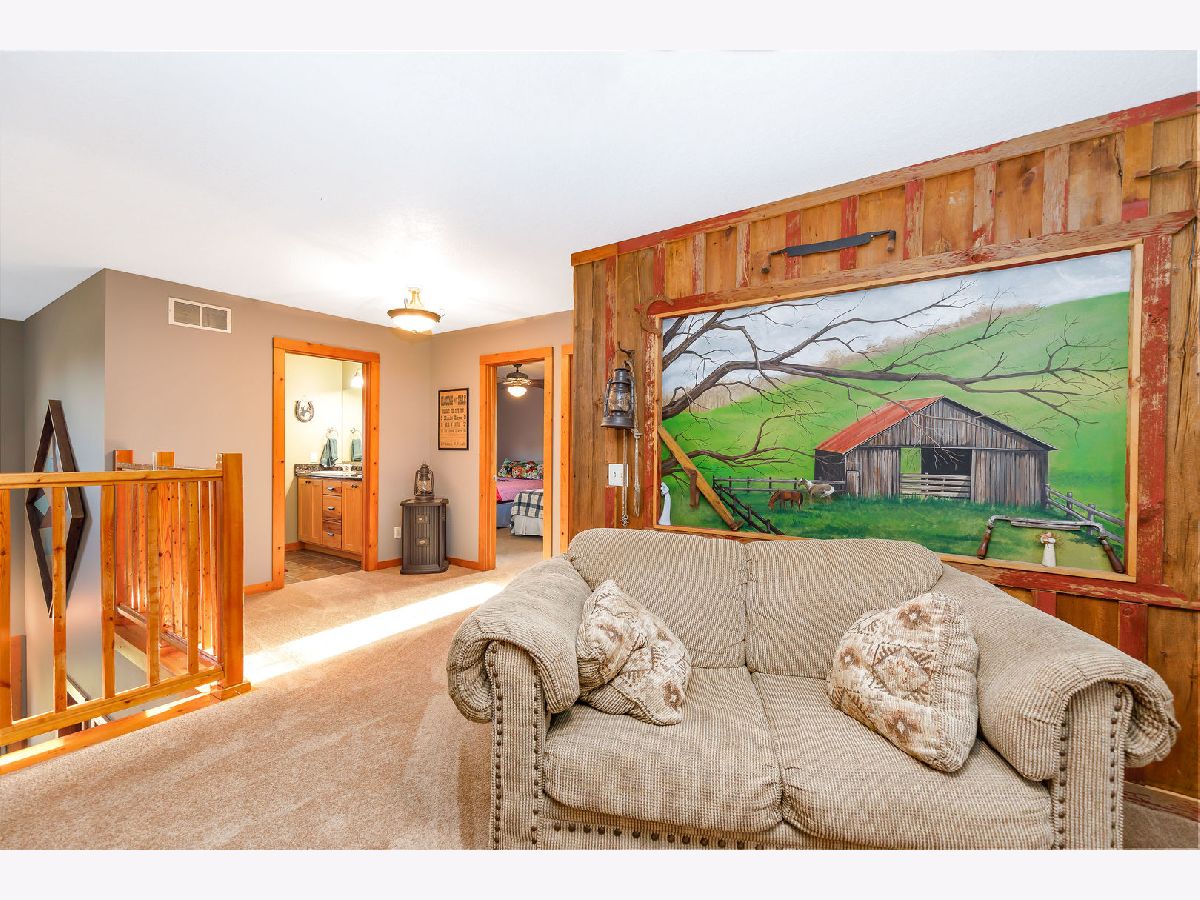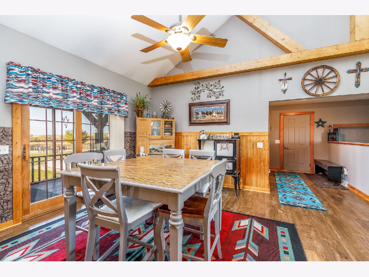 Hobby Farm Deluxe on 5.31 acres. Enjoy panoramic country views from the front or back full length porches this 3 bedroom3 bath custom home has. This is truly one of a kind property with so many features and updates to enjoy. Open concept living-dining room and kitchen area have vaulted ceilings with custom woodwork and a half bath. Kitchen has custom crafted hickory cabinets and walk-in pantry. Primary bedroom is on the main floor with 2 walk-in closets, slider to walkout screened back porch and private bath that has a double sink, whirlpool tub, and separate shower. 2nd floor has a lounge/rec area with built-in storage/tv stand and custom western mural wall along with 2 large bedrooms and a full bathroom that has a double sink vanity. The oversized 3 stall garage has radiant in-floor heating, multiple cabinets and counters for workshop space and storage, ventilation fan to outside, 6 inside kennels that each have outside private access and can be opened to the larger chain-link fenced yard. Garage has 2 exterior entry doors and 2 interior doors; one going to the basement and one to the main floor where the laundry room is conveniently located. Full partially finished basement has9ft ceilings, a family room, one large workshop/storage area and a second storage room with shelving. 40x60 Pole shed offers 2 insulated rooms, 2 box stalls, access to outside paddock, large sliding doors on both sides and multiple entry doors, loft area with stair access for easy access. 8' wide full length Lean-to off pole shed has an automatic waterer, large paddock that is great for an outdoor riding arena with continuous panel fencing. Most recent house updates include fresh paint throughout, most newer windows, metal roof in 2021. Leased solar panels keeps electric bill less than $200/month. Garage in-floor heat has it's own water heater and pressure tank.