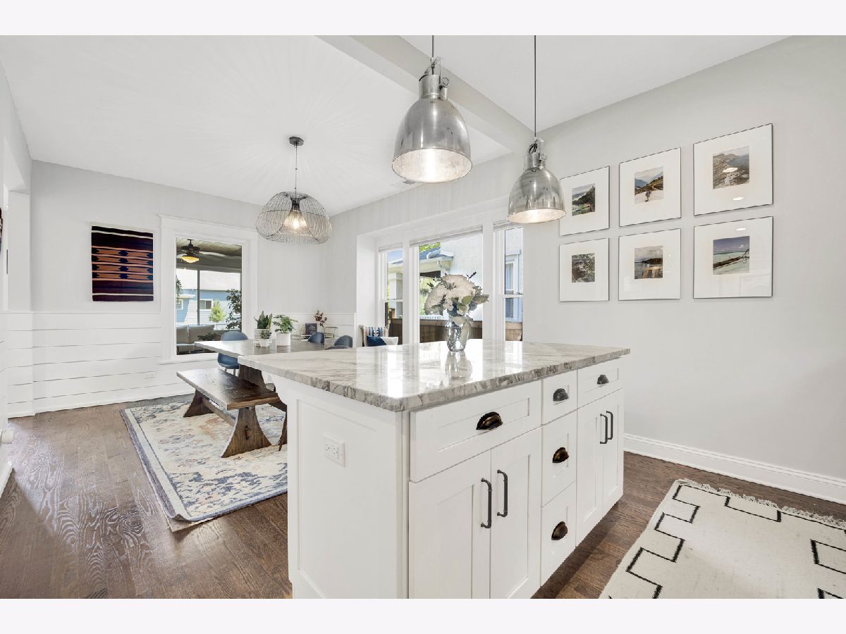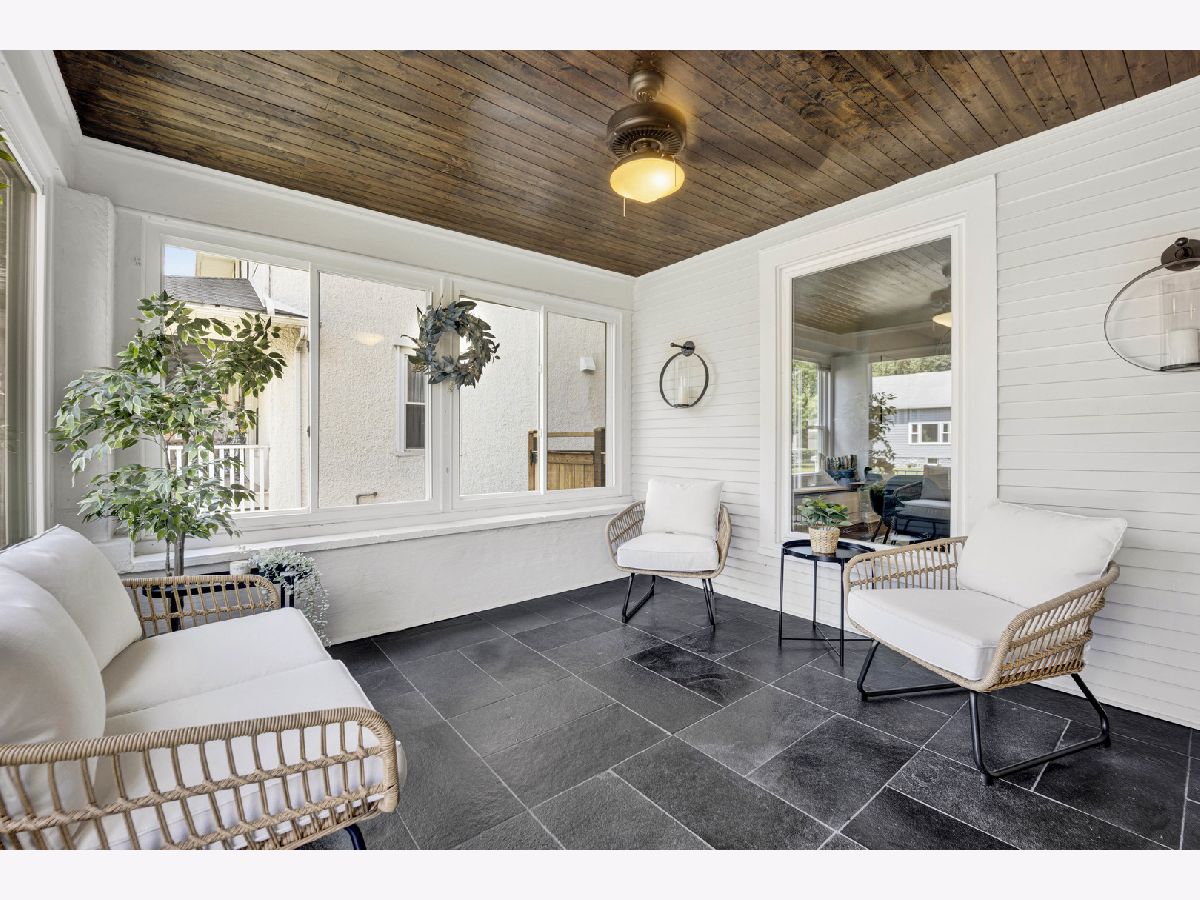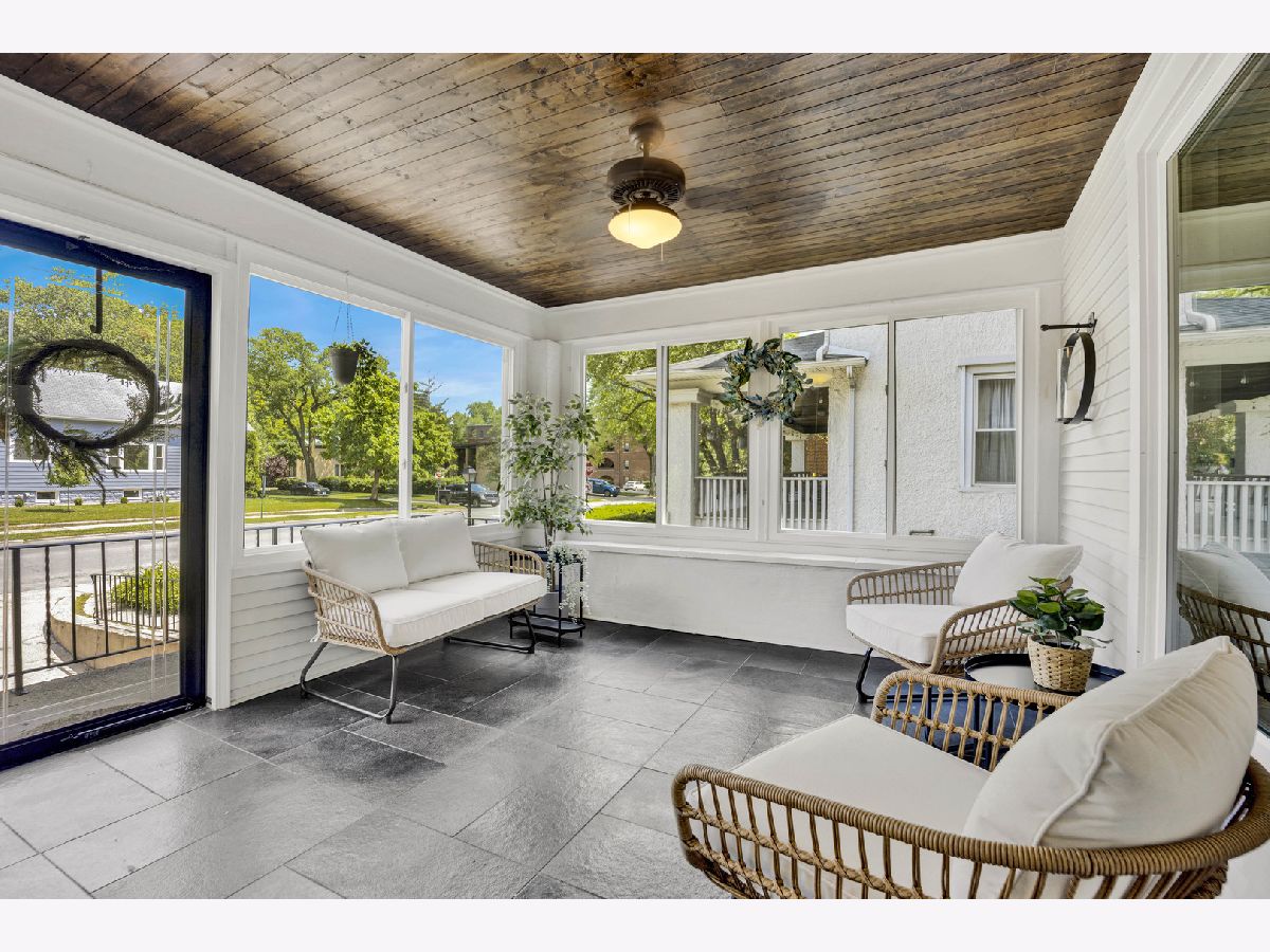 This lovely modern yet timeless home boasts an ideal location, with the town, train station, and all local schools within a half-mile radius. Renovated in 2016, every detail was meticulously crafted to ensure longevity. Upon entering, a distinctive three-season room with sleek black limestone floors beckons you to savor the beauty of each season. Natural light fills the home, showcasing the spacious living and dining rooms through large picture windows. The thoughtful layout design allows for seamless entertaining and relaxation. The kitchen features quartzite countertops, an island, and ample cabinet space. The first floor hosts two well-appointed bedrooms with great closet space and a full bathroom. Upstairs, discover a third bedroom and a generous primary suite with a spa-like master bath including a double walk-in shower, dual vanity, two large closets, and plenty of storage. A recent addition is the finished basement, offering extra living space with room for movie nights or watching the game, plus an office or guest bedroom. There is a sizable storage area and direct access to the attached garage. Outside, the backyard oasis features a deck for grilling, a spacious lawn, a paver patio, and a bonfire area. This house offers the best of both worlds - proximity to town and all Riverside amenities, as well as a large yard and a beautifully designed living space. Ready for you to move in and make lasting memories, this home is located in the historic Village of Riverside, just 11 miles from Chicago, recognized as one of the "Ten Towns That Changed America".