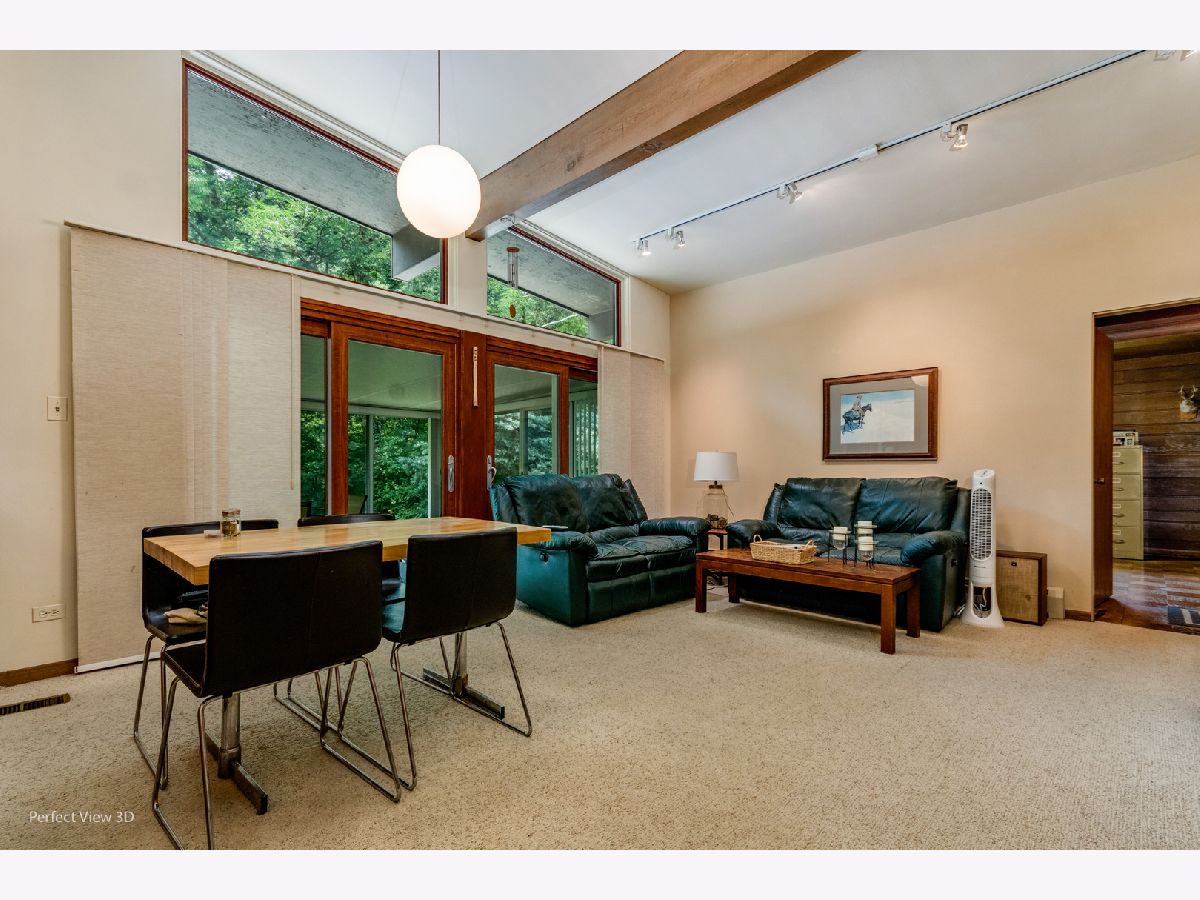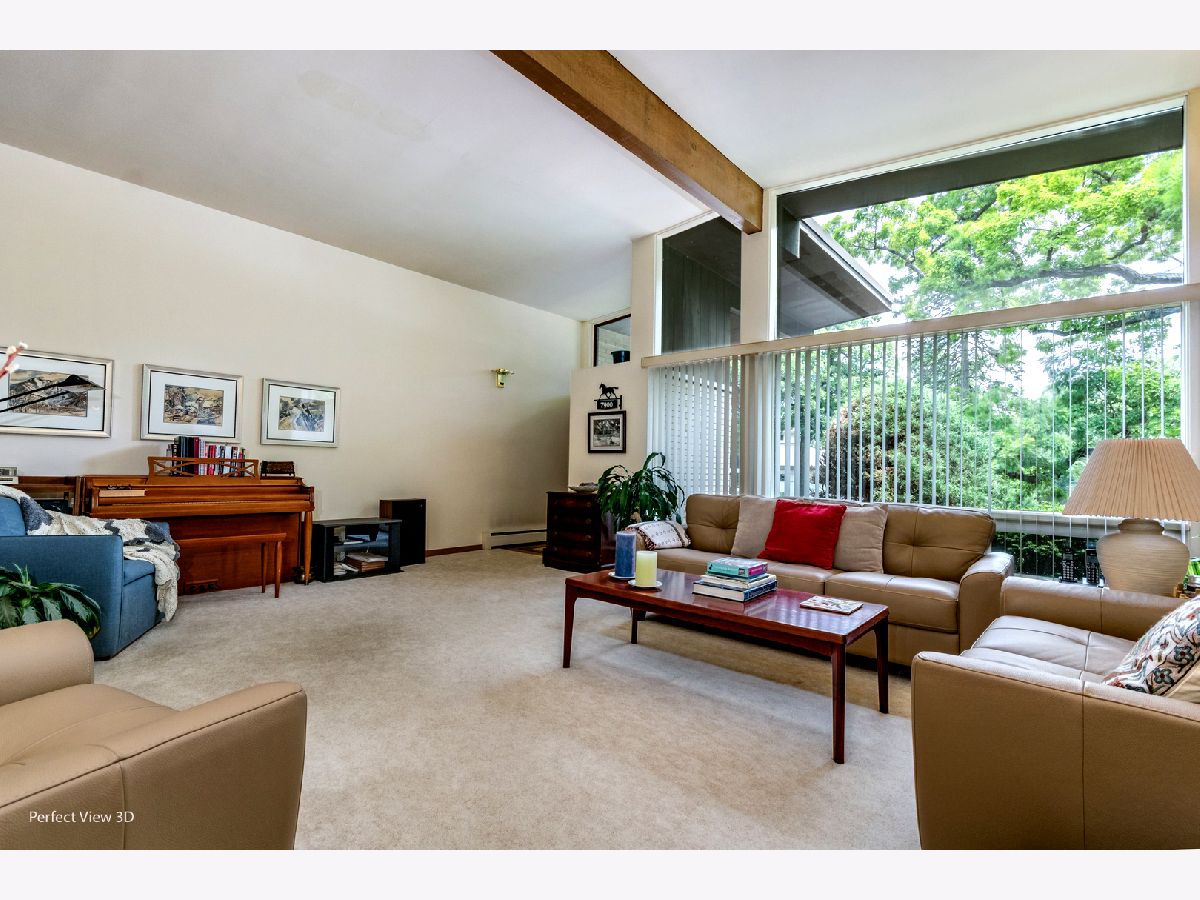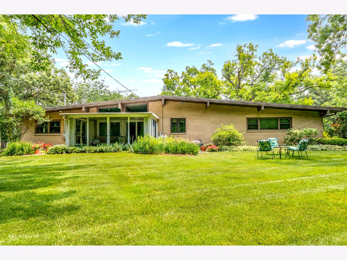 Well cared for Mid Century Modern ranch with large master bedroom. Enjoy expansive view of the yard from the 13x16 Three Season Room surrounded by attractive landscaping with a large variety of perennial plants. There are 2 bedrooms on one end of the home and a 3rd bedroom or office with private bathroom on the other side. There are wood burning fire places in the Living room and Family room for a cozy atmosphere on cool nights. A few special things: Heated bathroom floor in bathroom off 3rd bedroom/office, Gutter guards, hardwood flooring under carpet in bedroom wing, dining room and living room. Custom cabinet on dining room wall does not stay with the house. Real Estate tax with only home owner exemption + $6,004.