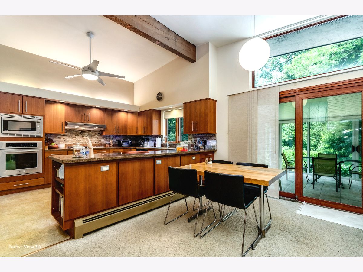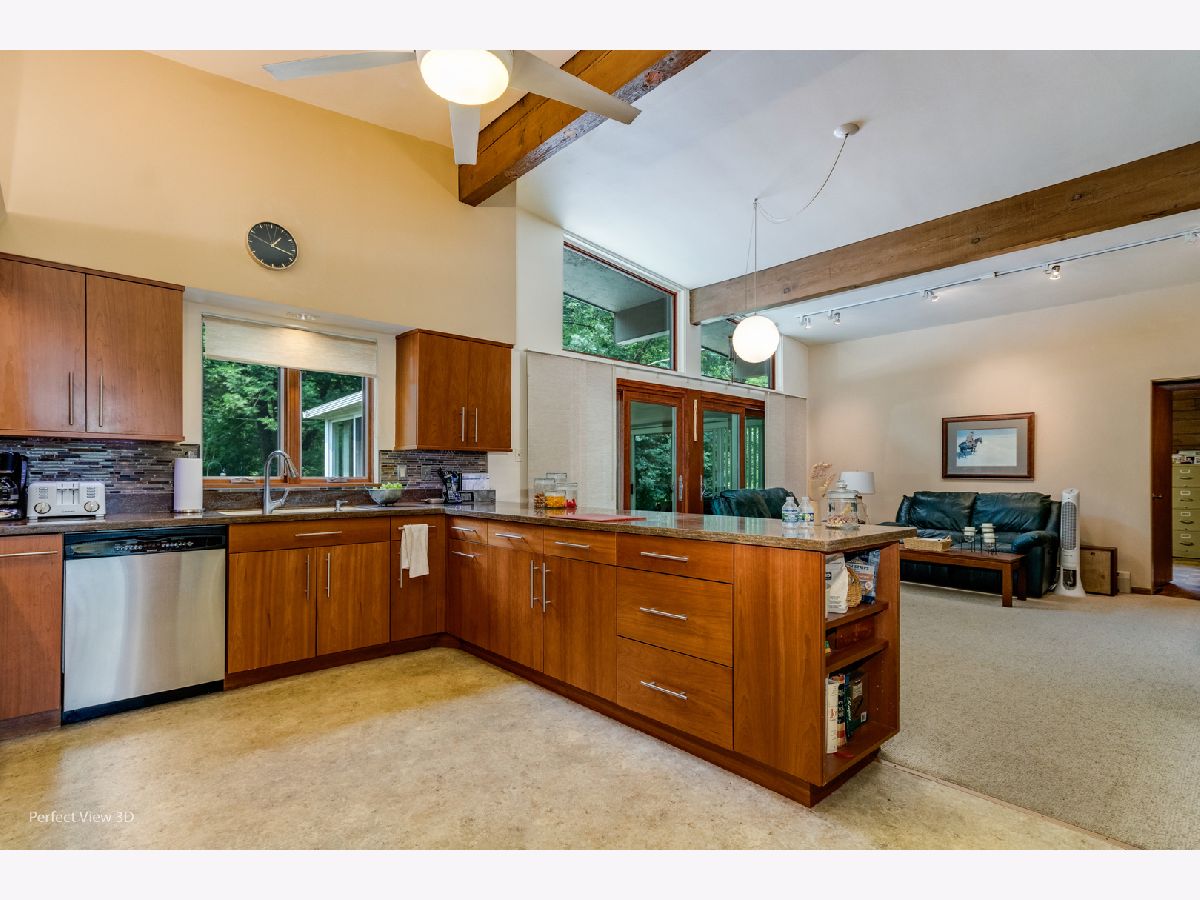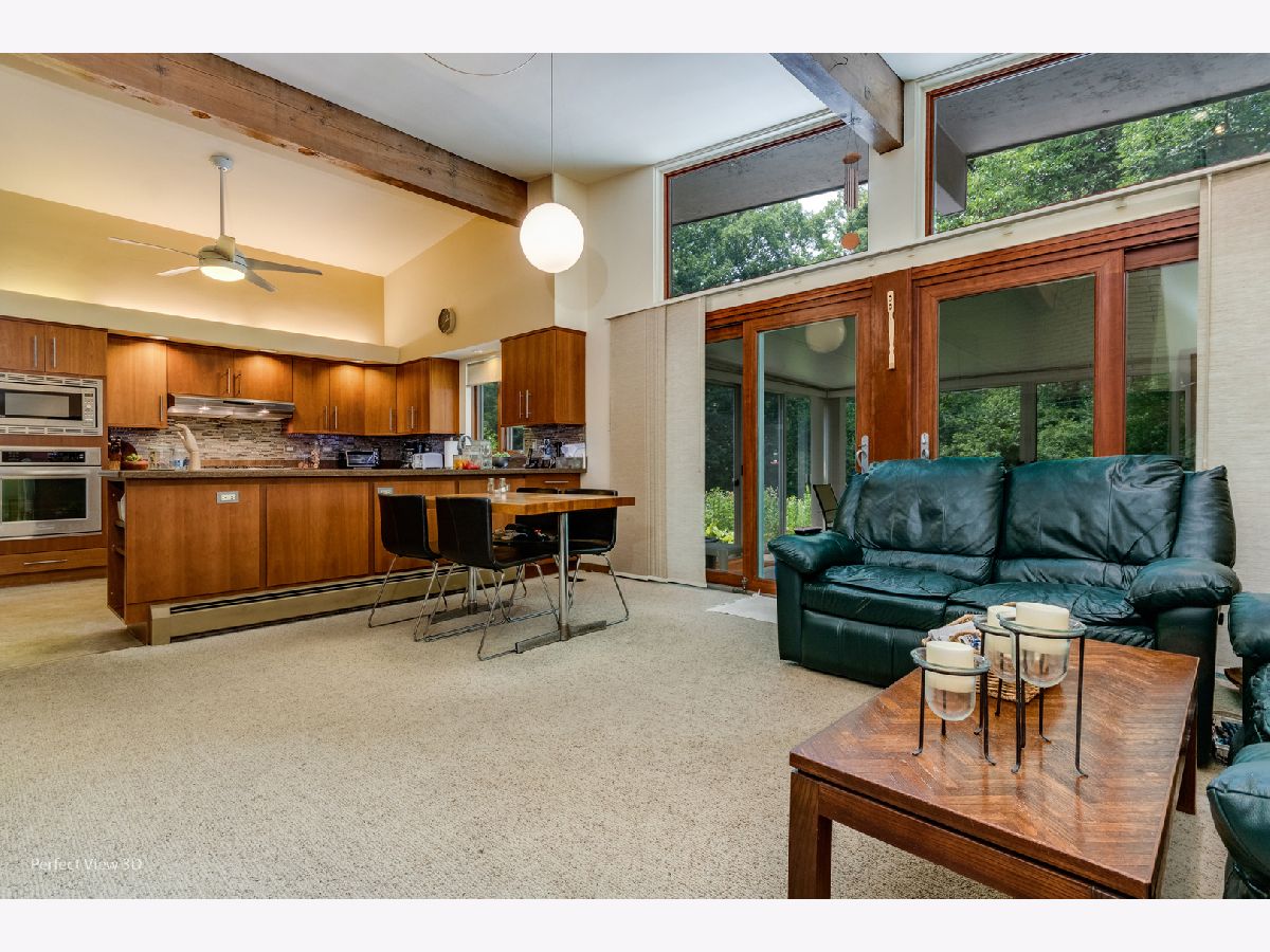 Well cared for Mid Century Modern ranch with large master bedroom. Enjoy expansive view of the yard from the 13x16 Three Season Room surrounded by attractive landscaping with a large variety of perennial plants. There are 2 bedrooms on one end of the home and a 3rd bedroom or office with private bathroom on the other side. There are wood burning fire places in the Living room and Family room for a cozy atmosphere on cool nights. A few special things: Heated bathroom floor in bathroom off 3rd bedroom/office, Gutter guards, hardwood flooring under carpet in bedroom wing, dining room and living room. Custom cabinet on dining room wall does not stay with the house. Real Estate tax with only home owner exemption + $6,004.