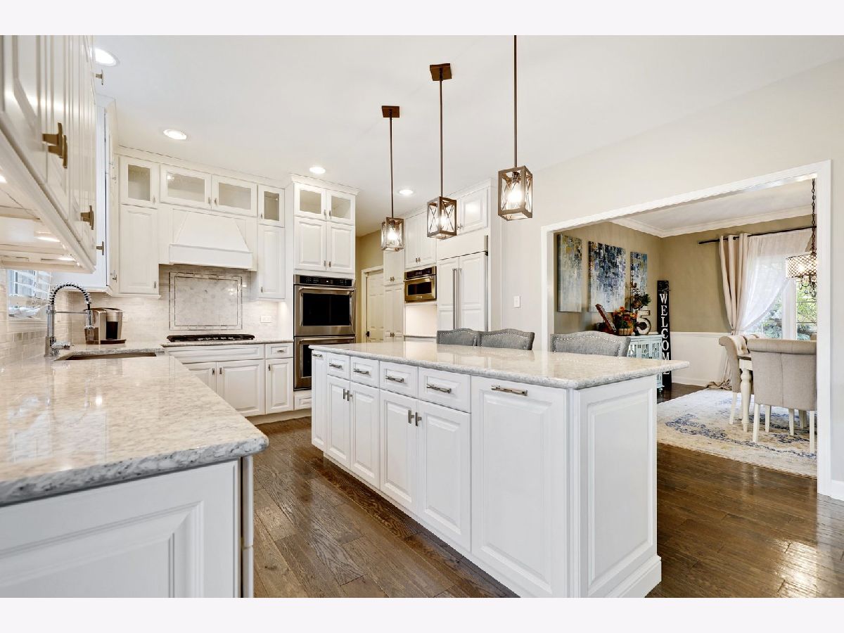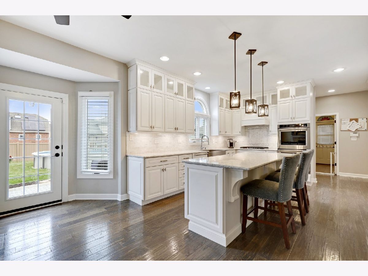 This is it! Don't miss this absolutely stunning brick Georgian in the heart of Orland Park! The inviting entry leads into the dramatic 2-story foyer with gorgeous hardwoods and newly remodeled staircase. The well appointed floor plan features both formal living and dining rooms, perfect for hosting family and friends. Your brand new dream kitchen awaits - custom white cabinetry, quartz counters, marble backsplash, oversized island, smart lighting, stainless steel appliances and spacious dinette area. Gather in the inviting family room, anchored by a timeless brick fireplace and chic wet bar with high-end beverage fridge. An updated powder room and huge laundry/utility room complete the main level. Retreat at day's end to the amazing owner's suite with double walk-in closets and huge ensuite bath with skylight. The second level also offers 3 additional bedrooms and a full hall bath. Outside, relax on the beautiful stamped concrete patio or take a dip in the crystal blue pool. Enjoy the private and fully fenced yard with sprinkler system. Windows 2020, roof 2018, AC 2016, furnace 2016, water heater 2016! Great location, close everything Orland has to offer. Come see today!