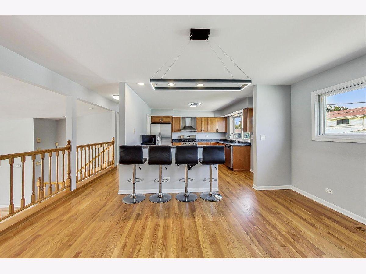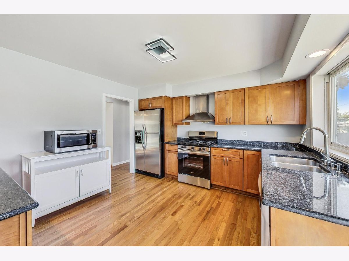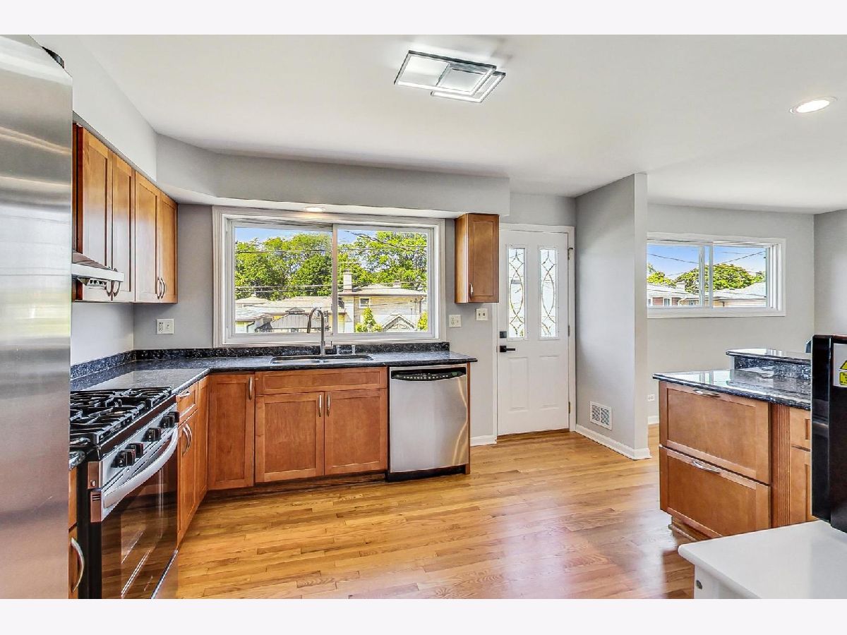 Welcome to this beautifully renovated 4-bedroom, 3-bathroom single-family home situated in sought-after Morton Grove. As you enter, you'll be greeted by soaring vaulted ceilings in the foyer and living room, creating an open and inviting atmosphere. Large oversized newer windows throughout the home flood every room with natural light, enhancing the spacious feel. The updated kitchen featuring maple cabinets, granite countertops, and a versatile peninsula that includes a small bar sink and a breakfast bar, perfect for casual dining. Stainless steel appliances, including a brand-new oven and microwave, make cooking a pleasure, while the adjacent dining room is ideal for large family gatherings and entertaining. Move-in ready, this home boasts significant updates, including a new roof in 2023 and both a new sump pump and backup sump pump in 2024 for peace of mind. The water heater was updated in 2020. The stunning refinished hardwood floors add warmth and elegance, complementing the neutral fresh paint on every wall, ceiling, doors, and trim. New light fixtures and door hardware, both inside and out, provide a modern touch. The oversized bedrooms offer ample space and large closets, with the primary suite featuring an en-suite bathroom, large windows, and a generous walk-in closet. The fully finished walkout lower level includes a bedroom and full bathroom making it perfect for guests or extended family. Giant family room with double doors bring in tons of natural light with direct access to the large backyard. A mudroom off the attached 2-car garage is equipped with a newer stackable washer and dryer, adding convenience to your daily routine. Outside, you'll find new front landscaping, a brick paver driveway with steps, and a large backyard with a patio. The space is mostly fenced for privacy and includes an outdoor attached gas grill, perfect for summer barbecues. The freshly painted attached garage completes this home's immaculate appearance. *20x17 crawl space with high ceilings for easy access and tons of storage. Ideally located near shopping expressways, restaurants, and all the amenities you desire, this home combines modern upgrades with classic charm, making it the perfect setting for your family. Don't miss this opportunity to make it yours. Schedule TODAY!!!