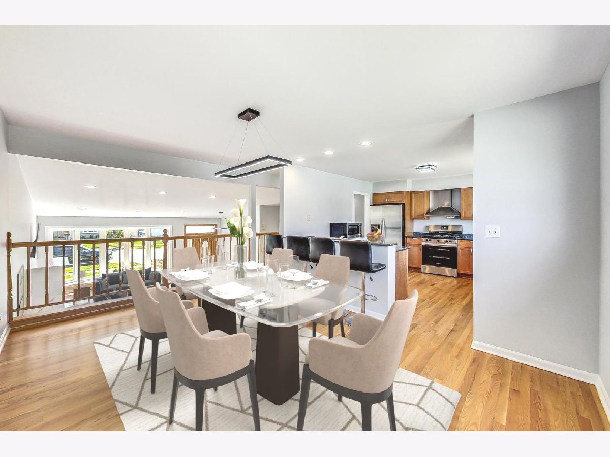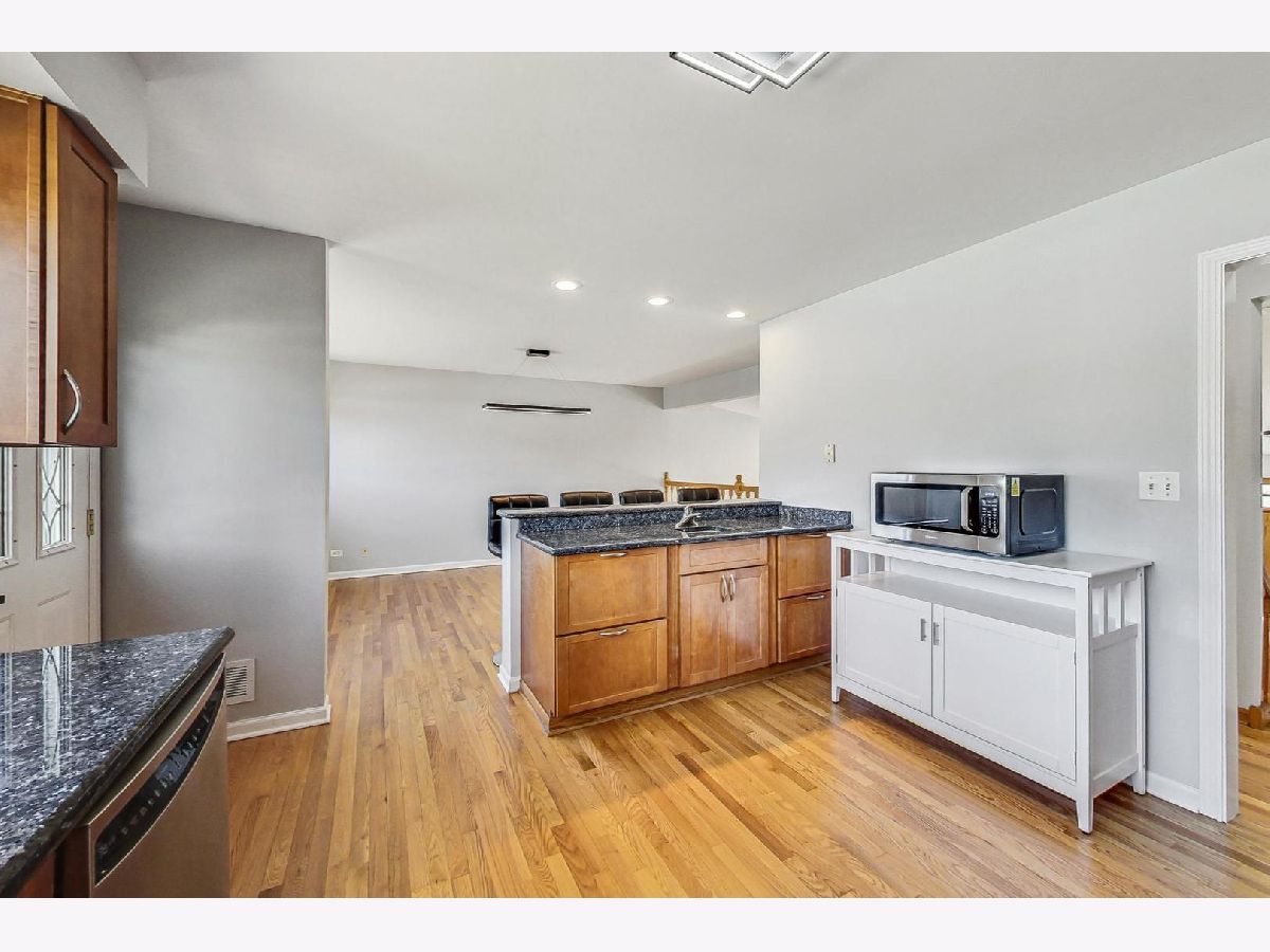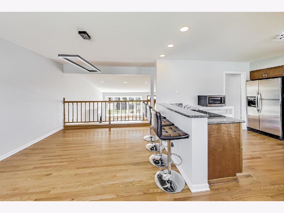 Welcome to this beautifully renovated 4-bedroom, 3-bathroom single-family home situated in sought-after Morton Grove. As you enter, you'll be greeted by soaring vaulted ceilings in the foyer and living room, creating an open and inviting atmosphere. Large oversized newer windows throughout the home flood every room with natural light, enhancing the spacious feel. The updated kitchen featuring maple cabinets, granite countertops, and a versatile peninsula that includes a small bar sink and a breakfast bar, perfect for casual dining. Stainless steel appliances, including a brand-new oven and microwave, make cooking a pleasure, while the adjacent dining room is ideal for large family gatherings and entertaining. Move-in ready, this home boasts significant updates, including a new roof in 2023 and both a new sump pump and backup sump pump in 2024 for peace of mind. The water heater was updated in 2020. The stunning refinished hardwood floors add warmth and elegance, complementing the neutral fresh paint on every wall, ceiling, doors, and trim. New light fixtures and door hardware, both inside and out, provide a modern touch. The oversized bedrooms offer ample space and large closets, with the primary suite featuring an en-suite bathroom, large windows, and a generous walk-in closet. The fully finished walkout lower level includes a bedroom and full bathroom making it perfect for guests or extended family. Giant family room with double doors bring in tons of natural light with direct access to the large backyard. A mudroom off the attached 2-car garage is equipped with a newer stackable washer and dryer, adding convenience to your daily routine. Outside, you'll find new front landscaping, a brick paver driveway with steps, and a large backyard with a patio. The space is mostly fenced for privacy and includes an outdoor attached gas grill, perfect for summer barbecues. The freshly painted attached garage completes this home's immaculate appearance. *20x17 crawl space with high ceilings for easy access and tons of storage. Ideally located near shopping expressways, restaurants, and all the amenities you desire, this home combines modern upgrades with classic charm, making it the perfect setting for your family. Don't miss this opportunity to make it yours. Schedule TODAY!!!