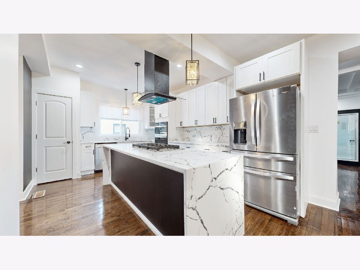 Welcome to this beautifully remodeled home located in the vibrant South Chicago neighborhood. This spacious 5-bedroom, 3-bathroom residence offers the perfect blend of modern design and classic charm, making it ideal for families and those who love to entertain. As you enter, you'll be greeted by a bright, open-concept living area that exudes warmth and comfort. The chef-inspired kitchen features sleek white and black quartz countertops, complemented by stainless steel appliances and ample cabinetry, perfect for preparing meals and hosting guests. Whether you're cooking a family dinner or enjoying casual meals, this combined kitchen and dining area is a true centerpiece. The second floor includes two generously-sized bedrooms and one full bathroom thoughtfully designed with contemporary fixtures and finishes. The master suite is a tranquil retreat with plenty of closet space. Downstairs, the finished basement adds even more living space with a cozy fireplace, making it the ideal spot for relaxation or entertaining. With an additional bedroom and another full bathroom, the basement is versatile and can easily be transformed into a family room, media room, or guest suite. Additional features include brand-new flooring throughout, modern lighting, and fresh paint that enhances the home's stylish appeal. Outside, the backyard offers a private outdoor space perfect for summer gatherings or quiet moments in the fresh air. Located in a highly accessible area of Chicago, this home is close to schools, parks, and public transportation, offering both convenience and a sense of community. Don't miss out on this stunning, move-in-ready home. Schedule a tour today and experience all that this exceptional property has to offer!