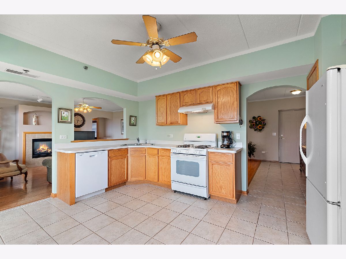 Welcome to Brookside Place, your home with an easy lifestyle. The benefits of living in an Elevator building are numerous: weather protected attached underground parking, elevator access, or if you feel energetic take the stairs, mail delivery and pick up are in the main entry. There's no snow to shovel, no grass to cut, just an easy lifestyle. Everything is on one level for your convenience. Enjoy the open floor plan, 9' ceilings, spacious rooms, kitchen with a baybow window and living room with a bank of windows letting in loads of light and that look out onto an uninterrupted grassy field. From your balcony you can enjoy sunsets and sunrises. On cold winter nights crank up the fireplace. The master suite has loads of eastern light, a walk-in closet and a bathroom with a separate shower and a whirlpool bathtub. The 2nd bedroom for a guest or office or den has a walk-in closet also. You have two storage closets, one in your condo and one in the garage. Lovely common area grassy/treed areas with a gazebo, a community vegetable garden, swings, playground. Convenient location close to Frankfort/Mokena shopping and dining, the Mokena/Frankfort Metra station and I-80. Great opportunity.