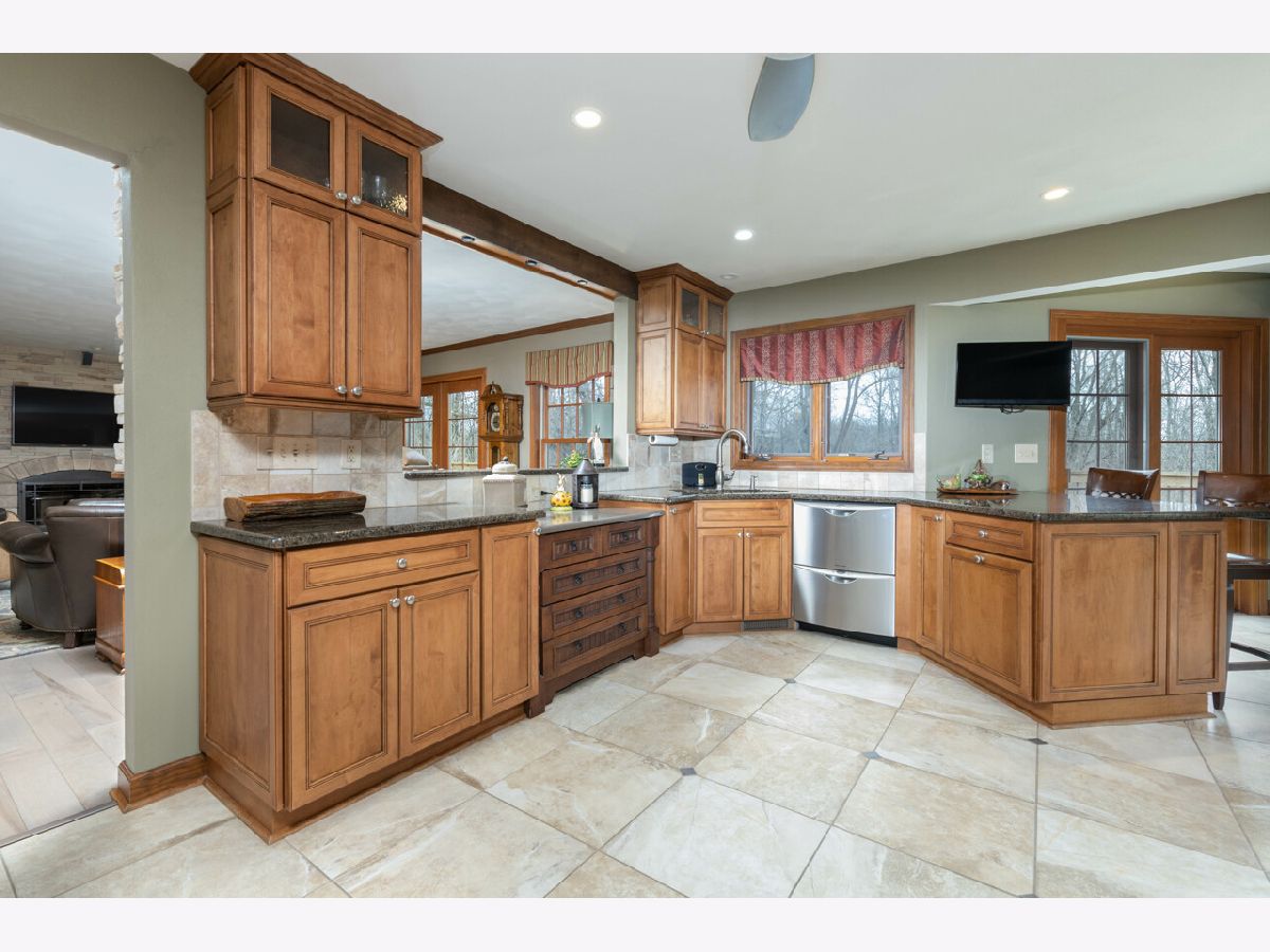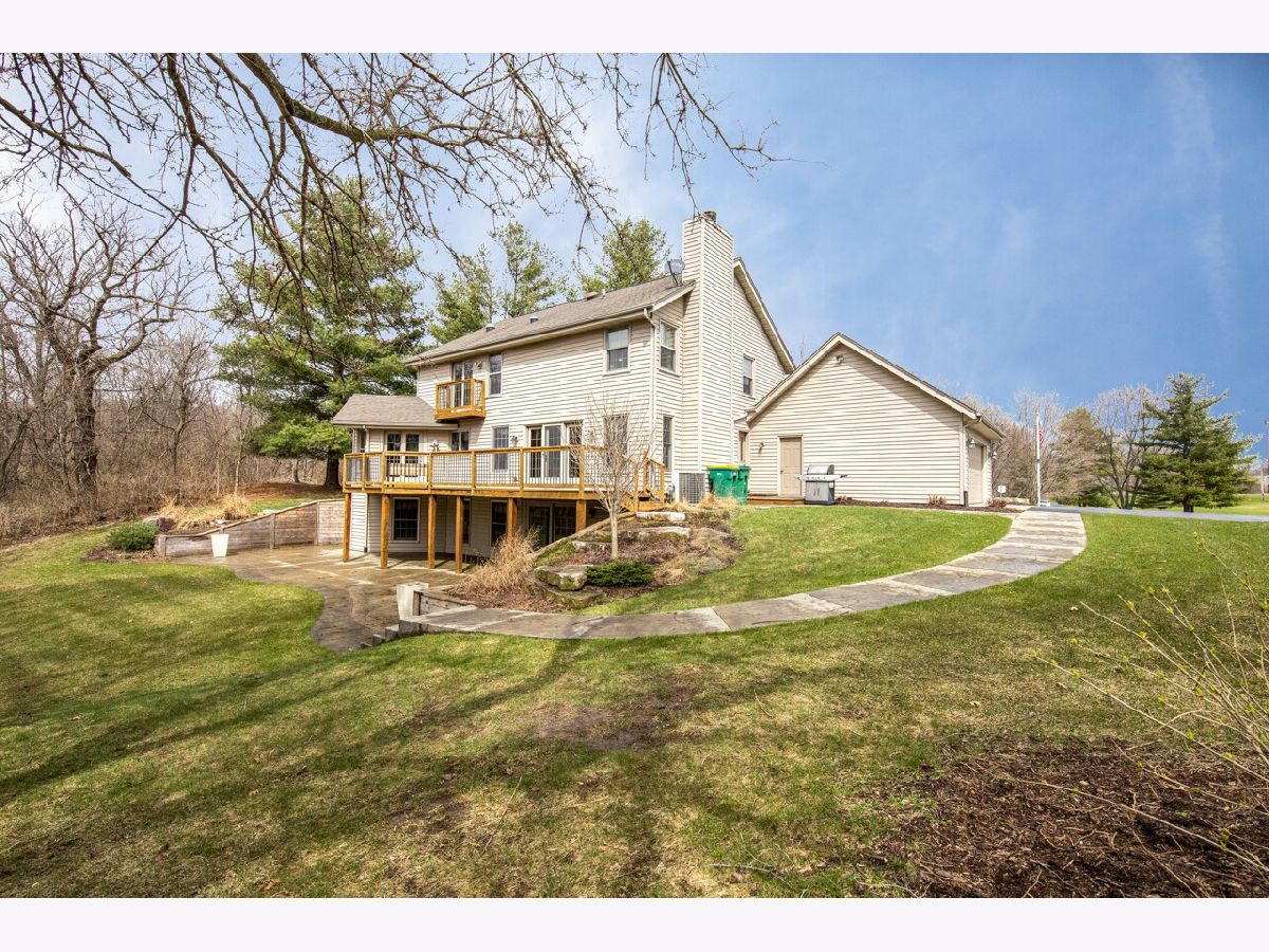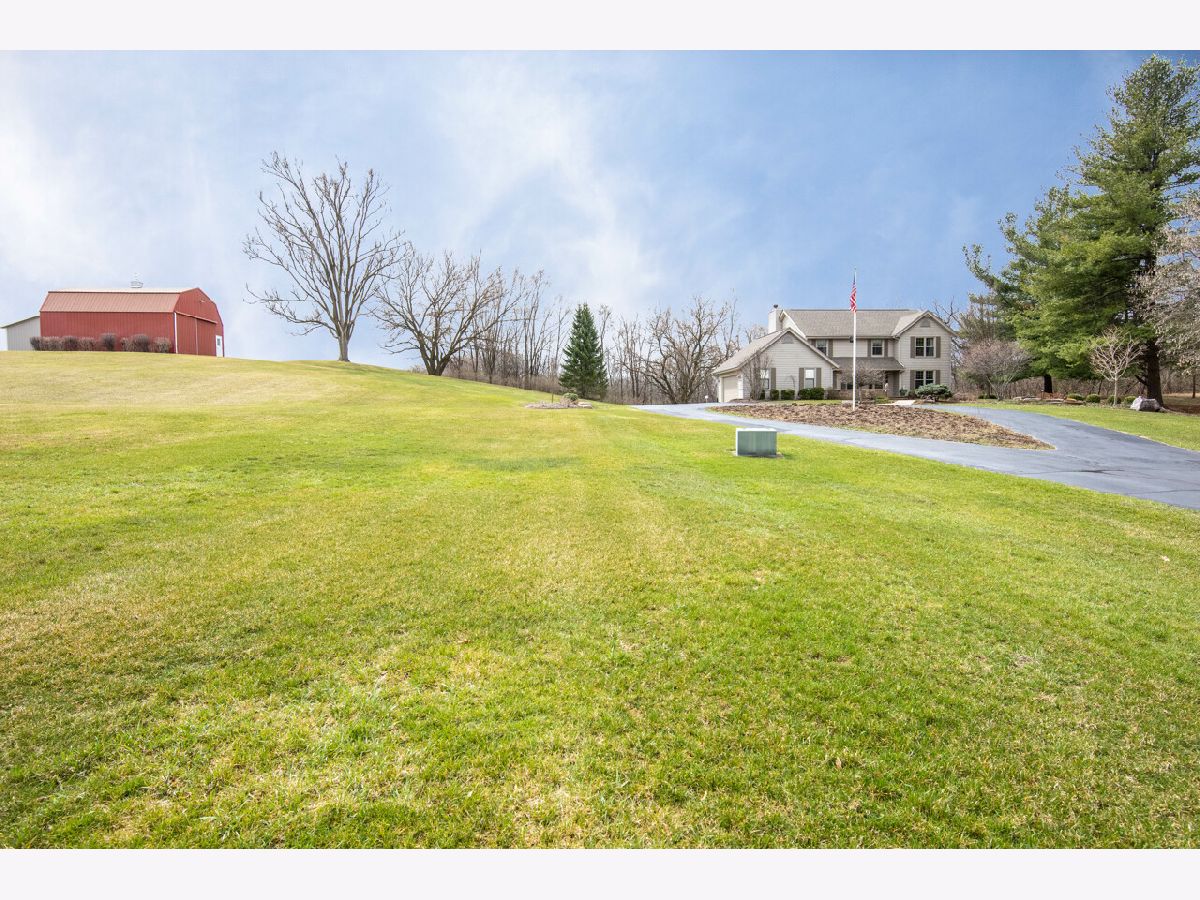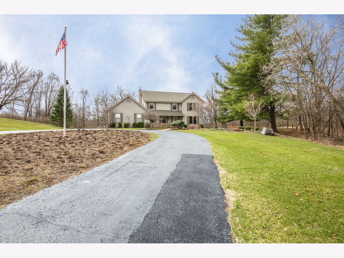 THIS 10-ACRE ROSCOE ESTATE IS A MUST SEE!! THIS IMMACULATE HOME OFFERS THE WARM COZY FEELING OF ESTATE LIVING AS SOON AS YOU ENTER THE PROPERTY. STARTING WITH A LONG CIRCLE DRIVEWAY, A PAVER PATIO WELCOMES YOU TO A PICTURE-PERFECT COUNTRY SETTING. NEW SOLID MAPLE HARDWOOD FLOORS ON MAIN LEVEL, OPEN KITCHEN AREA TO LR WITH PLENTY OF NATURAL LIGHT, MOSAIC STONE FP, CROWN MOLDING, PATIO DOORS TO DECK AND VERY PRIVATE WOODED VIEWS. DESIGNER KITCHEN OFFERS COOK TOP STOVE WITH HOOD VENT, DOUBLE OVEN, GRANITE COUNTER TOPS, STAINLESS APPLIANCES, TILE BACK SPLASH, COZY NOOK/SITTING AREA WITH PATIO DOOR TO DECK OVERLOOKING SEVERAL WOODED ACRES. FORMAL DINING ROOM FOR ALL THE HOLIDAY GATHERINGS. REMODELED AND CLASSY LAUNDRY AREA ON MAIN FLOOR AS WELL AS POWDER ROOM. 2ND STORY MASTER BEDROOM WITH ONE OF A KIND 13X13 CLOSET, LARGE TILE SHOWER, DOUBLE VANITY AND MORE. LL IS EXPOSED AND TOPS OFF THIS HOME WITH 4TH BEDROOM, FAMILY ROOM WITH STONE FIREPLACE, FULL BATH, SLIDER TO STAMPED PATIO AND PLENTY OF STORAGE. RURAL AG ZONING ALLOWS FOR HORSES, 2 - OUTBUILDINGS WITH WATER ( 40 X 50 AND THE OTHER IS 30 X 25). THIS PROPERTY BACKS UP TO 65 ACRES OF FOREST PRESERVE WITH A CREEK RUNNING THROUGH IT.