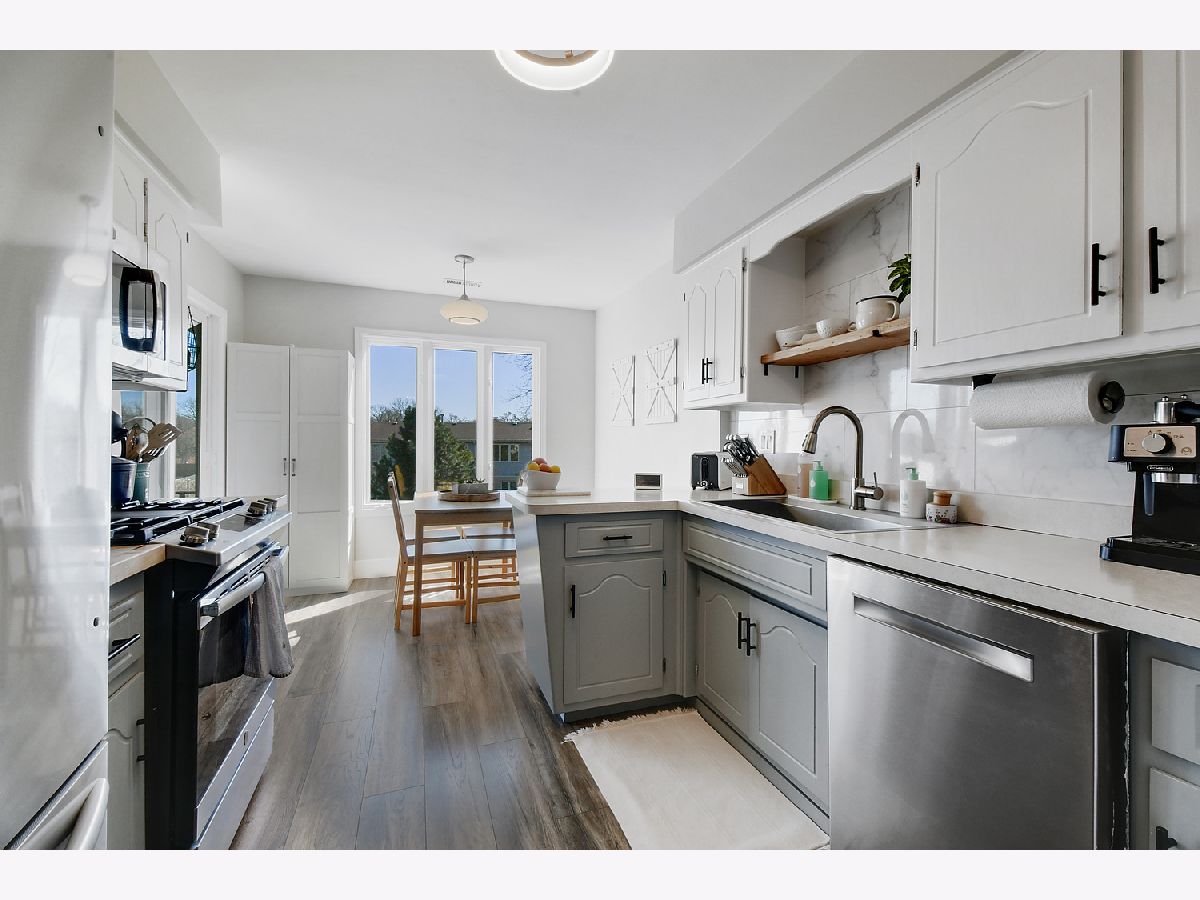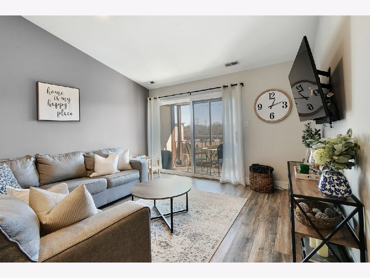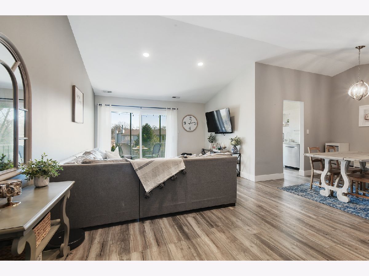BRIGHT MANOR-STYLE CONDO HAS MUCH TO OFFER. SPACIOUS 2ND FLOOR UNIT IS EQUIPPED WITH 2 BEDROOMS, 2 BATHS AND A 1 CAR ATTACHED GARAGE. THIS UPDATED PALOS HILLS HOME OPENS UP TO CATHEDRAL CEILINGS. THE FOYER FEATURES BARN DOOR-STYLE CLOSET AS THE RECENTLY INSTALLED WOOD LAMINATE FLOORING FLOWS THROUGHOUT THE PLACE. ACCENTED WITH WHITE HIGH-BASE TRIM AND FRESHLY PAINTED WALLS. LIVING ROOM SLIDING DOORS PROVIDE PLENTY OF NATURAL LIGHTING AND LEAD TO THE BALCONY AND CAN LIGHTS HELP IN THE EVENING.MODERN LIGHTING IS FEATURED IN ALL OF THE ROOMS. THE EAT-IN KITCHEN HAS ALL NEW SS APPLIANCES, LARGE SS SINK, CABINET PANTRY, ANTIQUE BRONZE HANDLES AND GREAT VIEWS OF THE HUGE BACKYARD. STEP OUT TO THE BALCONY WITH NEW FLOORING AND FRAMED READY FOR SCREENING. THE YARD SPACE STRETCHES FAR AND AROUND THE SIDE OF THE BUILDING NEXT TO THE UNITS GARAGE SPACE. THE MAIN BATH IS ACCOMPANIED WITH A 5 FOOT VANITY AND SOAKER TUB. THE MASTER SUITE HAS FULL BATH AND WALK-IN CLOSET. THIS CONDO IS EQUIPPED WITH THE LUXURY OF AN IN UNIT WASHER/DRYER AND A HALLWAY LEADING TO A PRIVATE 1 CAR GARAGE. RING DOORBELL, NEST THERMOSTAT AND CARBON MONOXIDE DETECTORS ARE INCLUDED. SCHEDULE A SHOWING TODAY TO LIVE IN THIS SOLID SOUTH SUBURBAN LOCATION SITUATED IN PALOS SCHOOL AND STAGG SCHOOL DISTRICT.