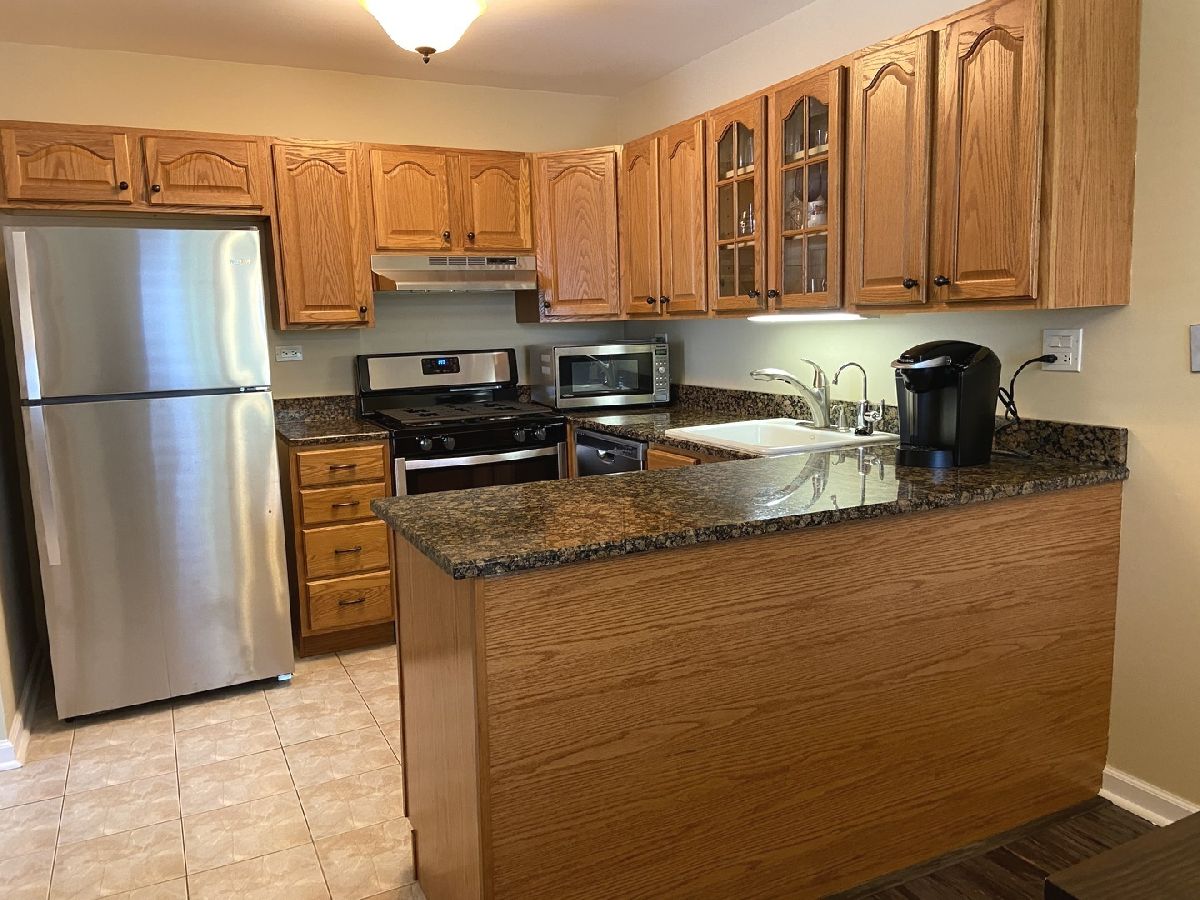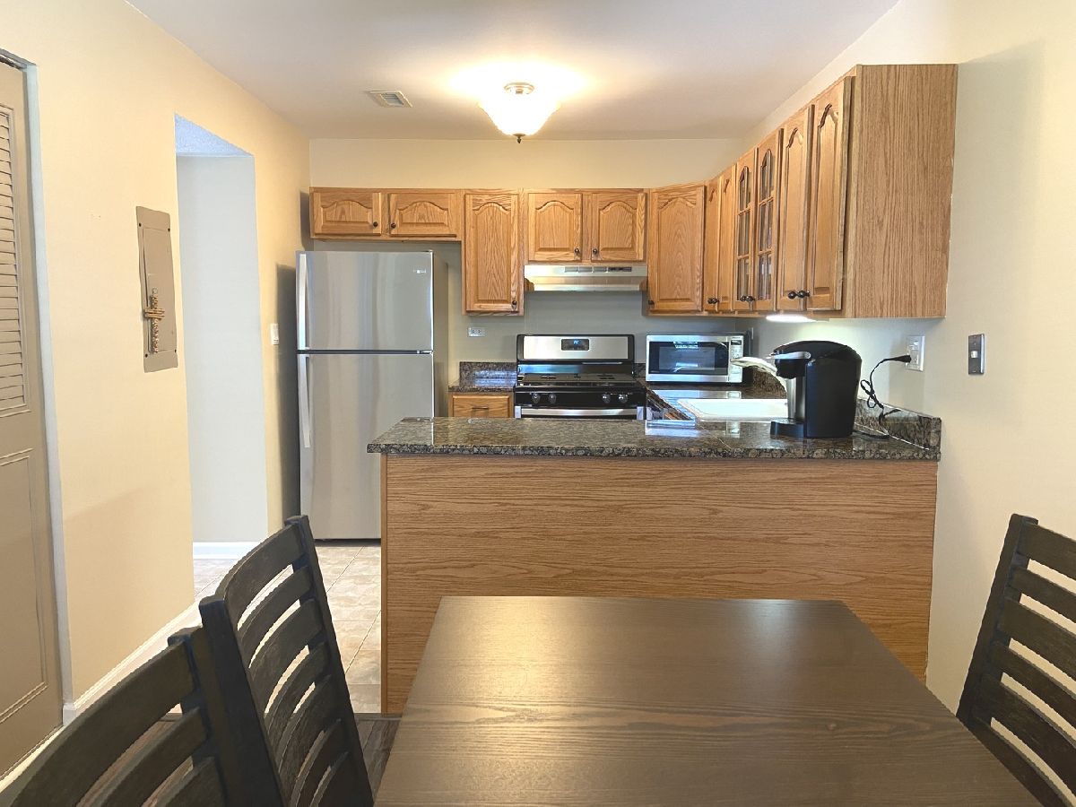 Perfect 2 Bedroom Townhome freshly painted including trim. Granite Kitchen with NEW Stainless Steel Appliances. Laminate floor in Dining area. Natural wood blinds on all windows. Washer and Dryer in unit. Large Living Room with Fireplace. 2 good size Bedrooms upstairs each with Walk-In Closets. Private Patio for entertaining this summer! Enjoy the pool this summer! Close to shopping, Walmart, Target. Very close to METRA North Central Service. Award-winning Buffalo Grove High School and elementary District 21. INVESTORS WELCOME. NO FHA