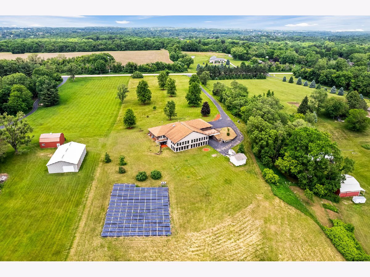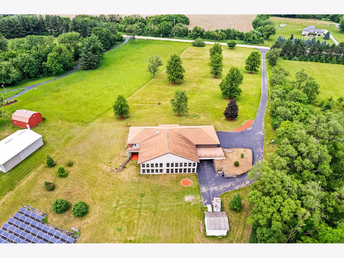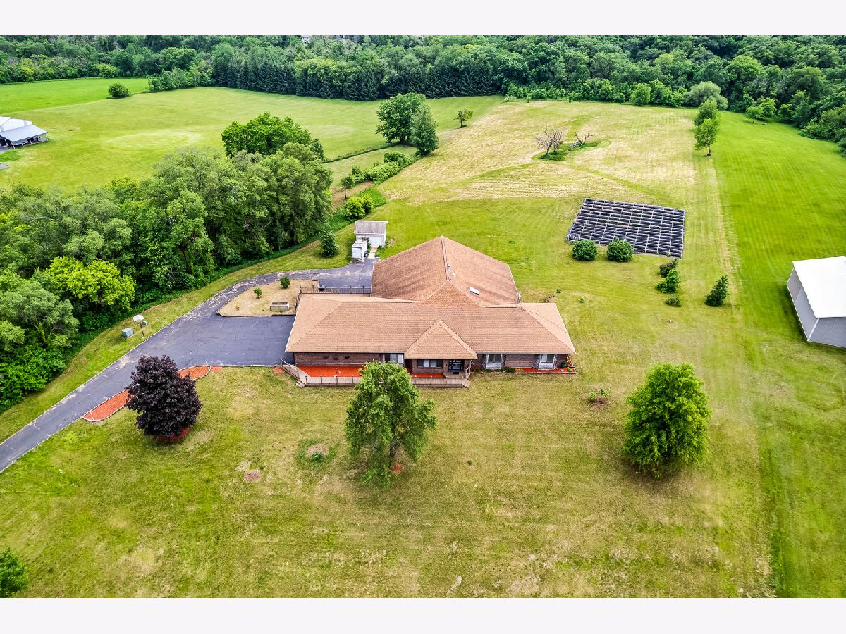Situated on 7.30 acres in desirable Roscoe, this sprawling brick ranch is one of a kind! The home features approximately 10,000 SF of living space. The main floor has a formal living and dining rooms w/hardwood floors and built-ins, kitchen with lots of cabinets opens to family room with fireplace that opens to another large space with vaulted ceilings. Composite deck outside main floor overlooks the expansive backyard. Three bedrooms on main floor, two with jack & jill bath and large closets. The master suite has two closets, en-suite bath with double sinks and whirlpool tub. Powder room, mud room with laundry room. The lower level has two bedrooms, full bath, rec room with area plumbed for a kitchenette. Sliding glass doors to enclosed entertainment space with inground pool, 5 car garage, 3 above, 2 below with storage space and work room. Solar panels will save you on your electric cost, clean, safe & renewable energy. Bring your design ideas! Could be great for a business!