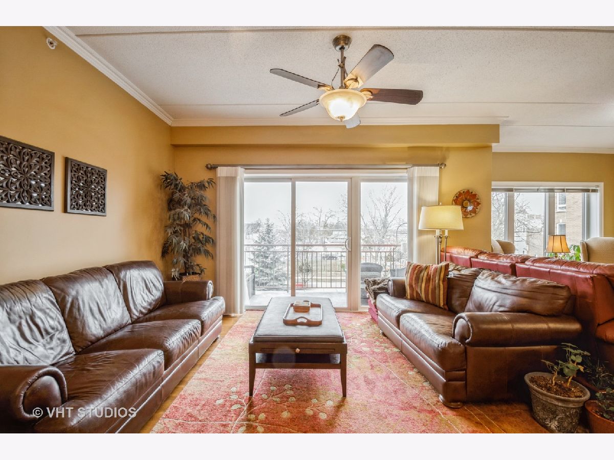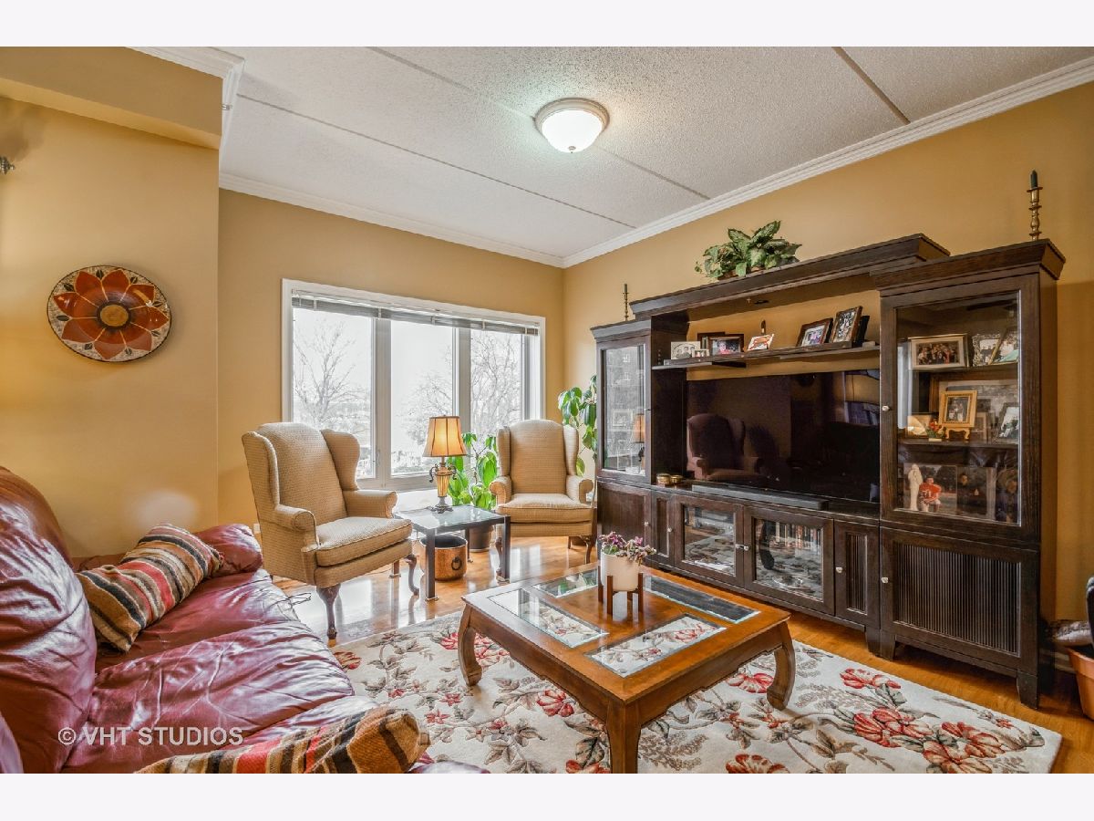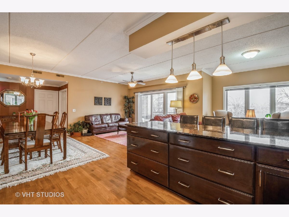 Rarely available, this elegant and spacious unit offers you the convenient location and amenities you have been searching for ! Freshly painted with newer (2019) hardwood flooring & crown molding makes it the perfect choice ! Large granite kitchen with Stainless appliances, newer Bosch stove (2021) & dishwasher(2016), a breakfast bar that opens to the large living area, a motion activated faucet and a newer fridge and microwave 2020. Large furniture and dining room set will easily fit into this wonderful floor plan. Closets galore and extra deeded storage locker in garage. Primary bedroom features ensuite bath with jetted tub and separate walk-in shower ! Large walk in closet (see Photo ) for your clothes and an in unit laundry with newer washer & dryer. Extra space in the second bedroom and den makes it feel like you are in a large home. It's a total of 1864 sq. feet. The building is in great shape too ! No specials planned ! Approx $250,000 in reserves. Entire Waterford development has had the oversized balconies, railings & roof painted & treated in 2019. Balcony floors were also sealed in 2019. Masonry for all buildings was tuckpointed in 2021.Parking for a 2nd car available in driveway. The building is pet friendly, so Fido and Fluffy are welcome ! The unit and the building have been meticulously maintained and show true pride of ownership ! A pleasure to Show & Sell ! Easy to see !