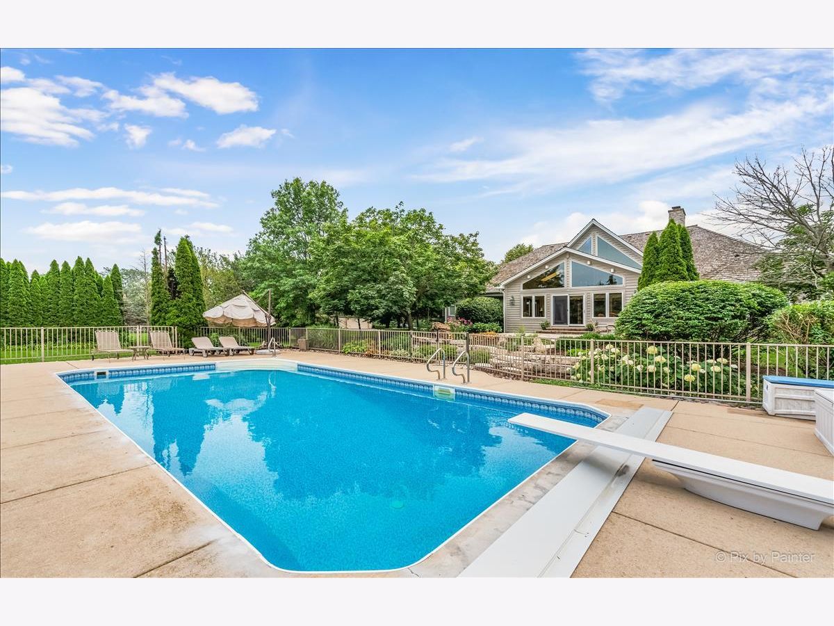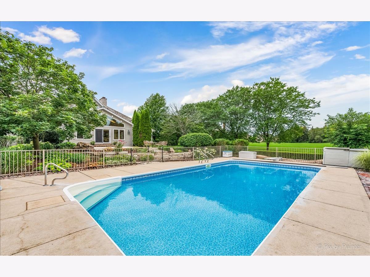 Stunning 5 bed, 4.1 bath ranch home with inground pool and mature landscaping on a very private 1.26 acre lot in Silver Glen Estates. You'll immediately notice the attention to detail as you pull into the circular driveway of this sprawling 4,500 sq/ft custom built brick, stone and cedar home with a full finished English basement. Step into the dramatic vaulted entryway that continues into a massive 2-story family room with floor to ceiling see-thru stone fireplace, hardwood flooring and wet bar. Just off the FR is a 3 seasons room that leads to an entertainers dream yard with two stone and paver patios, extensive lighting, water feature, and inground pool. The open concept dine-in kitchen has a massive island with prep sink, wine fridge and breakfast bar, fireplace, custom cabinetry, granite counters and pantry. Well appointed master suite with fireplace, wic with built ins, a fabulous updated bath with freestanding jacuzzi tub, heated floors and custom tiled walk-in shower. Elegant office with marvelous built-ins and coiffured ceiling. Substantial dining room with bay window and tray ceiling. Completing the main level are 3 additional large bedrooms, 2.1 additional baths (one with exterior access for pool guests) and an ample laundry area. The finished English basement has a spacious rec room with fireplace, an additional bedroom, huge cedar closet, workout room, another full bath and considerable storage space. 3-car garage with tremendous storage space in the attic area above and a lift for 4th car that can remain with the home. Well rated schools and an exceptional location in a quiet community yet only minutes to all St Charles has to offer!