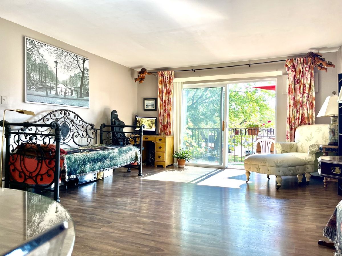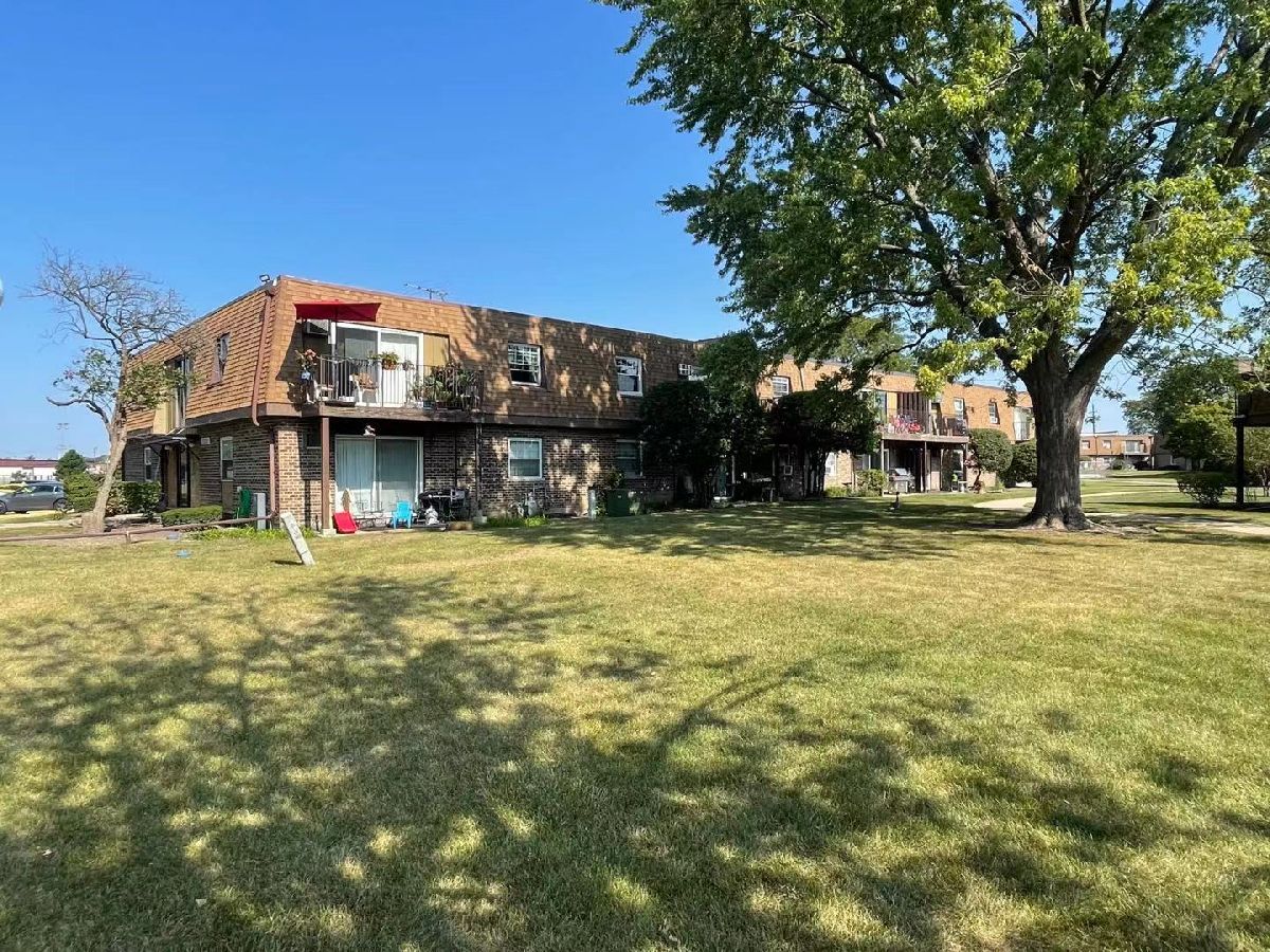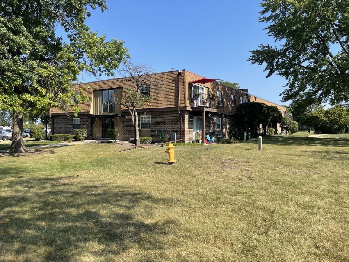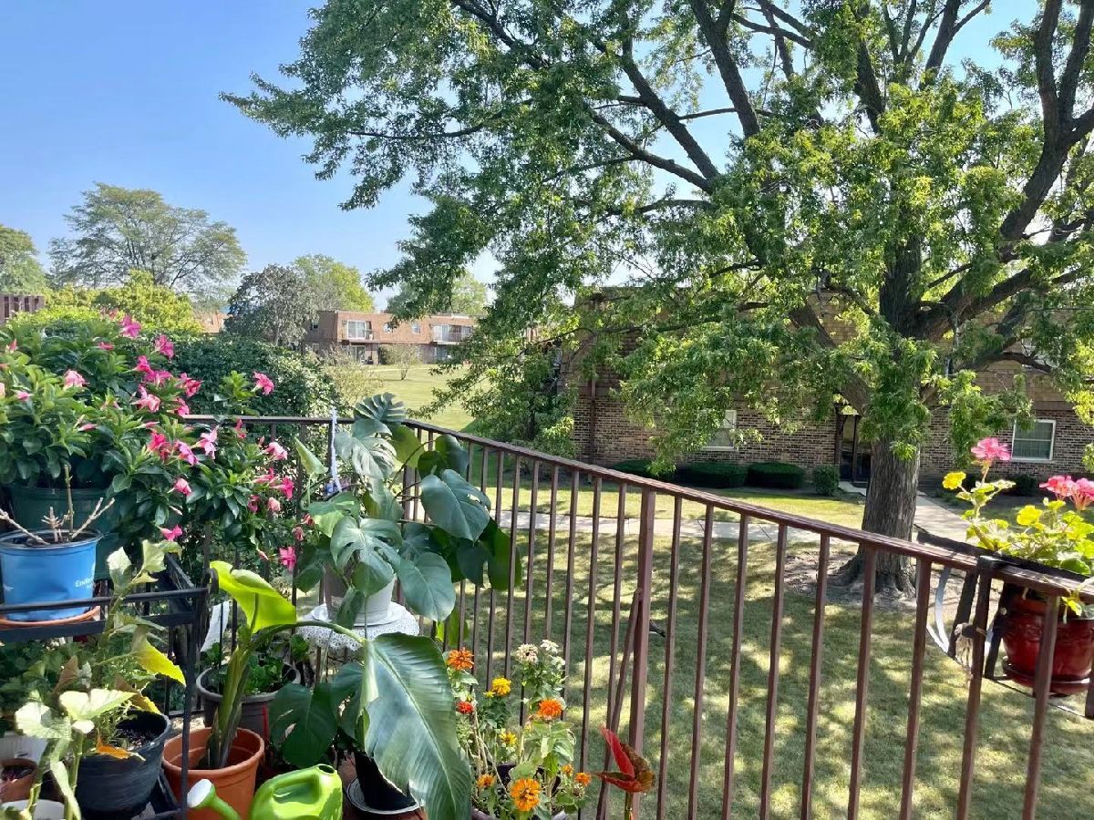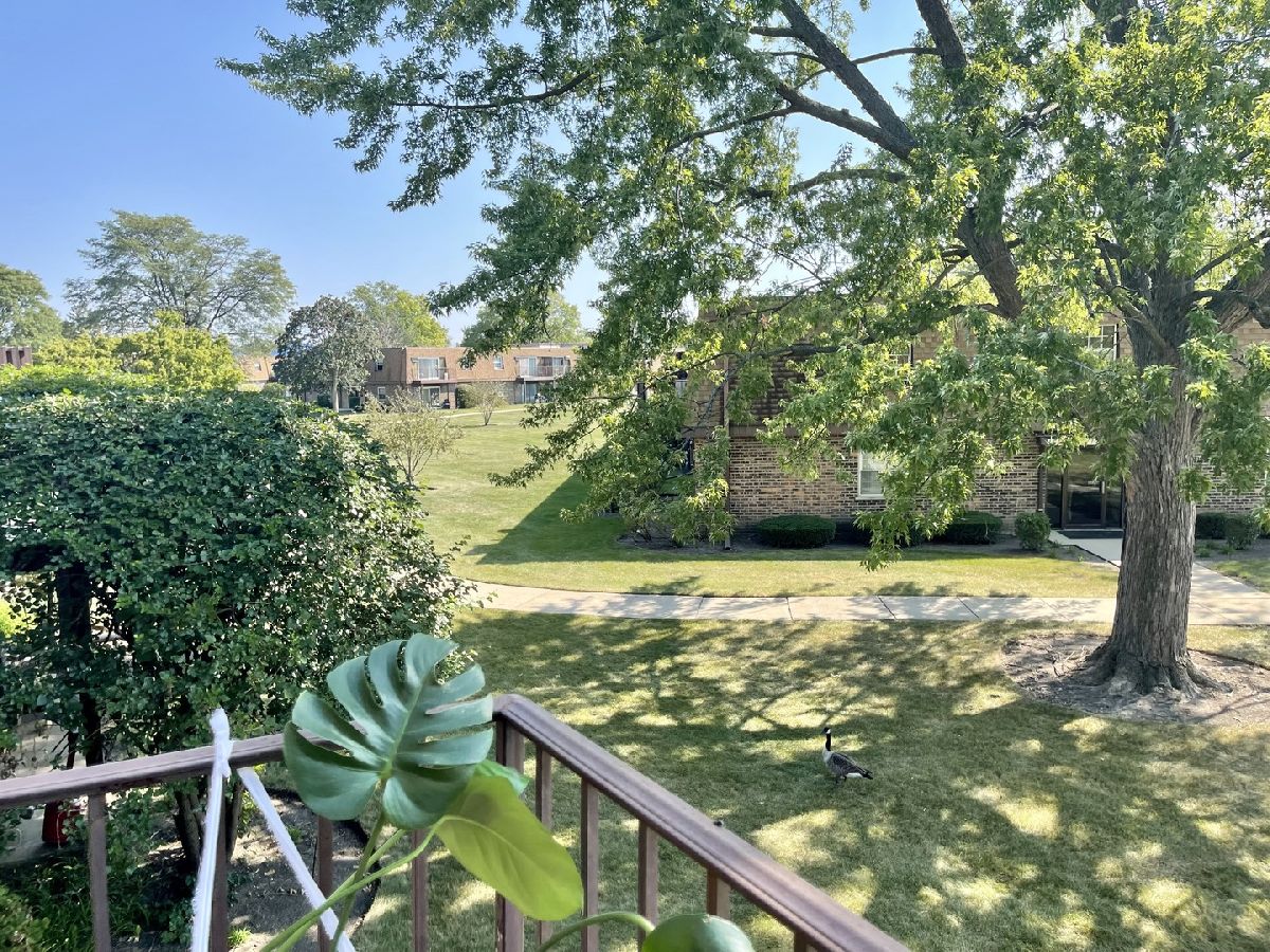 Beautiful one bedroom one bath with pool. Southern exposed end unit with balcony. Newer laminate flooring in living room. Unlike most units in the building this one comes with a dishwasher. Heat, water, gas, bike room and personal storage included. Green Meadows Golf Club and Belle rive Park are a mere stones throw away. Mariano's grocery is across the street. Conveniently located near I-355, I-55, Rt 83, shopping, restaurants and schools.