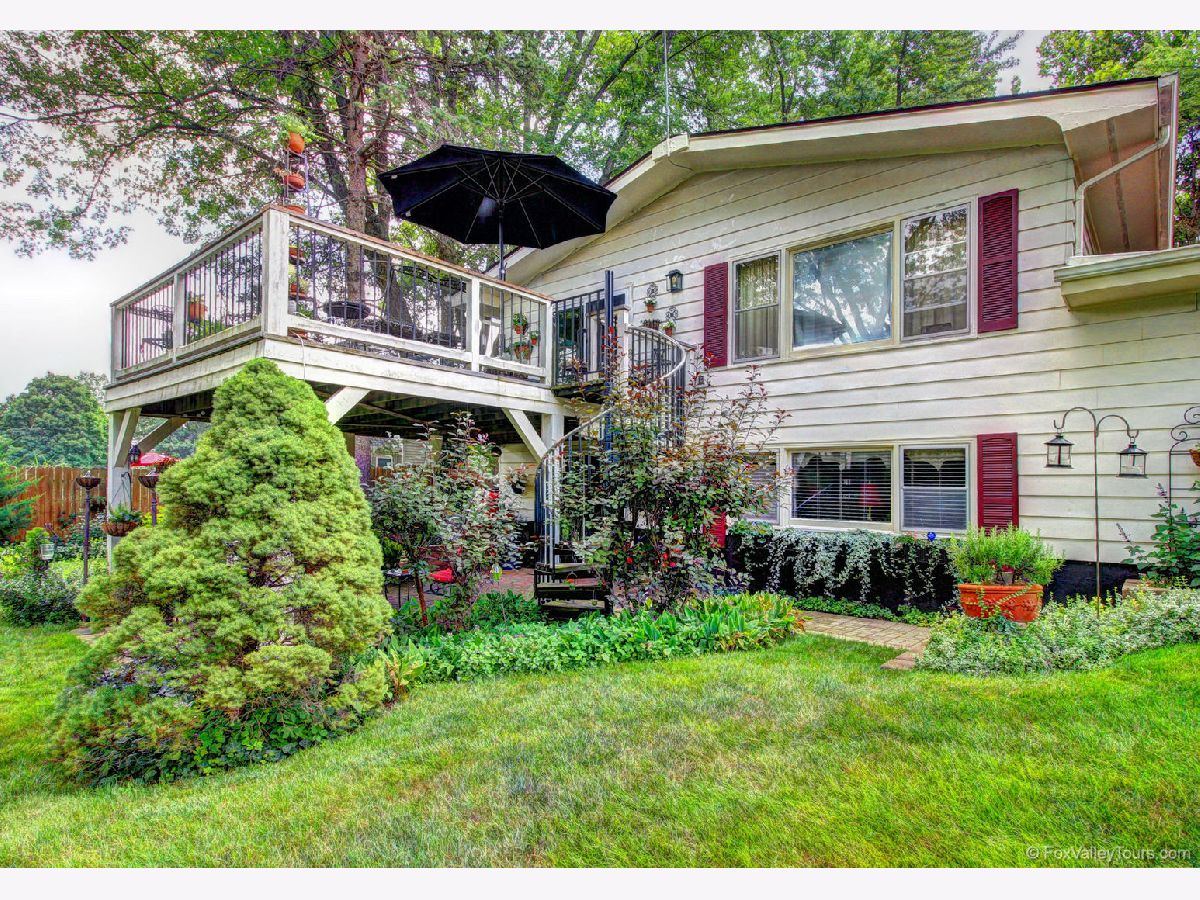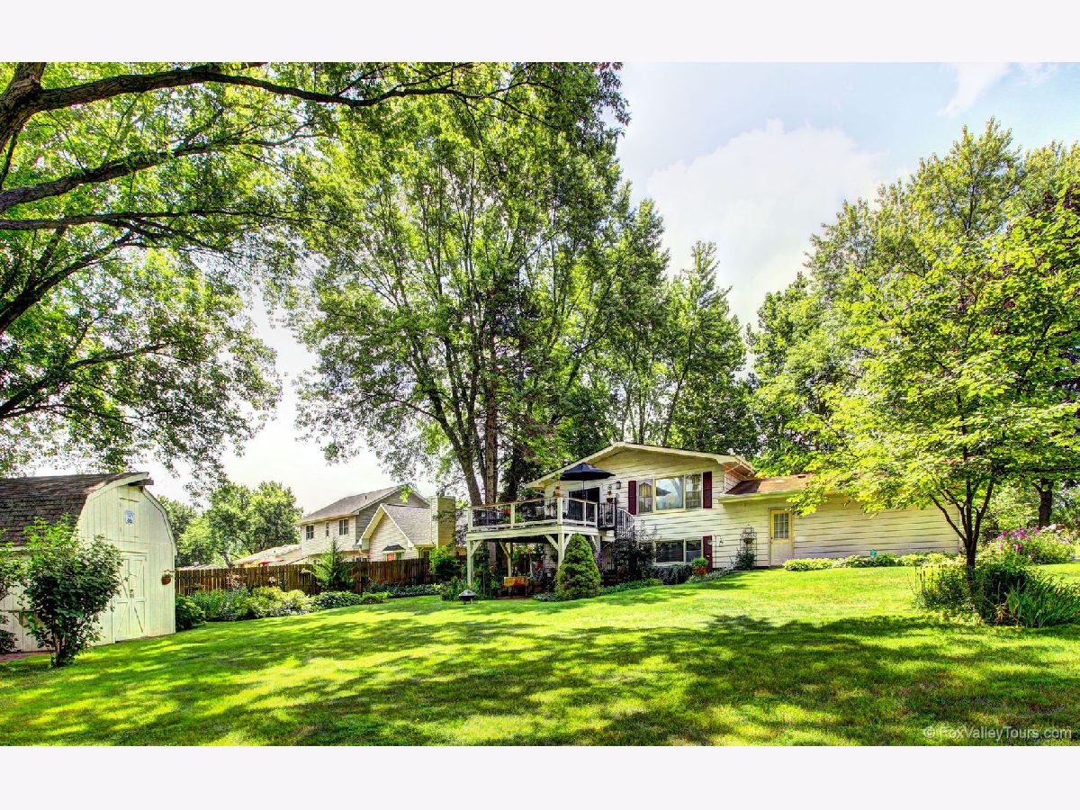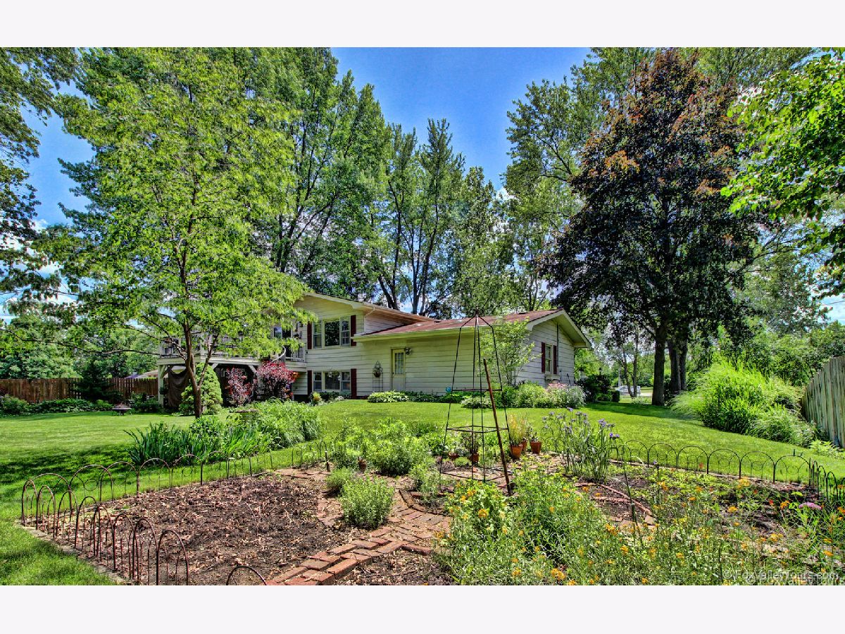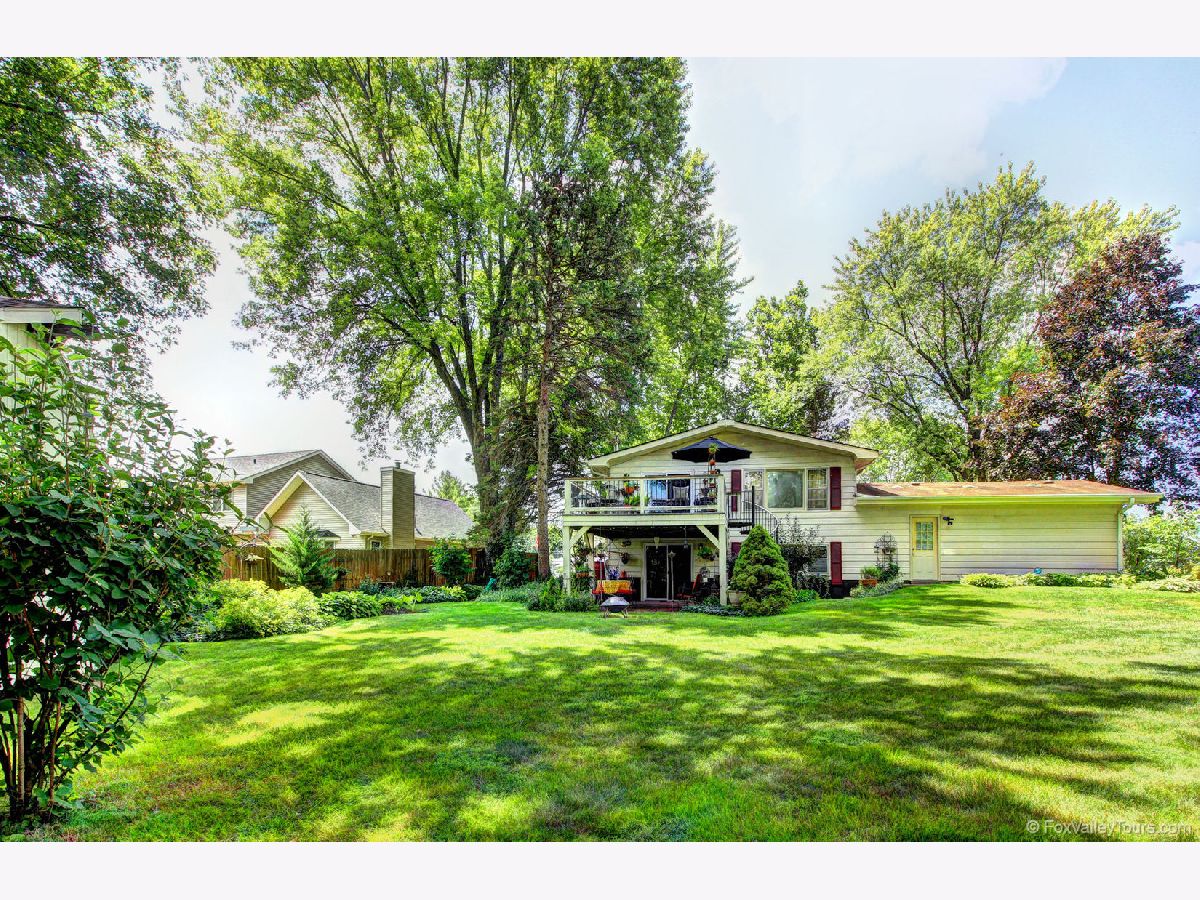 Hard to find a more gorgeous setting for this spacious split level. This private lot is full of shade trees, perennials, a large garden for vegetables and herbs plus a deck and two paver terraces. Main level primary bedroom has shared bath. Lower walk out level has a second primary bedroom with shared bath. Living room, dining and family rooms are perfect for entertaining a crowd. Updated kitchen features large skylight that opens, quality soft close dovetailed drawers, raised panel doors, corner Lazy Susan and new SS farmhouse sink and faucet. Deck and terrace areas keep you connected to the outdoors from both levels. A large storage shed doubles as bar area. Owners have hosted a wedding in this idyllic yard, and hate to leave it! Backing to FVPD Gilman Trail which branches off to at least 4 Kane County Forest Preserves for nature enthusiasts. Truly one of a kind! Note: driveway will be seal coated prior to closing.