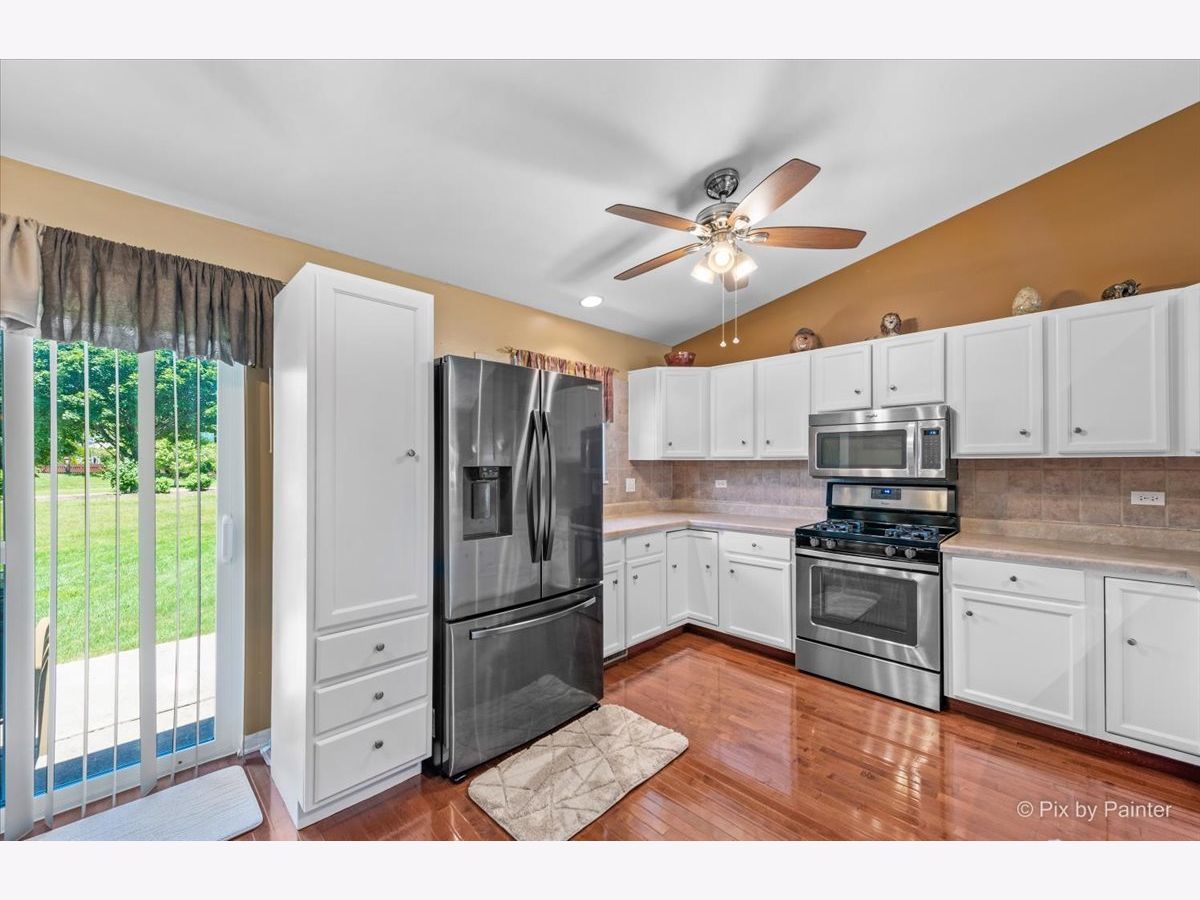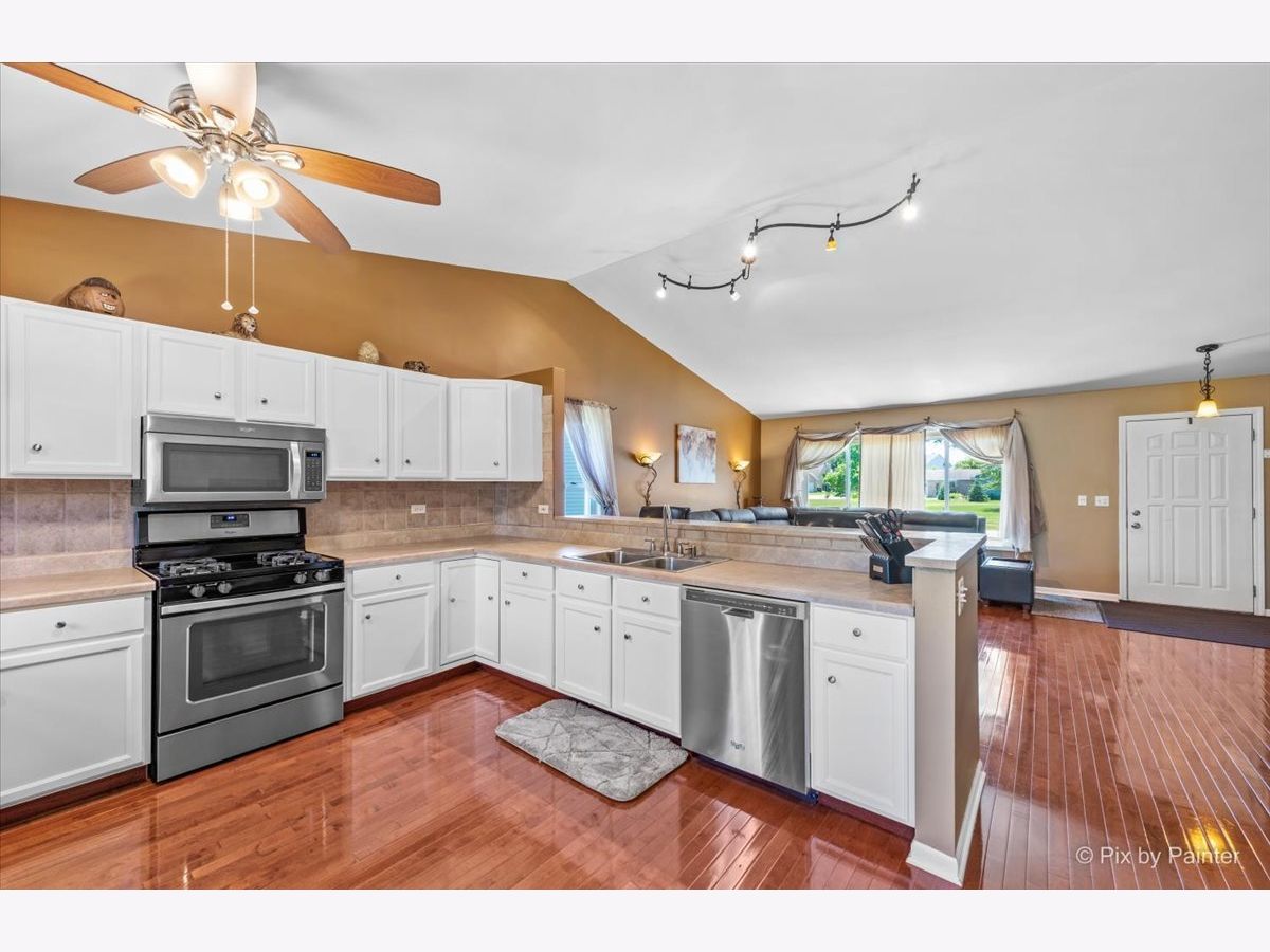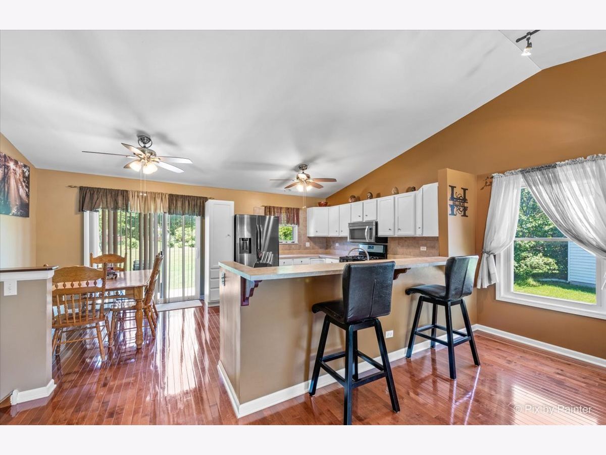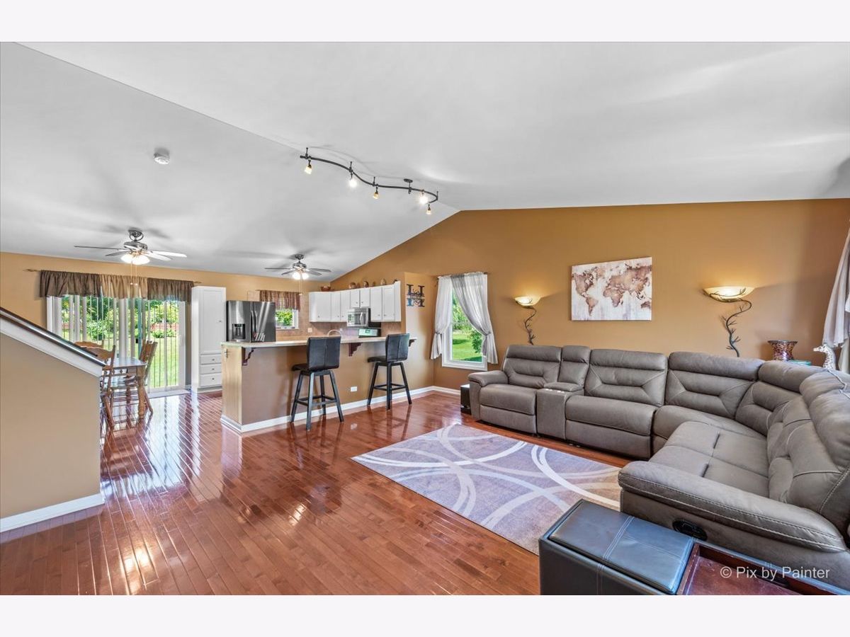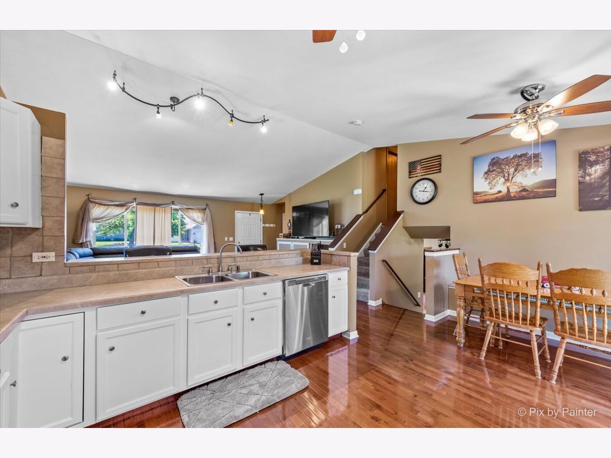 This immaculate and lovingly maintained split level is ready for it's second owner! Don't be fooled by the exterior, this split level has FOUR floors of living space! On the open main level you'll find a spacious living room with built in cabinets for storage, gorgeous hardwood floors and a convenient breakfast bar. (This room is actually spacious enough to divide into a combined living/dining space if you'd like!) Eat in kitchen features stainless steel appliances (fridge 1 year, the rest are approximately 7 years) and tastefully painted white cabinets. The second level of this home features a master bedroom with a walk in closet, shared master bath, and two additional bedrooms. Head down to the lower level to find a MASSIVE family room, full bathroom and large 4th bedroom or bonus room! The fourth level is a spacious unfinished basement with tons of possibilities- laundry and storage on one side and on the other a fifth bedroom, workout space, movie/game room, office, toy room- what would YOU do with it?! You'll find ceiling fans in almost every room making it a breeze to open windows and cool off without having to switch on the A/C. Coveted Huntley Schools, fantastic location-walking distance to Sunset Park which features a splash pad, several sporting fields/courts, skate park, playground, fishing pond, Ribfest, Sunset Fest and more! Plenty of yard space in this over sized lot with shed and concrete patio but you can walk your dog to the bark bark down the street as well! Newer roof, windows, and siding! Newer carpet and appliances! Fantastic neighborhood! You won't be disappointed calling this one HOME!