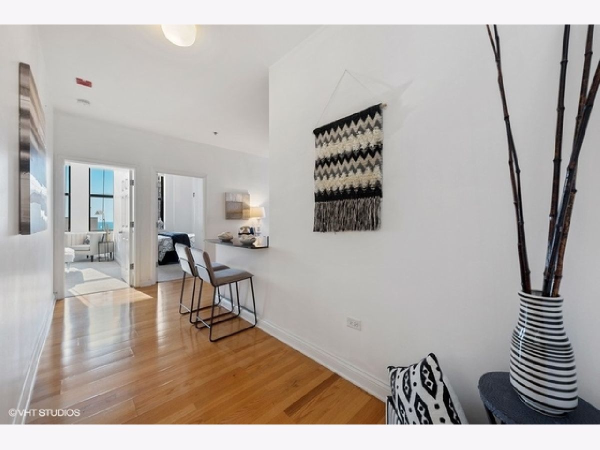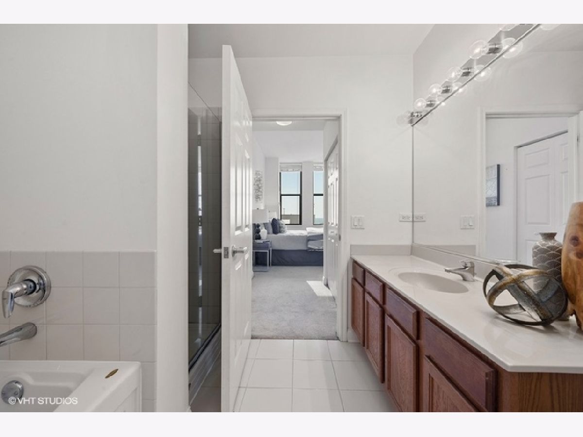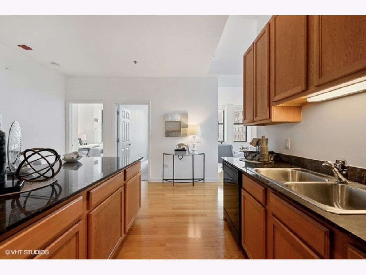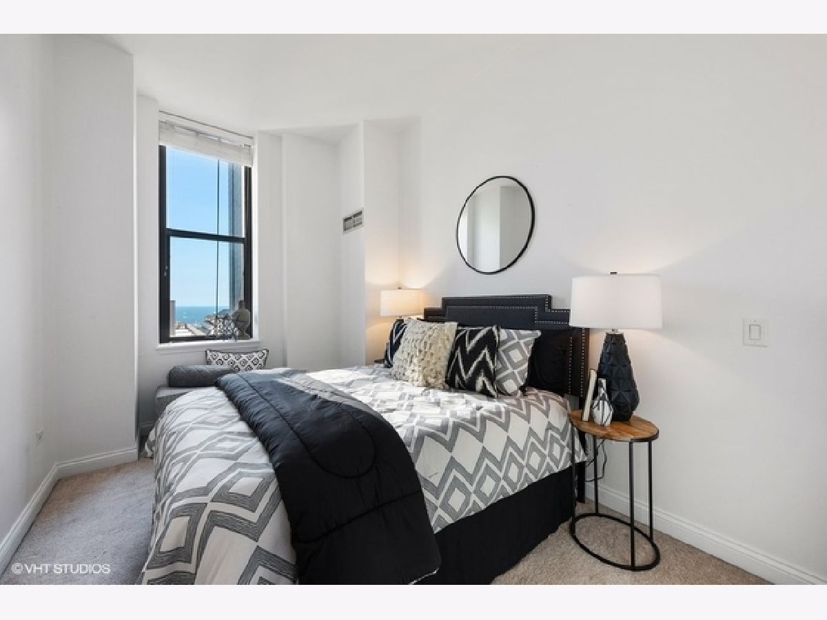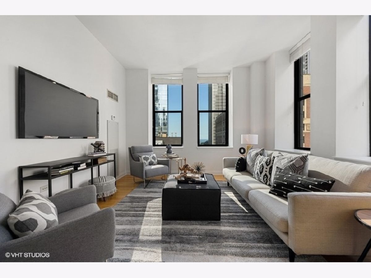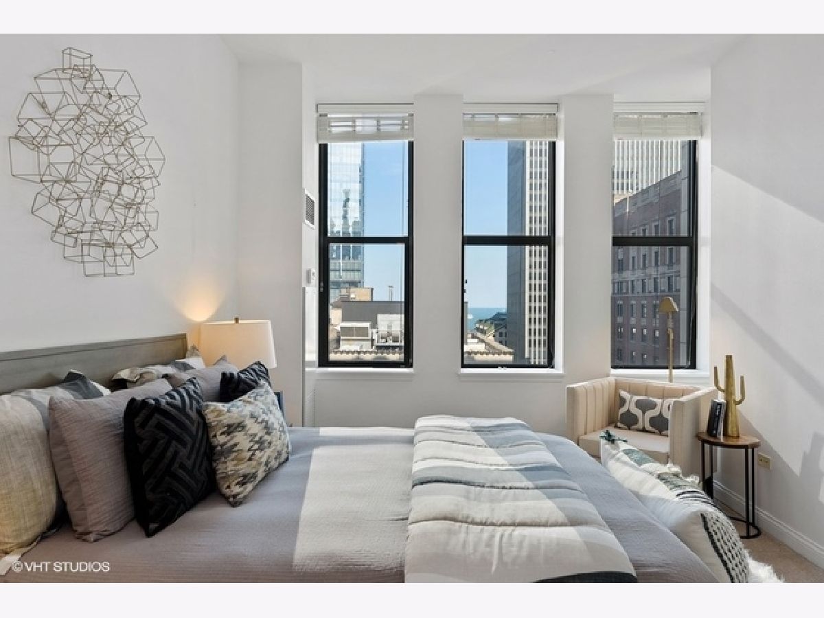 Sun-filled, largest floor plan 2 BD/2BA corner unit in Loop/Theater District.Unit features 12+ high ceilings, large windows that draw plenty of natural light, city & lake views, hardwood floors, oak cabinets, granite countertops. En-suite master bedroom with two closets and a large master bathroom featuring a soaking tub and separate shower. Second bath has a shower. Ample closets throughout and in-unit washer/dryer. Unit comes with additional storage. Full amenity building offers fitness center, party room, conference room and business center, 24H doorman, bike storage and a terrace that features an area for pets and is equipped with grills. Close proximity to transportation, theaters, Art Institute, Millennium Park, the lake as well as Red and Blue EL lines. Garage parking is available for an additional $13,000. Sold " AS IS".