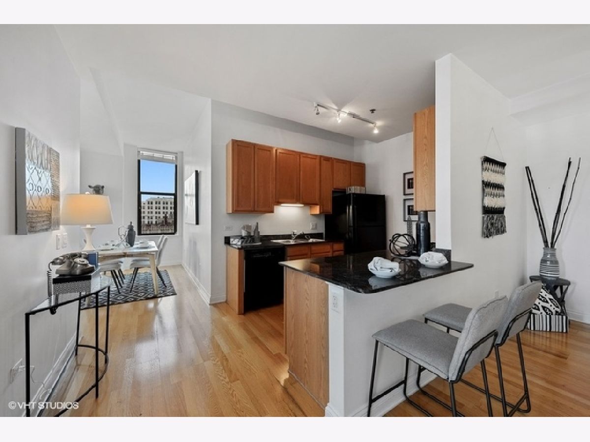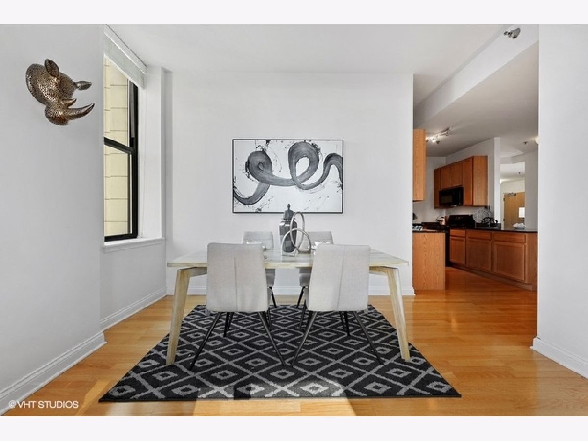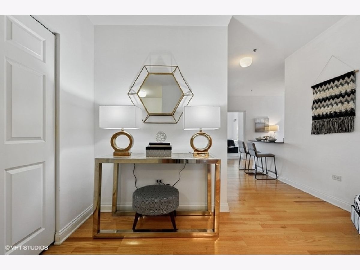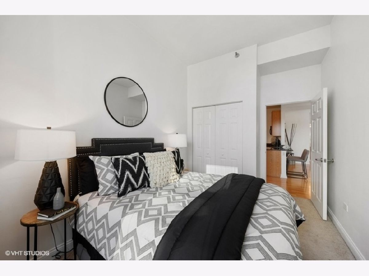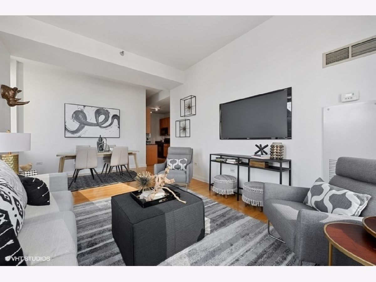 Sun-filled, largest floor plan 2 BD/2BA corner unit in Loop/Theater District.Unit features 12+ high ceilings, large windows that draw plenty of natural light, city & lake views, hardwood floors, oak cabinets, granite countertops. En-suite master bedroom with two closets and a large master bathroom featuring a soaking tub and separate shower. Second bath has a shower. Ample closets throughout and in-unit washer/dryer. Unit comes with additional storage. Full amenity building offers fitness center, party room, conference room and business center, 24H doorman, bike storage and a terrace that features an area for pets and is equipped with grills. Close proximity to transportation, theaters, Art Institute, Millennium Park, the lake as well as Red and Blue EL lines. Garage parking is available for an additional $13,000. Sold " AS IS".