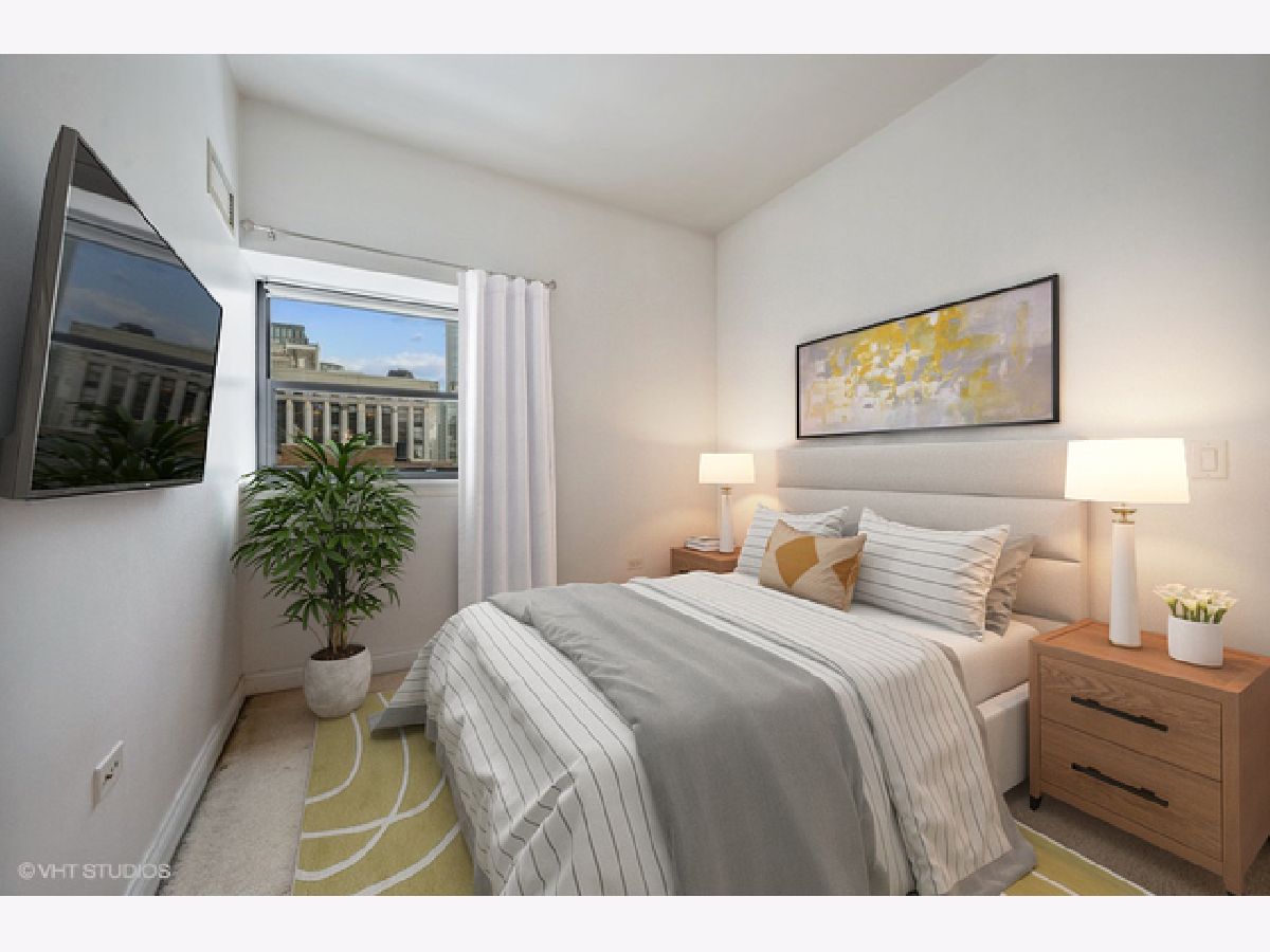 PRIME LOCATION on State and Monroe just minutes from Millennium Park, Michigan Ave, the Theater District, Target, the Red & Blue CTA train and the lakefront. Bright and spacious 1000 SQ.FT. 16th floor 2 bed, 2 bath gem features an open floor plan with bedrooms on opposite sides of the unit and an open kitchen. For additional entertaining space, enjoy the spectacular views off the in-unit BALCONY. Highlights: 12' high ceilings, hardwood floors, 42" custom oak cabinets, granite counter-tops, in unit washer/dryer and TONS OF CLOSET SPACE! Primary bedroom suite has a walk-in closet and a bath with soaking tub and separate shower. Unit comes with additional storage. Full amenity building has A ROOFTOP SUNDECK with an area designated for pets, fitness center, party room, business center, conference room, bike room, 24h door staff and package room. Assessments include: heat, A/C, internet, cooking gas, common maintenance and insurance, water, rooftop deck, exercise facilities, storage locker, bike storage, scavenger and 24 hr doorman. There is 30% rental cap. All new owners must occupy the unit until it is at or below 30% (currently building is 58% owner occupied). Parking is an additional 13,000. Sold " AS-IS".